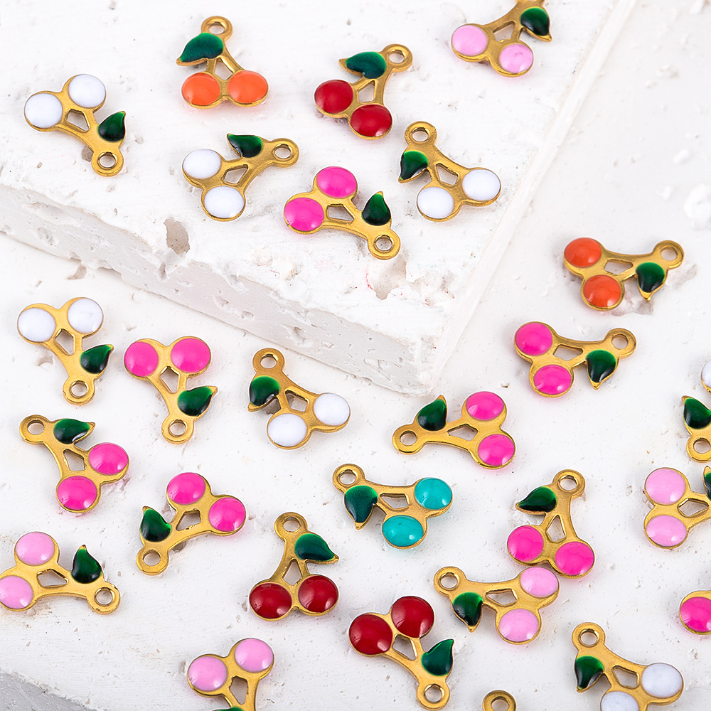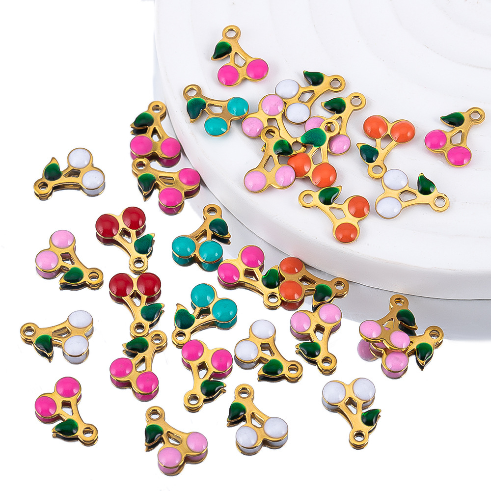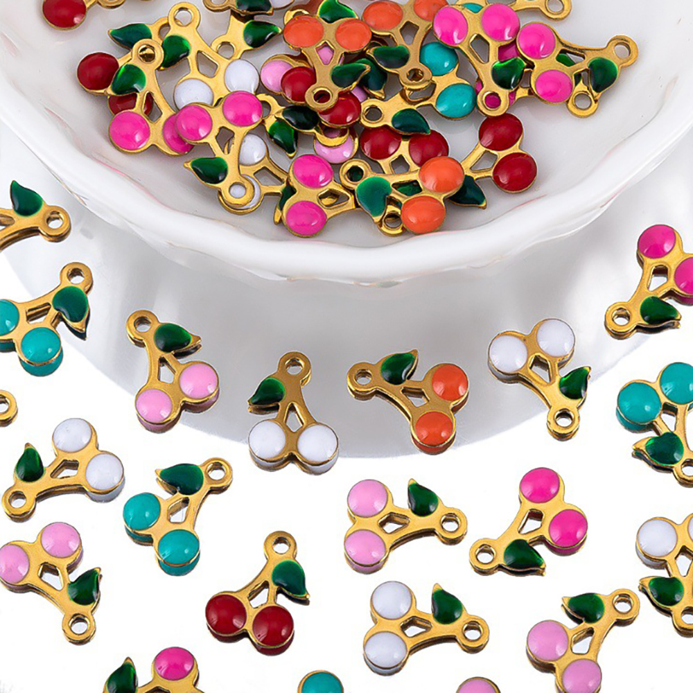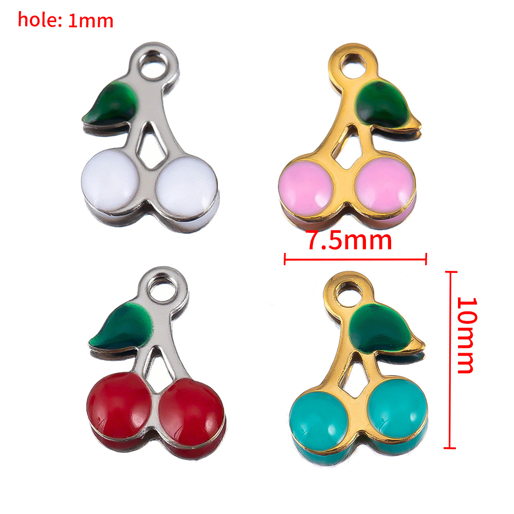 Bijoux pendentifs en acier inoxydable , Acier inoxydable 304, cerise, Placage, envoyé au hasard & DIY & émail, plus de couleurs à choisir, 5PC/sac, Vendu par sac