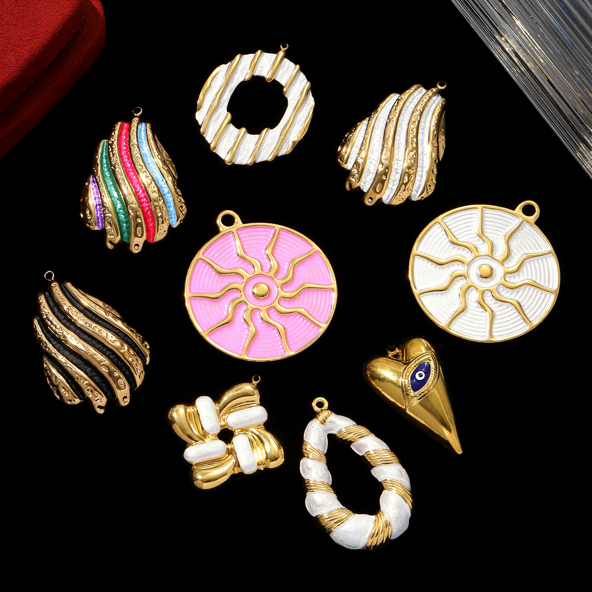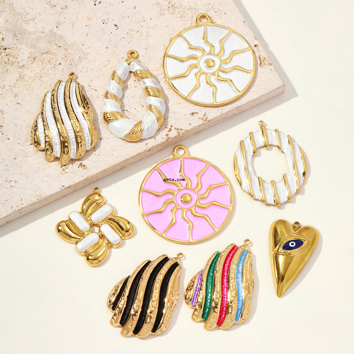 Bijoux pendentifs en acier inoxydable , Acier inoxydable 304, Placage de couleur d'or, DIY & émail, plus de couleurs à choisir, 3PC/sac, Vendu par sac