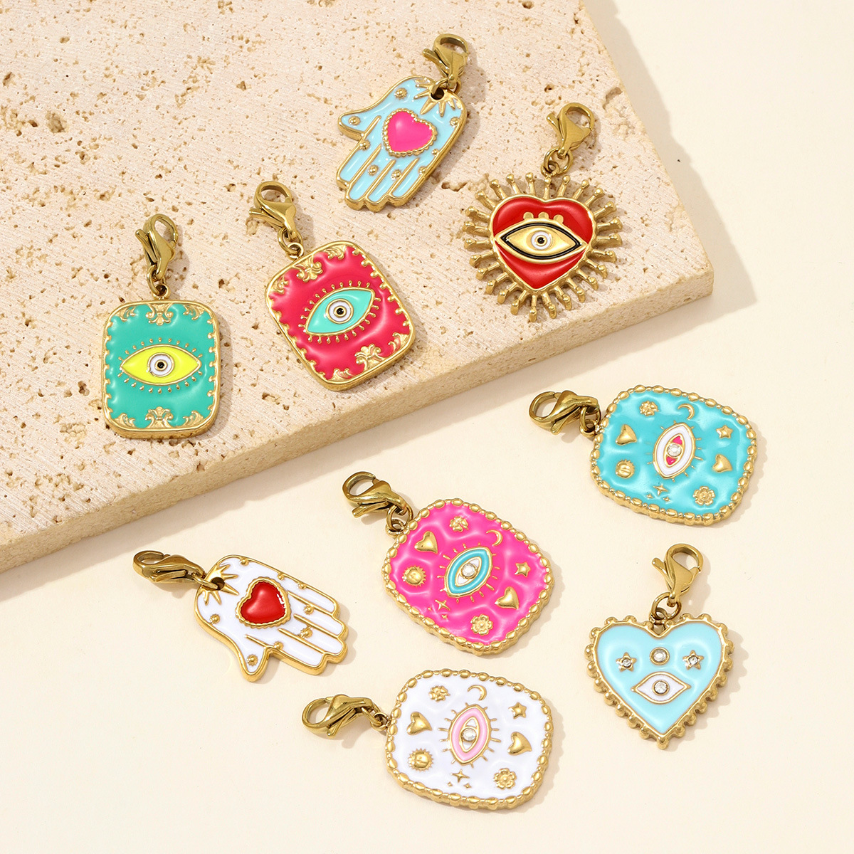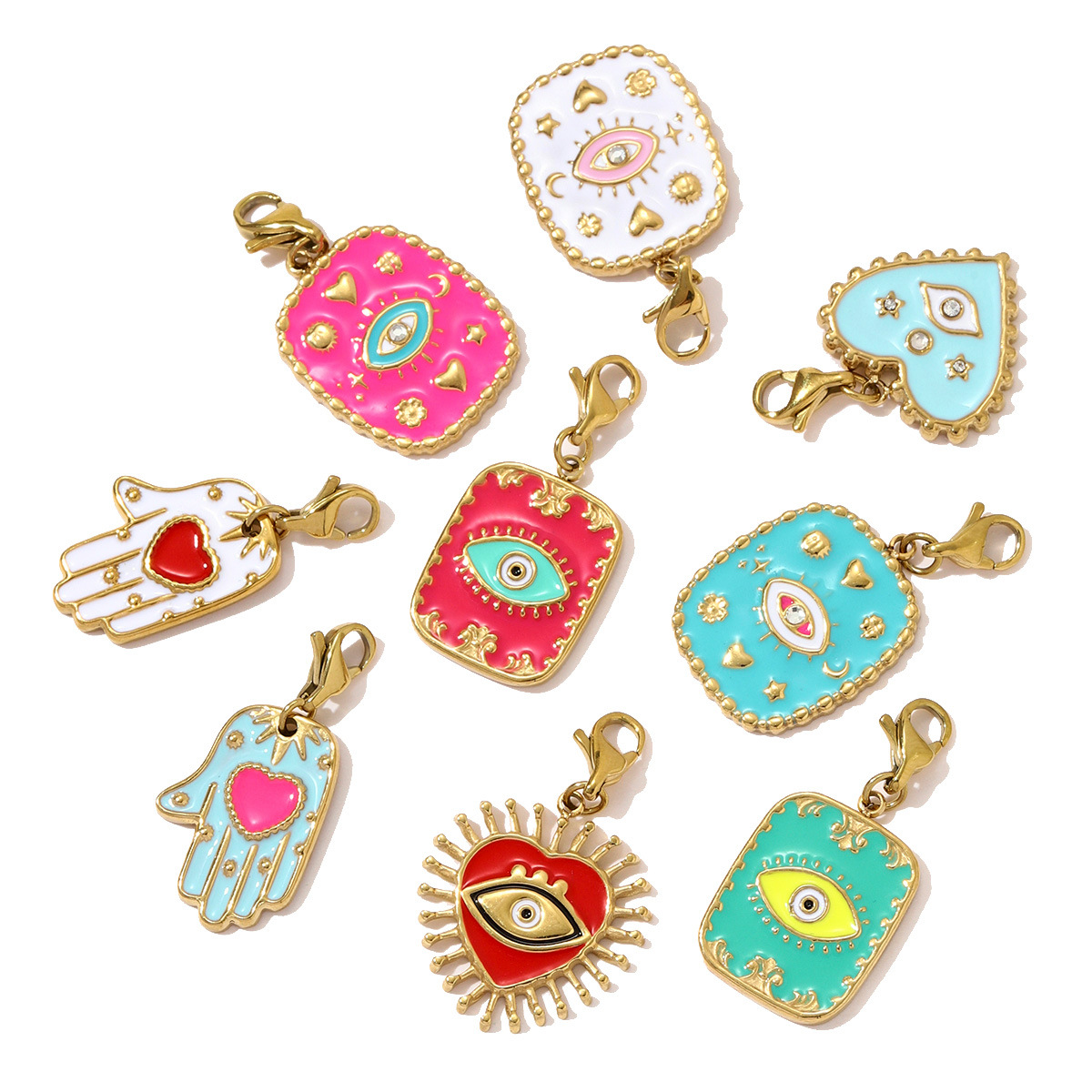 Bijoux pendentifs en acier inoxydable , Acier inoxydable 304, Placage de couleur d'or, DIY & émail & avec strass, plus de couleurs à choisir, 3PC/sac, Vendu par sac