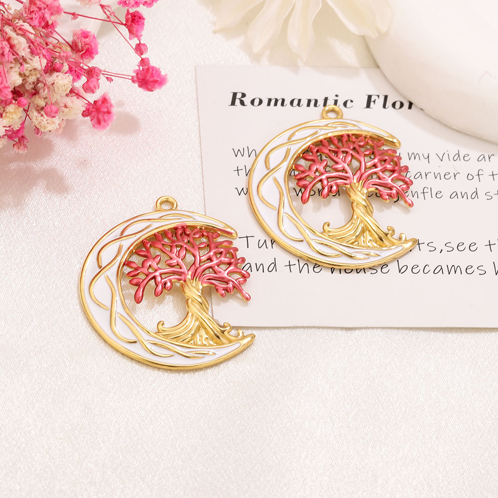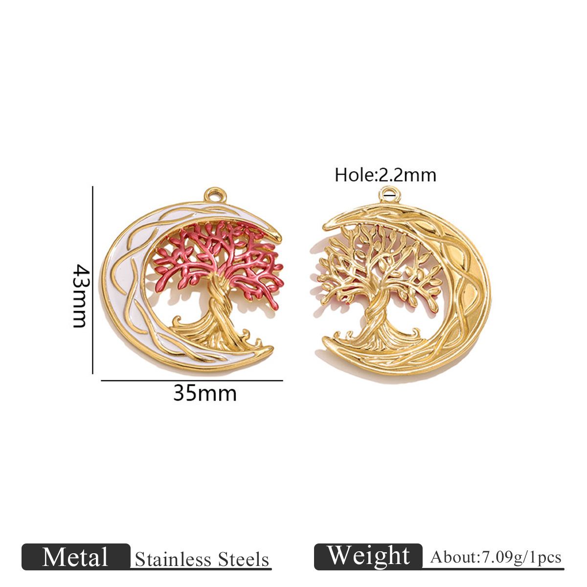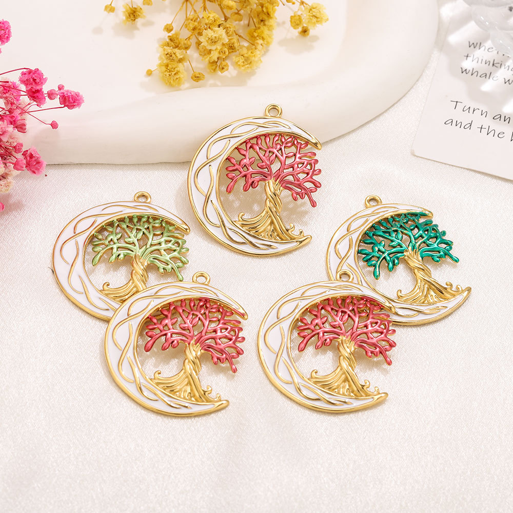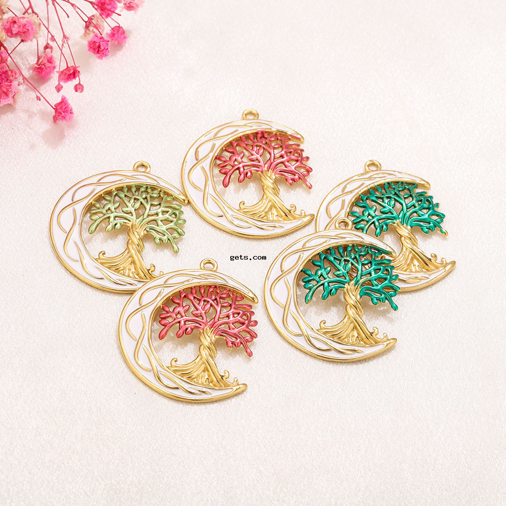 Bijoux pendentifs en acier inoxydable , Acier inoxydable 304, arbre, Placage de couleur d'or, DIY & émail, plus de couleurs à choisir, 35x43mm, Trou:Environ 2.2mm, Vendu par PC