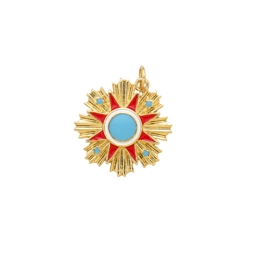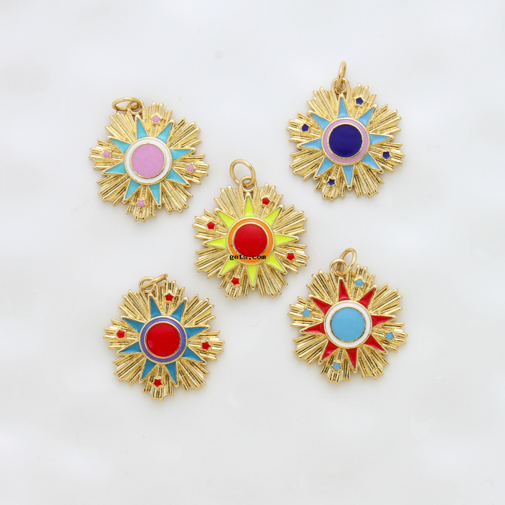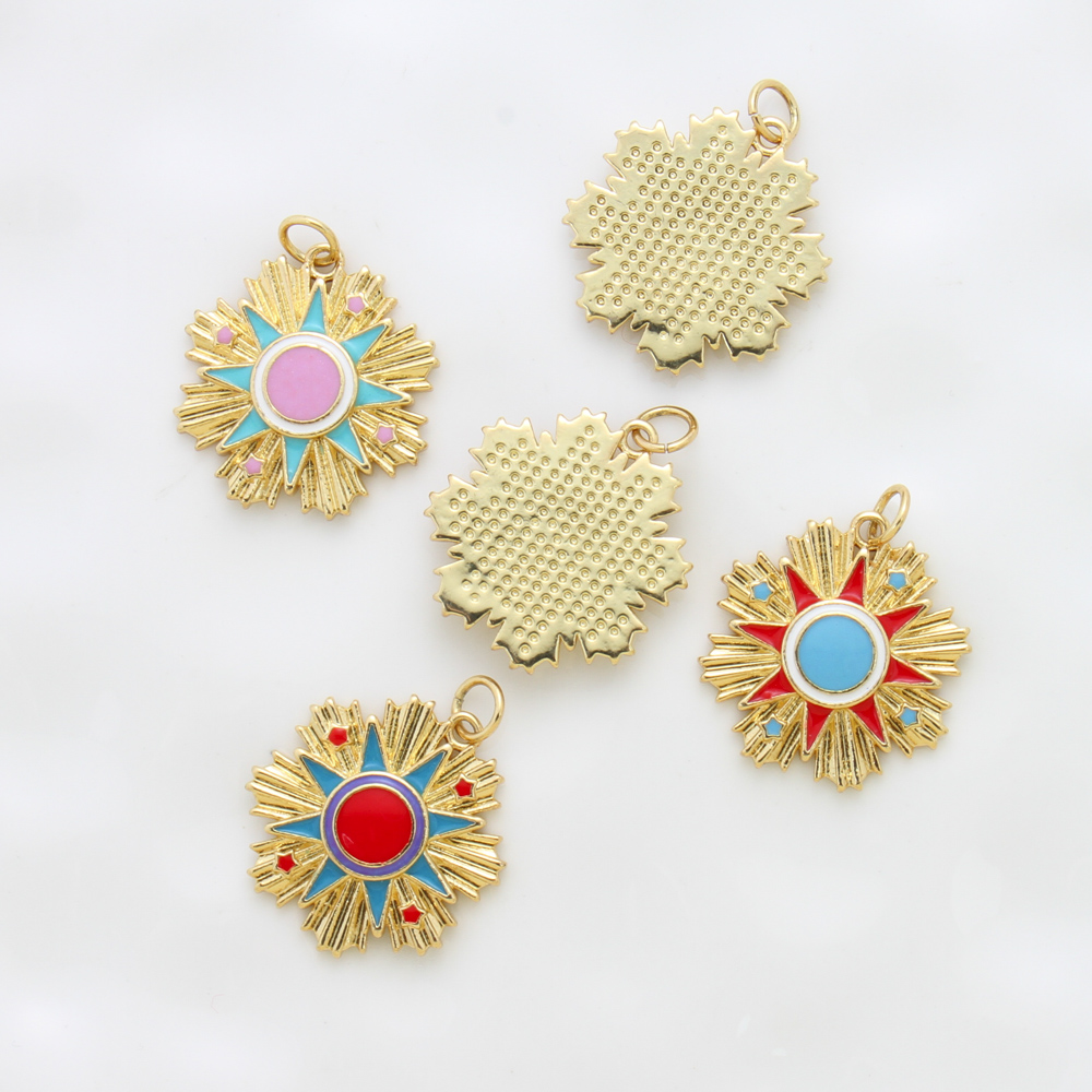 Bijoux pendentifs en laiton, soleil, Placage, DIY & émail, plus de couleurs à choisir, protéger l'environnement, sans nickel, plomb et cadmium, 20.60x19x2.90mm, Vendu par PC