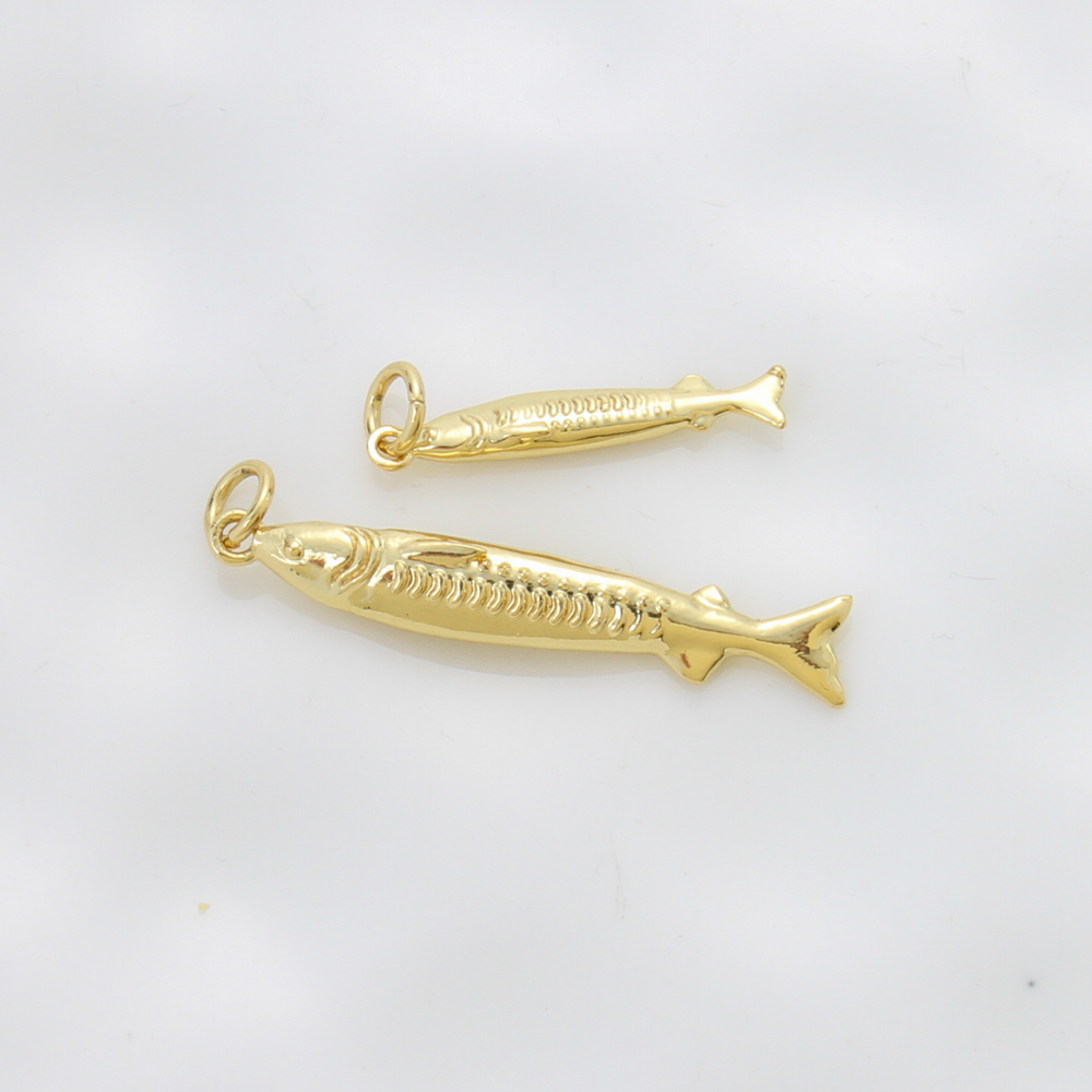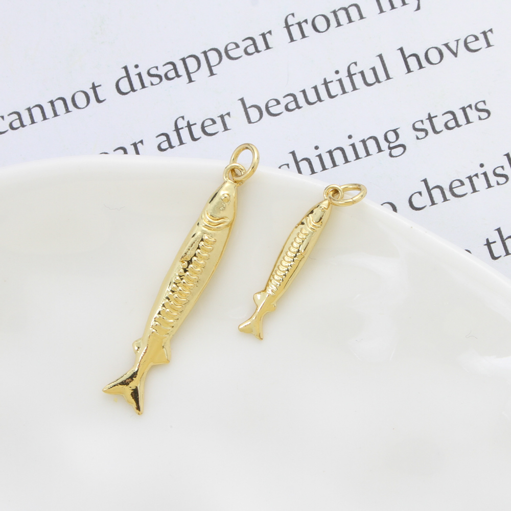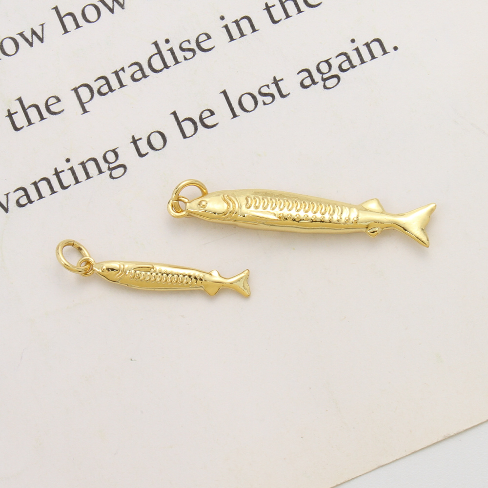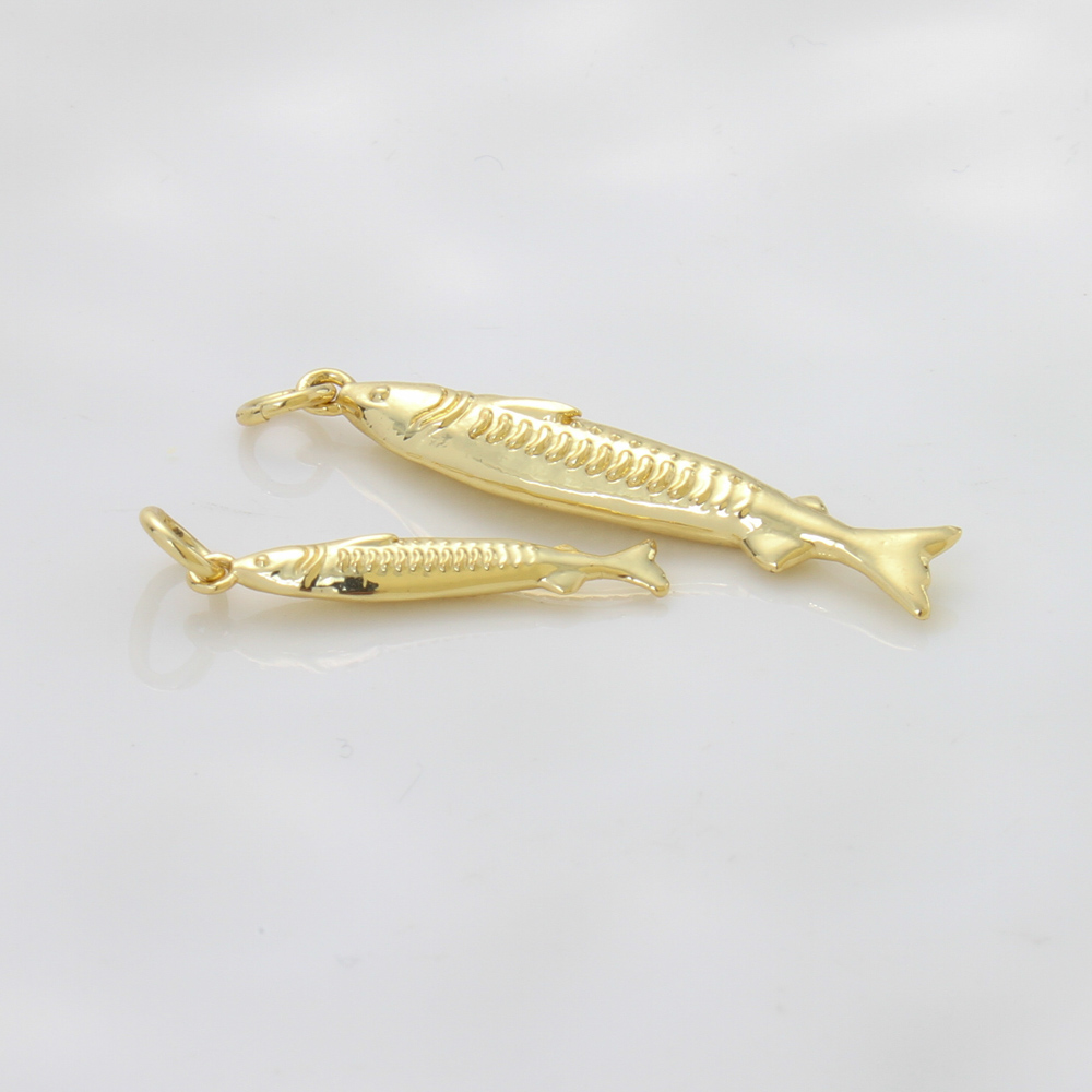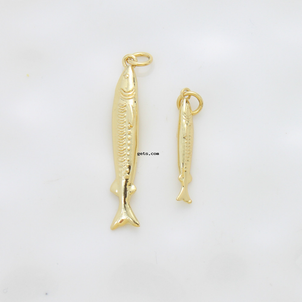 Bijoux pendentifs en laiton, poisson, Placage, DIY, doré, protéger l'environnement, sans nickel, plomb et cadmium, 32.70x5x4mm, Vendu par PC