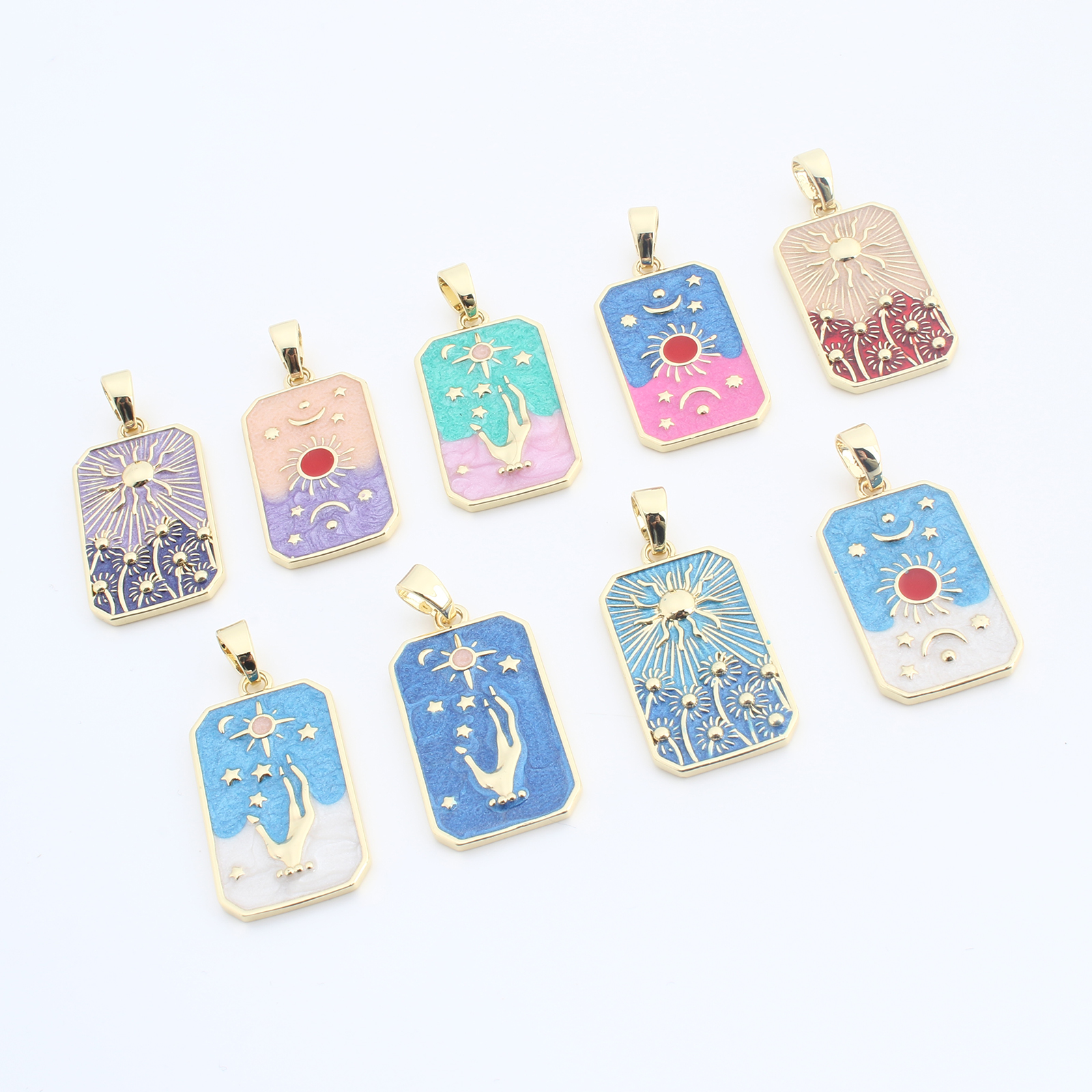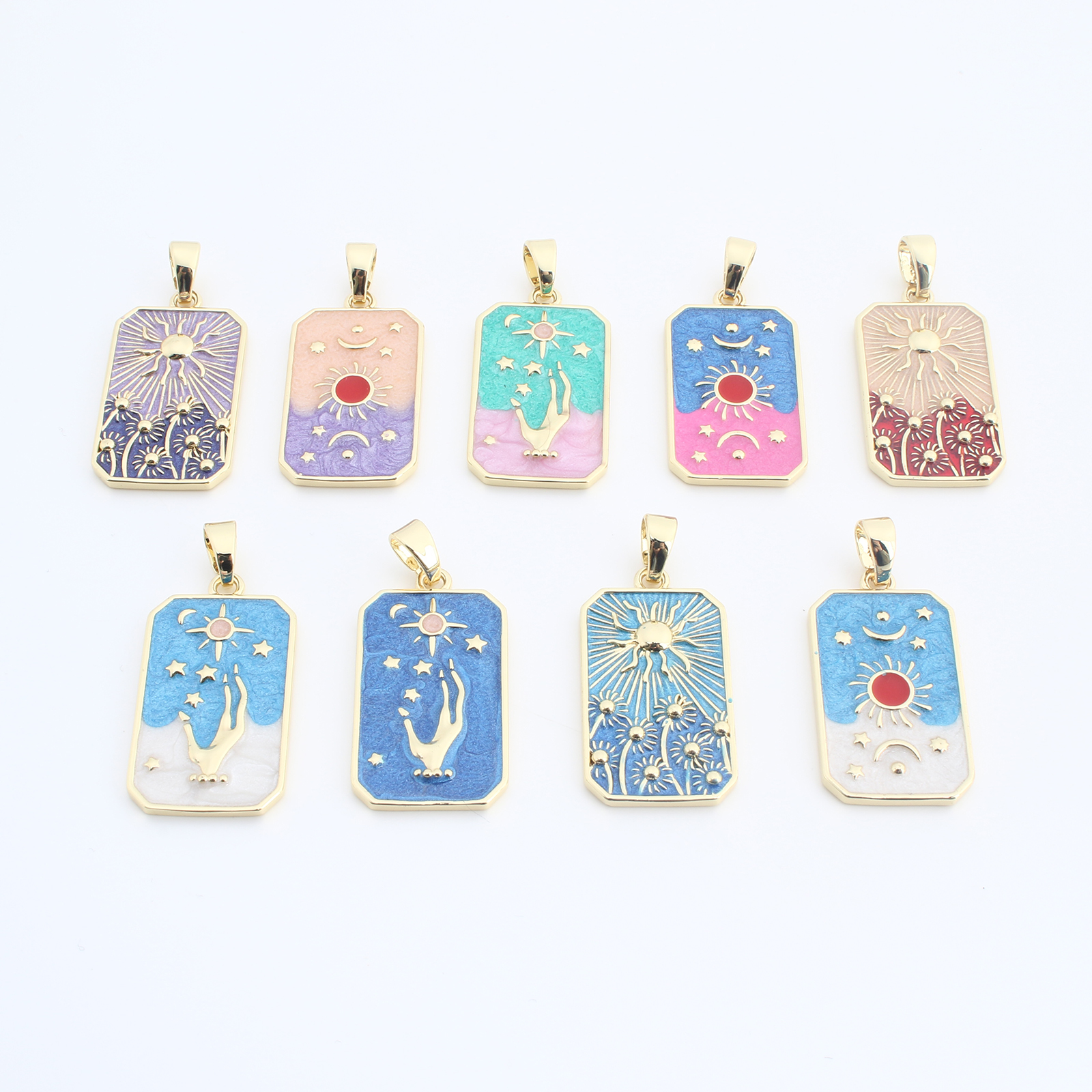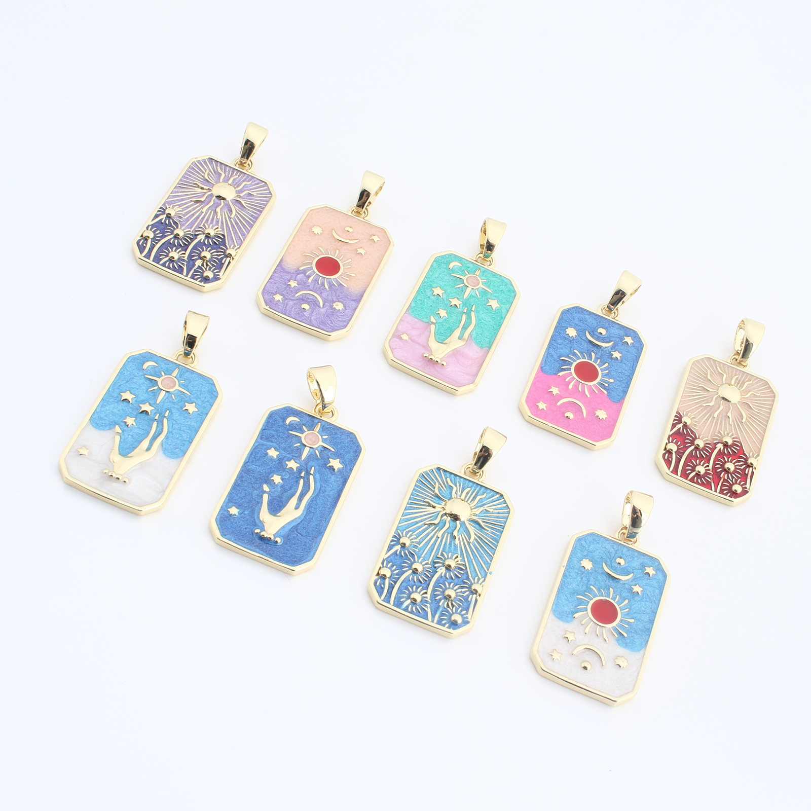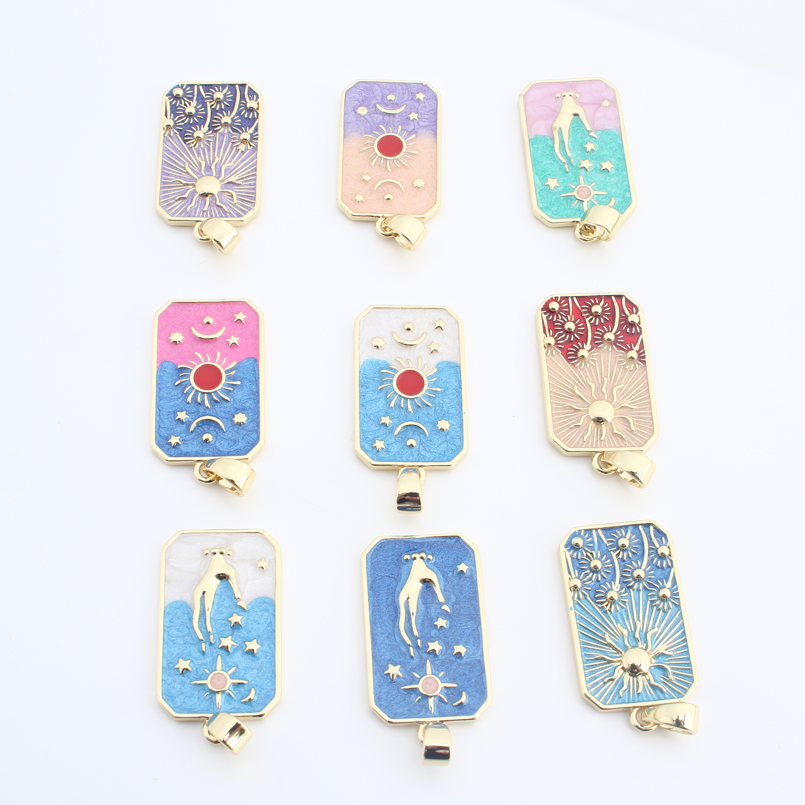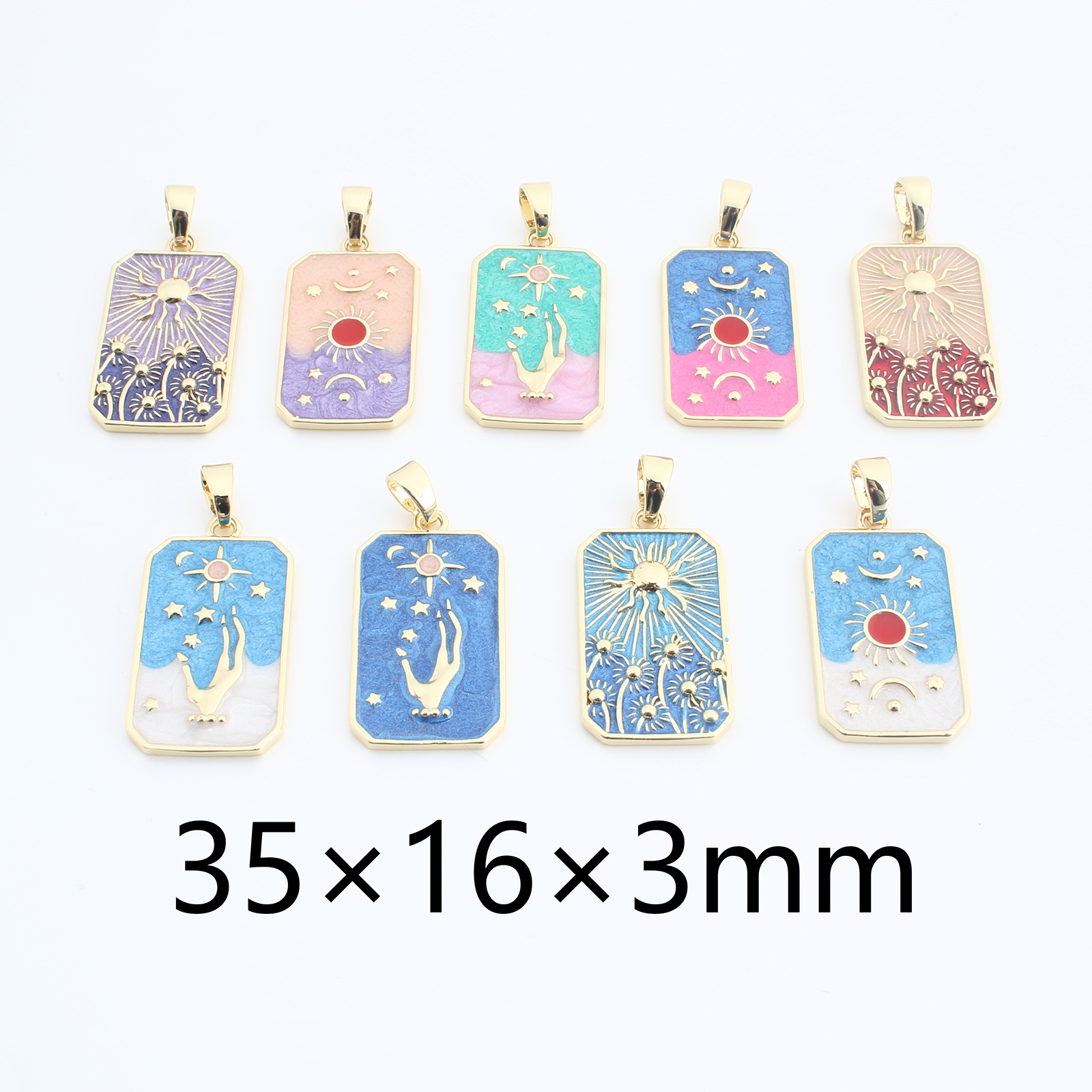 Bijoux pendentifs en laiton, Motif géométrique, Placage de couleur d'or, DIY & émail, plus de couleurs à choisir, 35x16x3mm, Vendu par PC