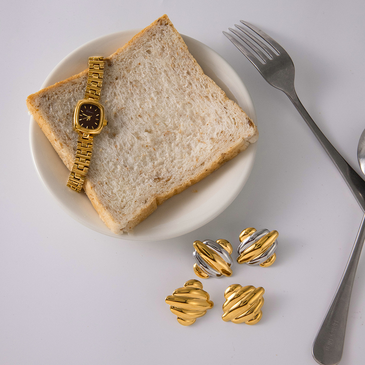 - Boucle d'oreille de gaujon en acier inoxydable, Acier inoxydable 304, Plaqué or 18K