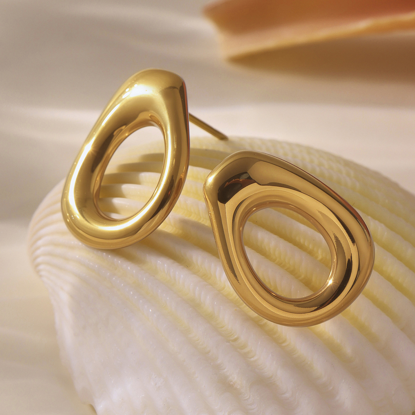 Boucle d'oreille de gaujon en acier inoxydable, Acier inoxydable 304, coquille, Placage de couleur d'or, bijoux de mode, Or, Vendu par paire