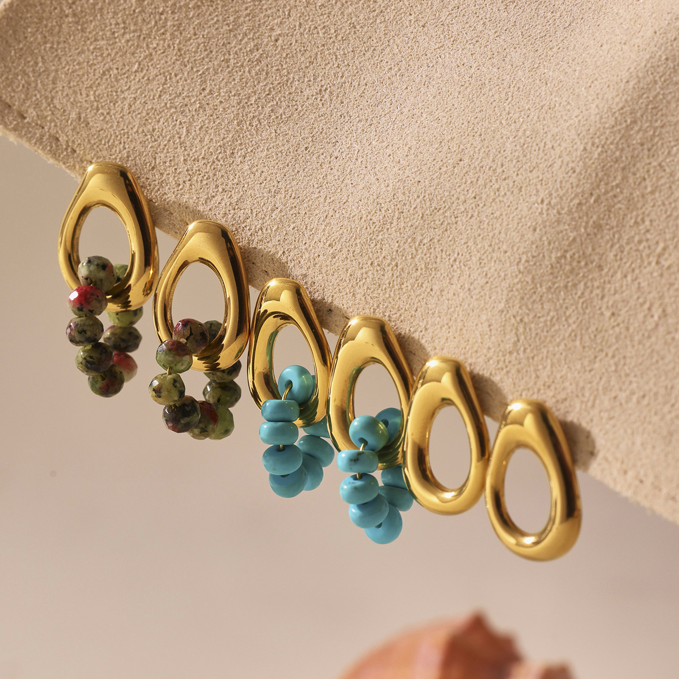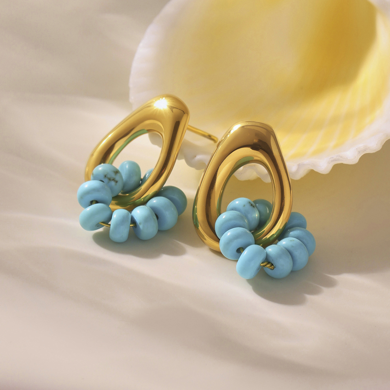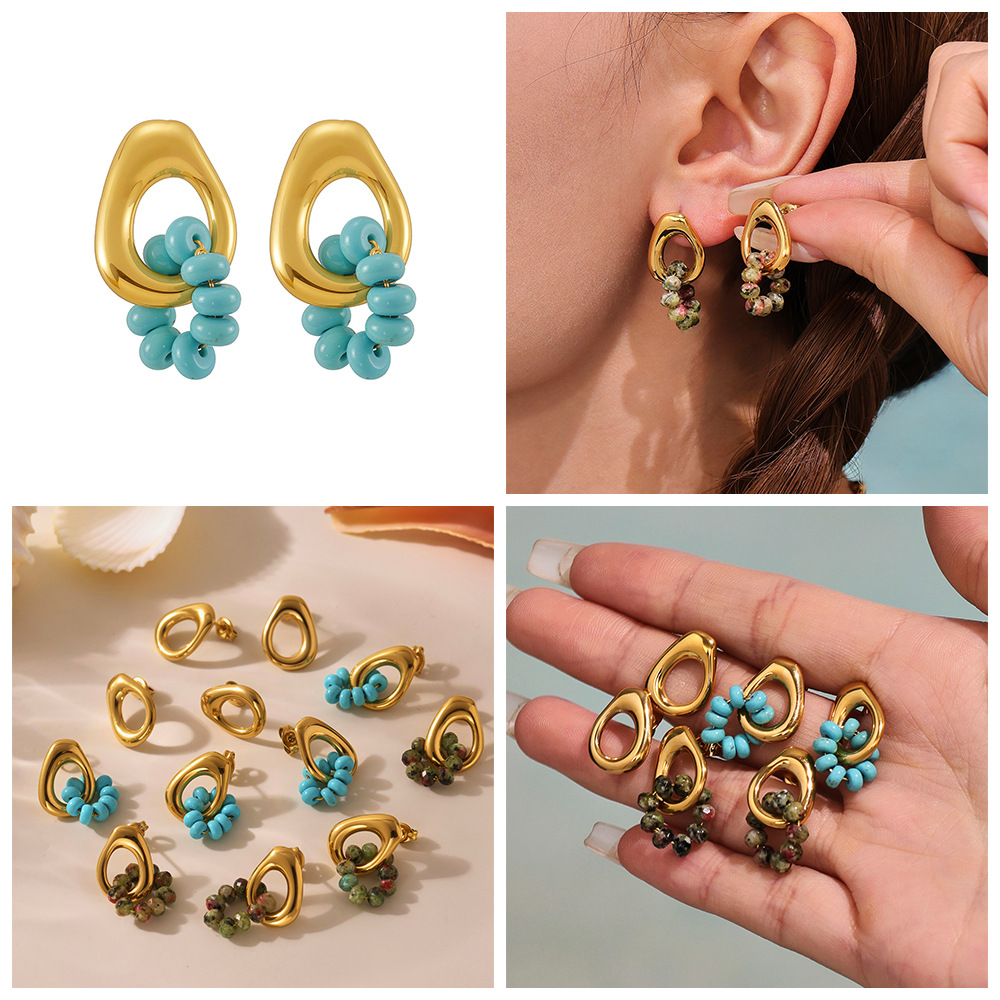 Boucle d'oreille de gaujon en acier inoxydable, Acier inoxydable 304, avec turquoise, Placage, différents matériaux pour le choix & styles différents pour le choix & pour femme & creux, Vendu par paire