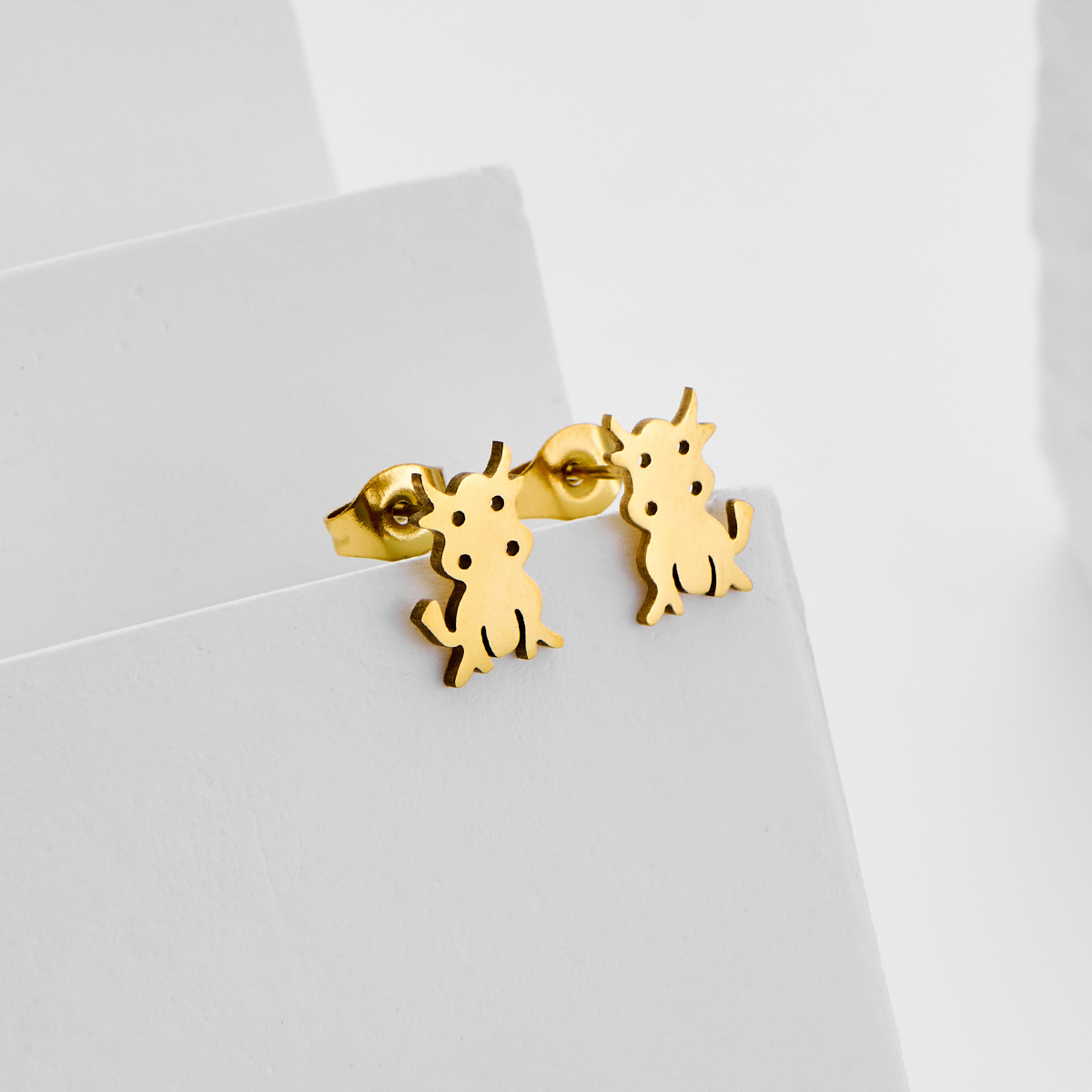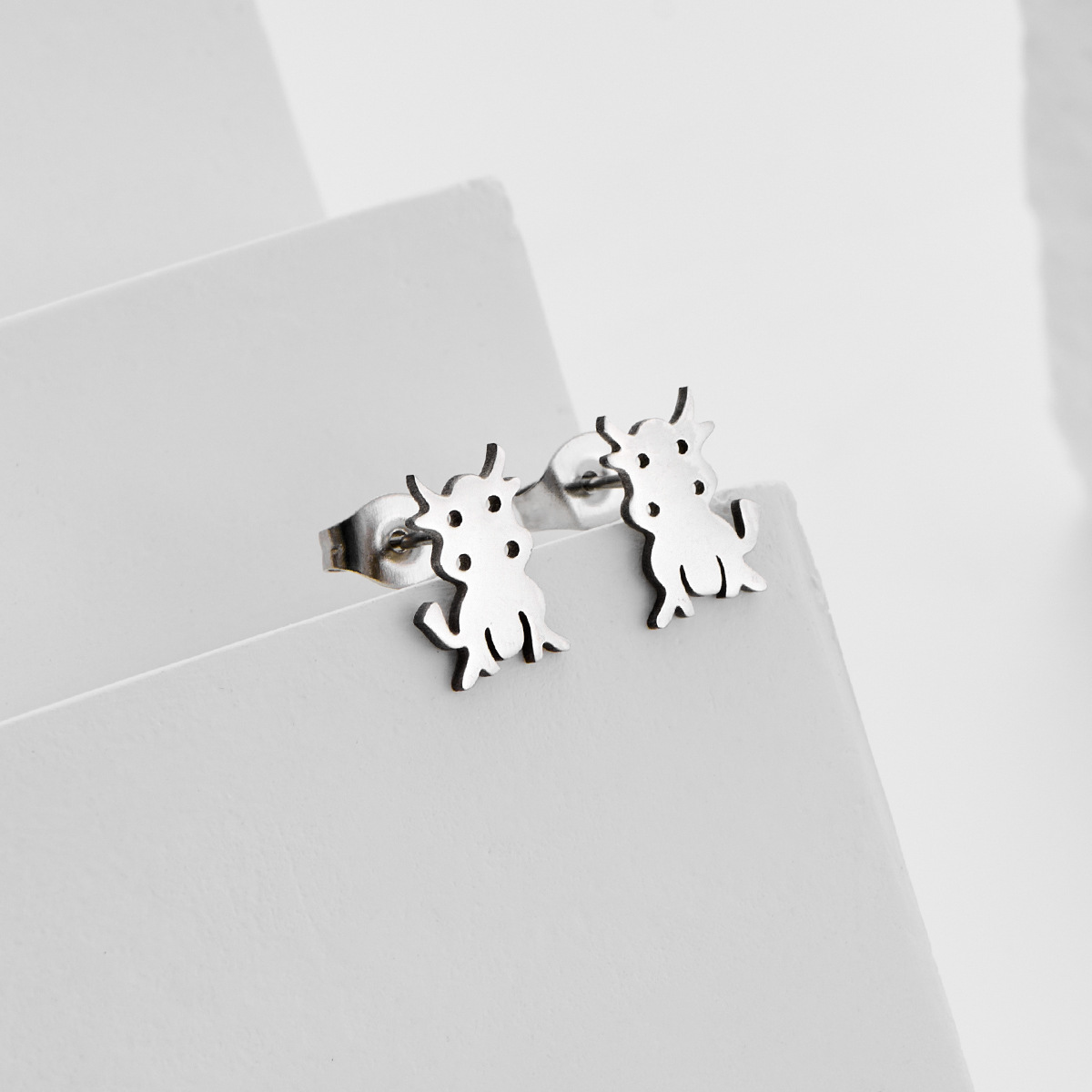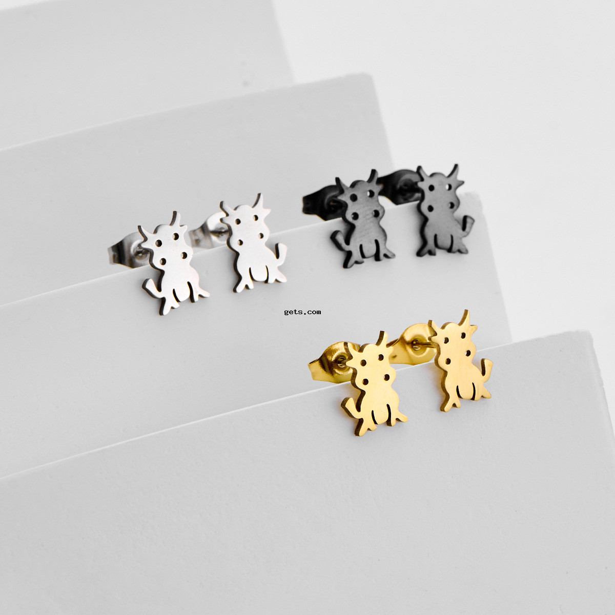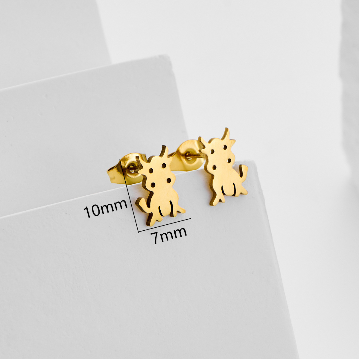 - Boucle d'oreille de gaujon en acier inoxydable, Dinosaure, Placage