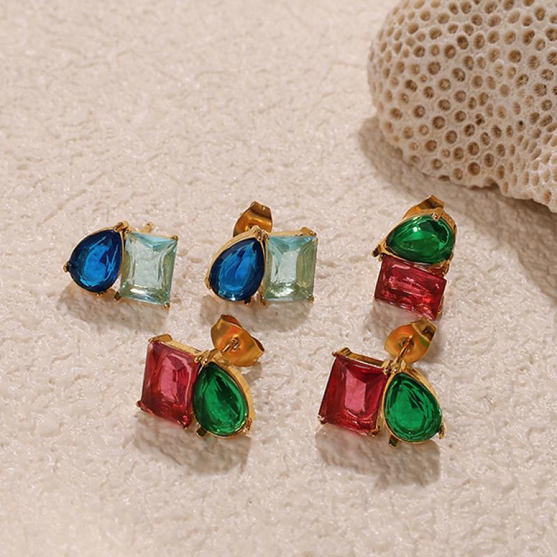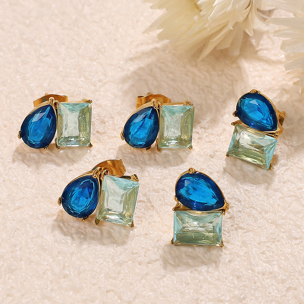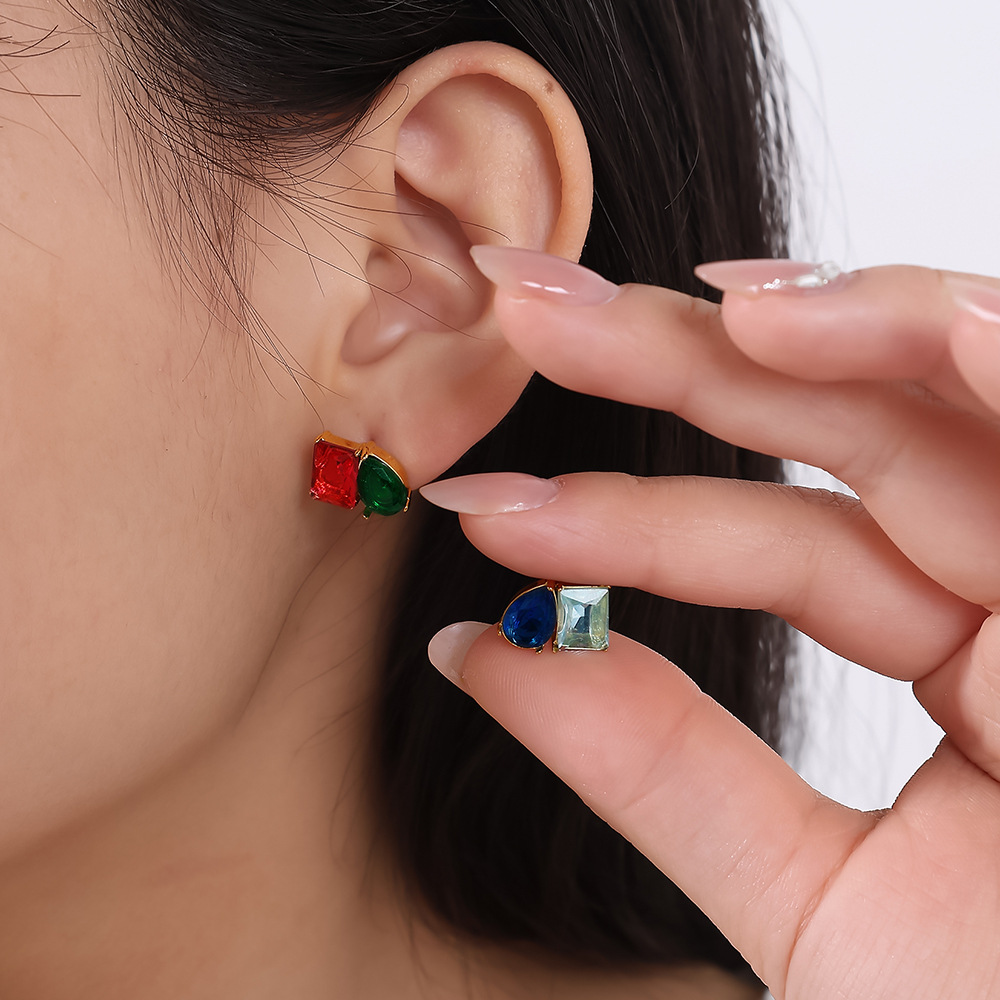 - Boucle d'oreille de gaujon en acier inoxydable, Acier inoxydable 304, avec Des billes de verre