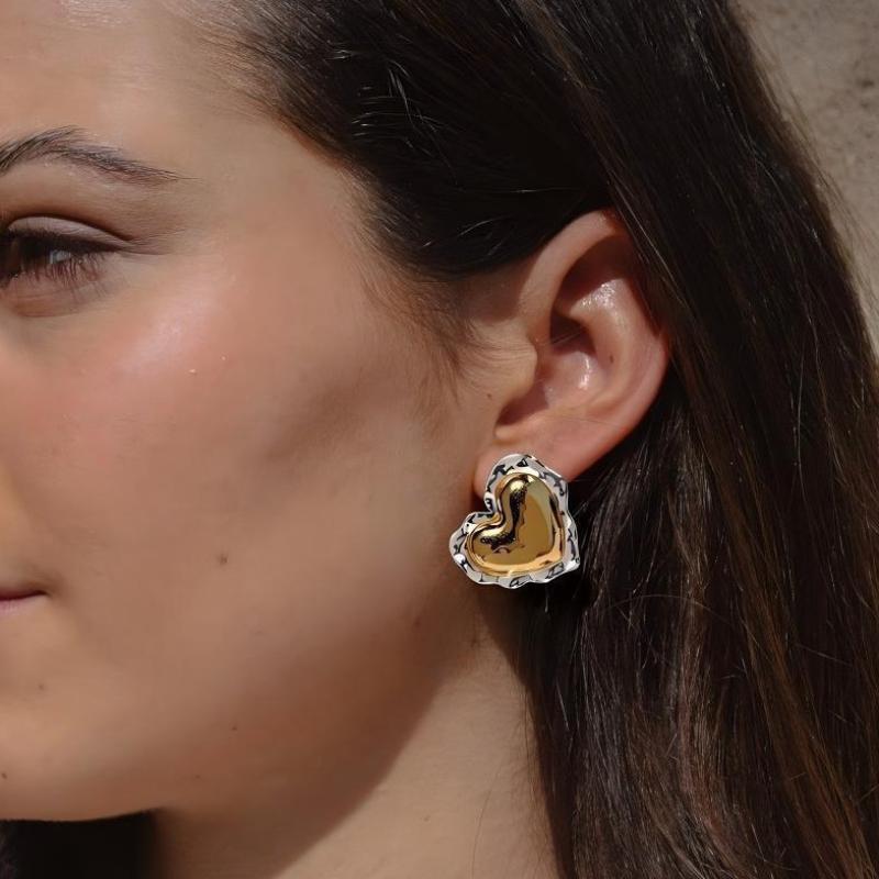 - Boucle d'oreille de gaujon en acier inoxydable, Acier inoxydable 304, Placage de couleur d'or