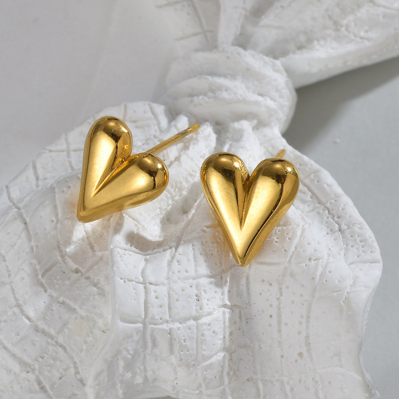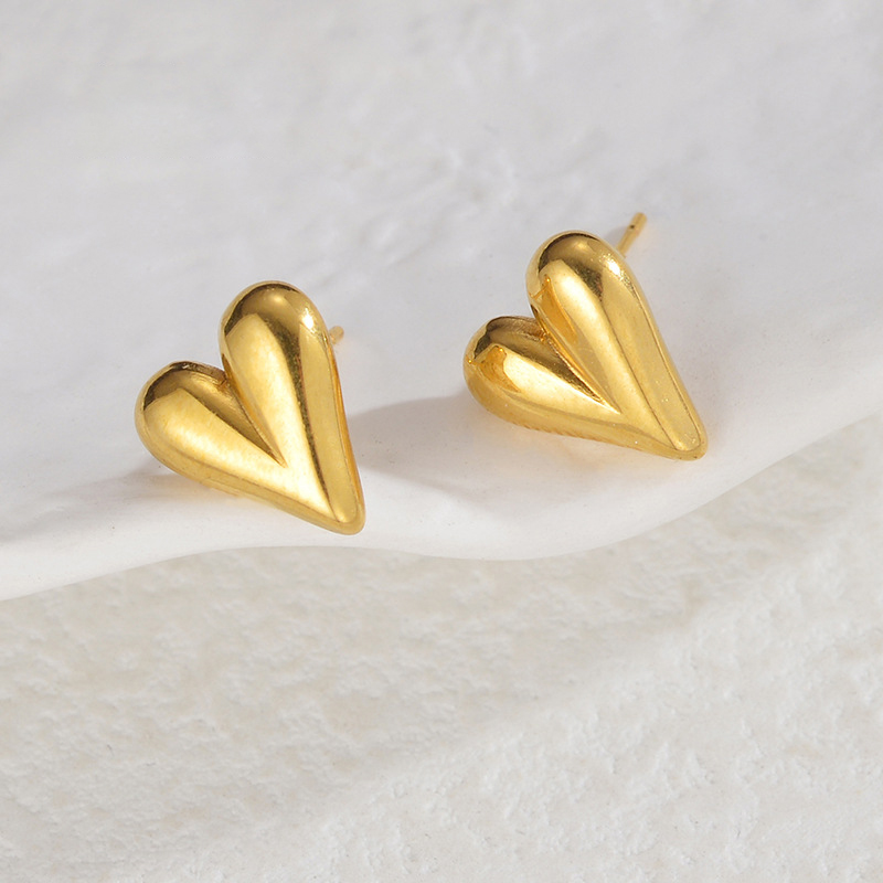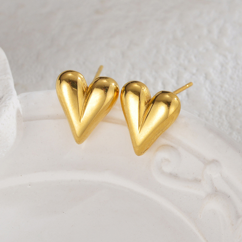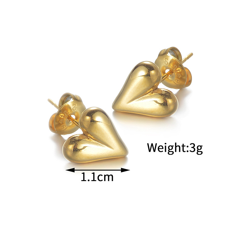 Boucle d'oreille de gaujon en acier inoxydable, Acier inoxydable 304, coeur, Plaqué or 18K, bijoux de mode & pour femme, Vendu par paire