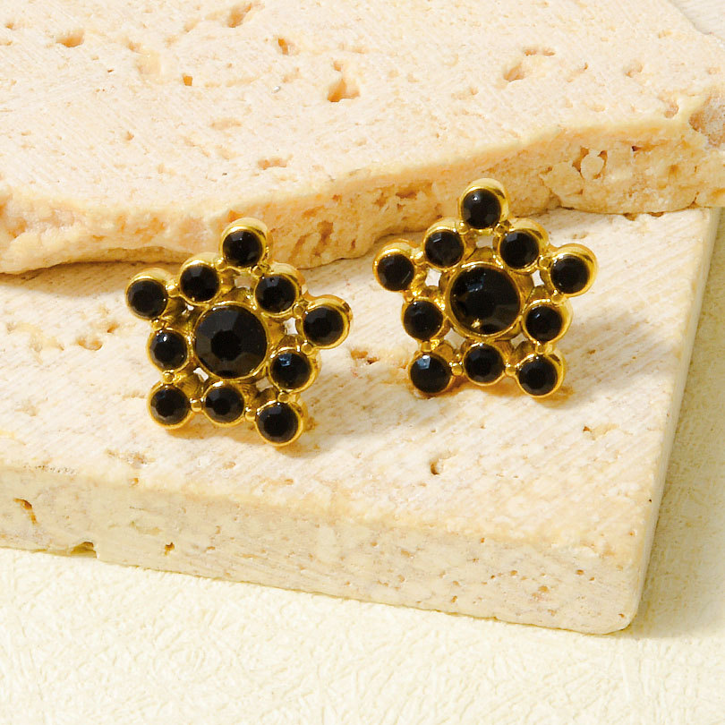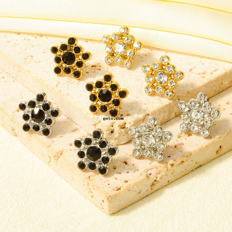 Boucle d'oreille de gaujon en acier inoxydable, Acier inoxydable 304, étoile, Placage, bijoux de mode & avec strass, plus de couleurs à choisir, 13x13mm, Vendu par paire