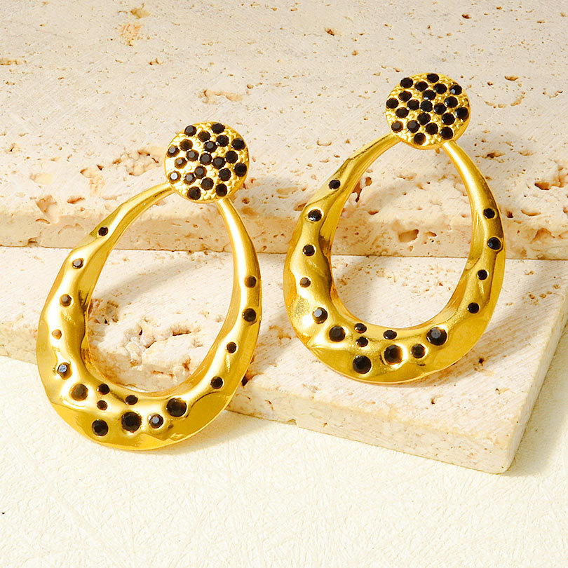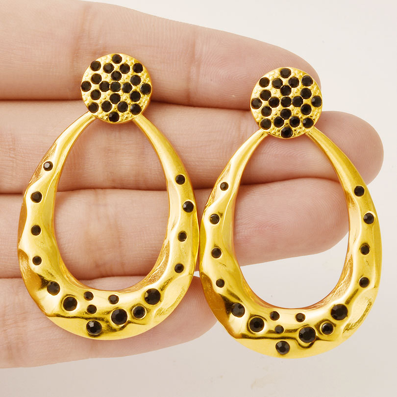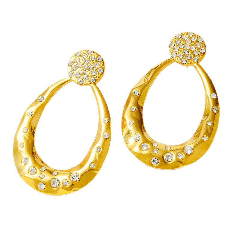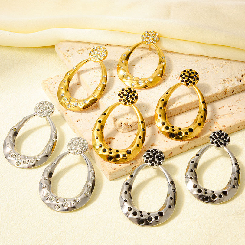 Boucle d'oreille de gaujon en acier inoxydable, Acier inoxydable 304, Placage, bijoux de mode & avec strass & creux, plus de couleurs à choisir, 51.20x32mm, Vendu par paire