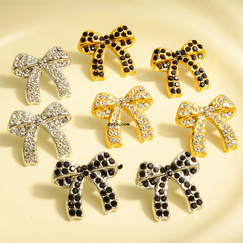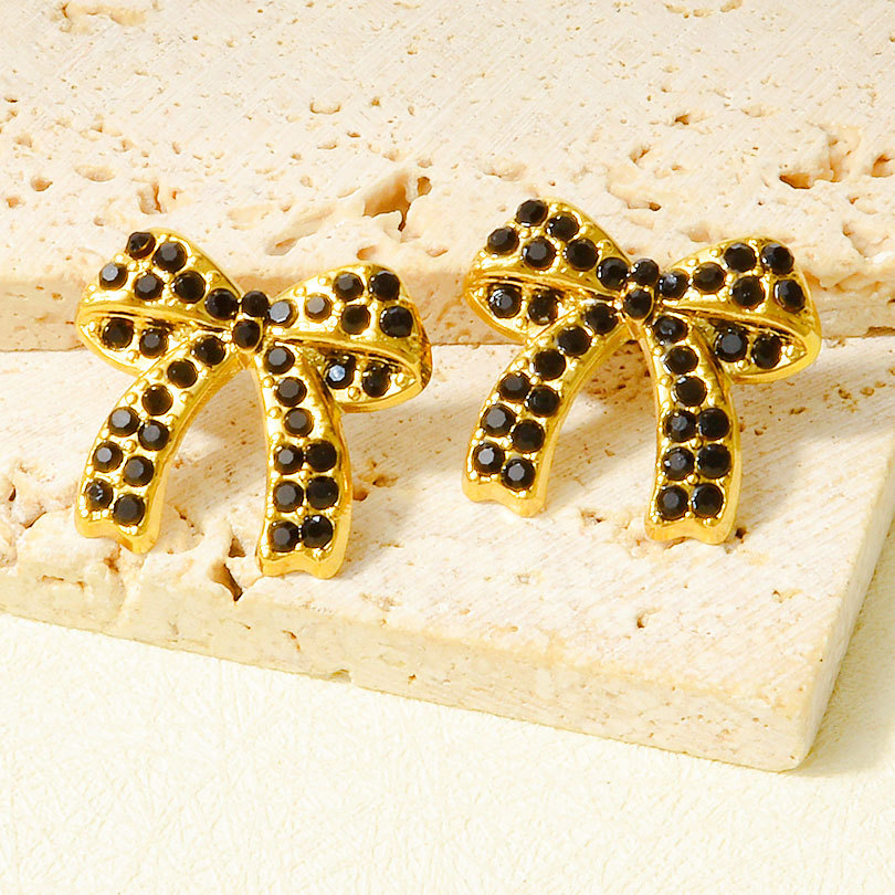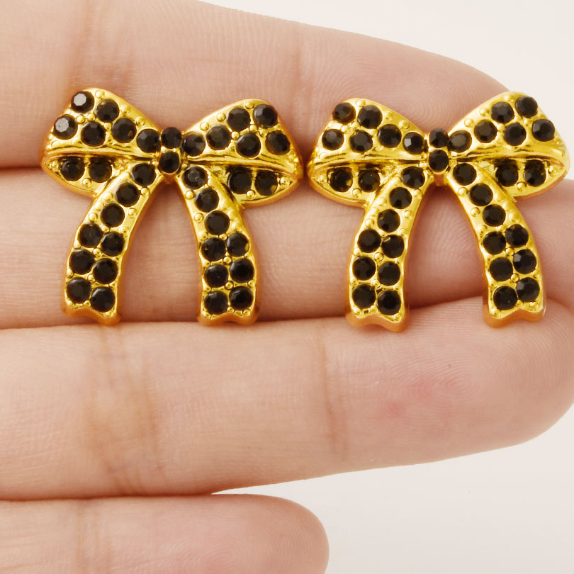 Boucle d'oreille de gaujon en acier inoxydable, Acier inoxydable 304, Noeud papillon, Placage, bijoux de mode & avec strass, plus de couleurs à choisir, 16x27.50mm, Vendu par paire