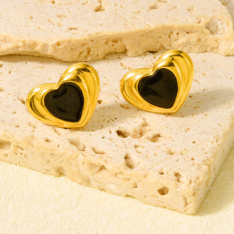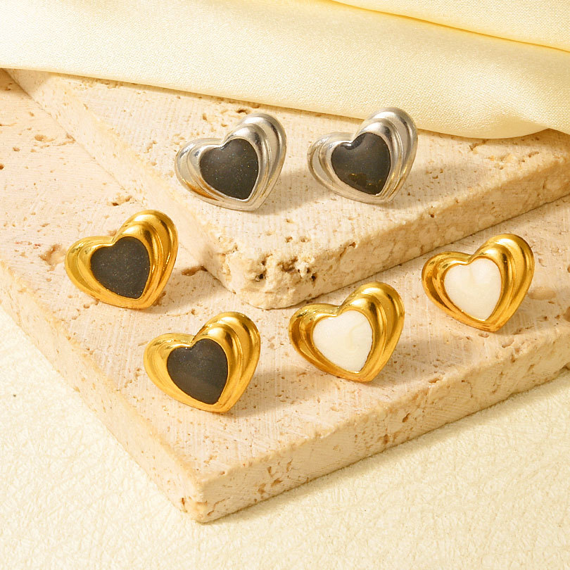 Boucle d'oreille de gaujon en acier inoxydable, Acier inoxydable 304, coeur, Placage, bijoux de mode & émail, plus de couleurs à choisir, 11x15mm, Vendu par paire
