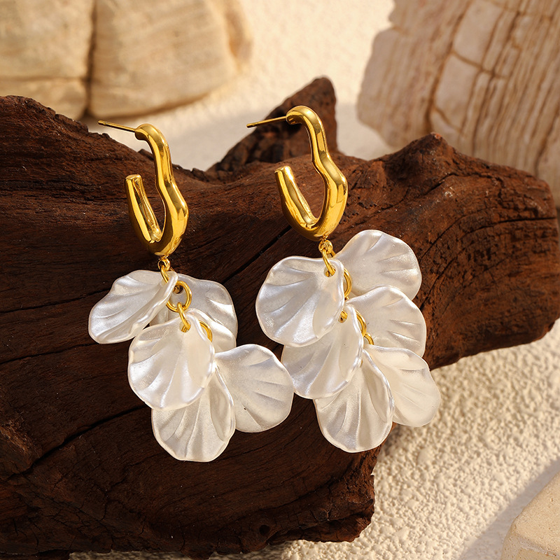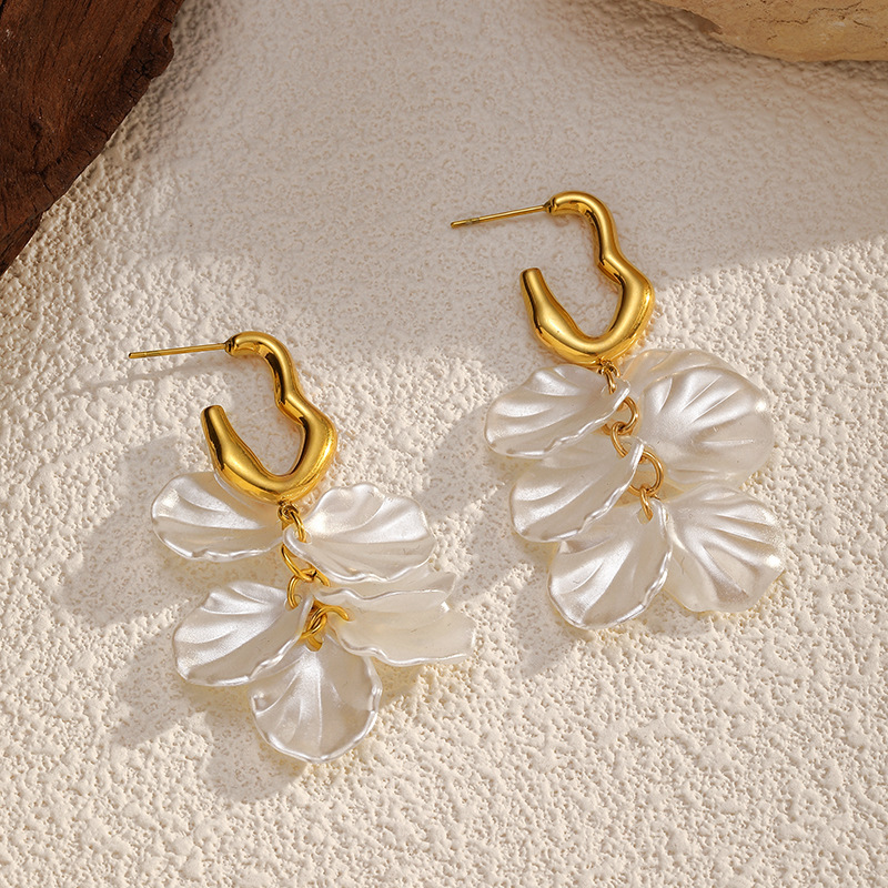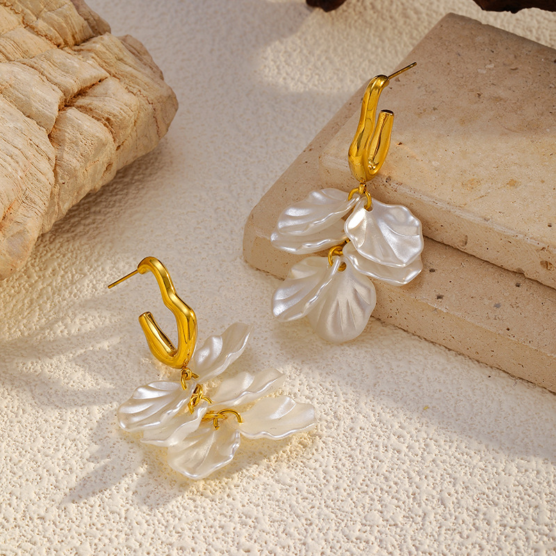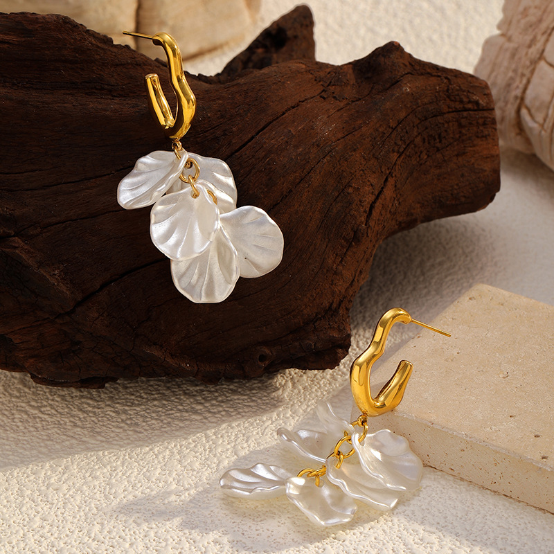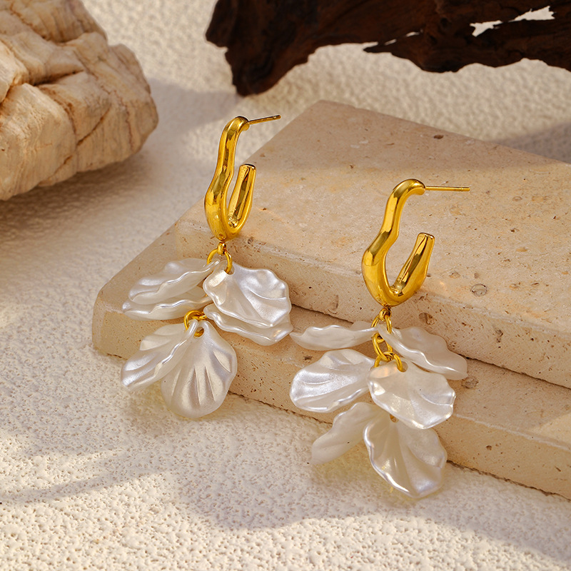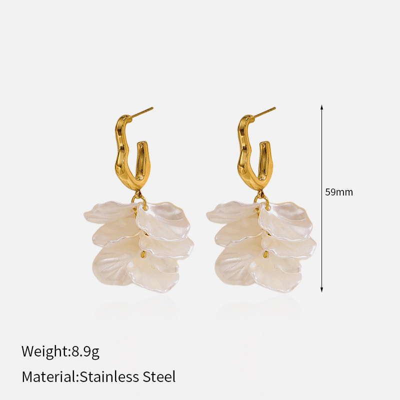 - Boucle d'oreille goutte inox, Acier inoxydable 304, coquille