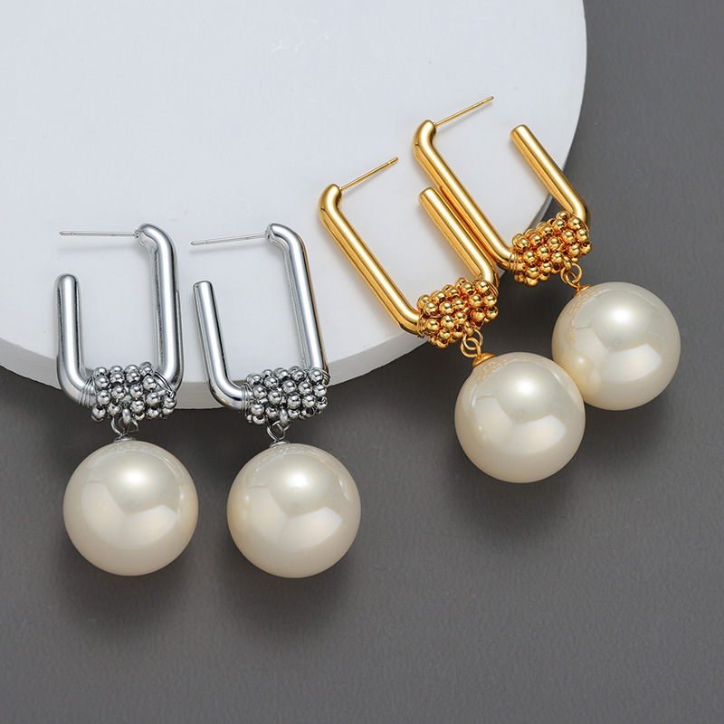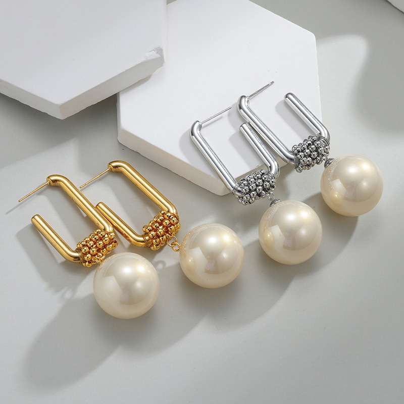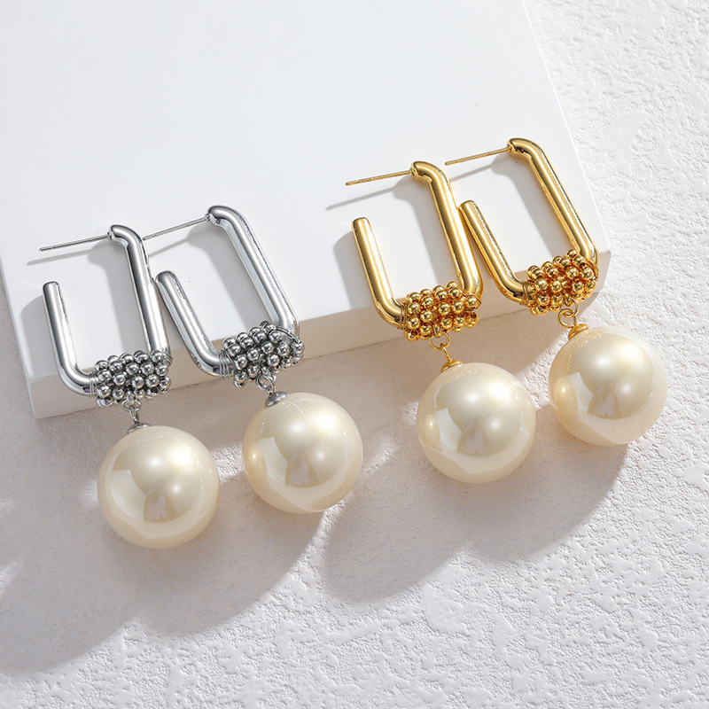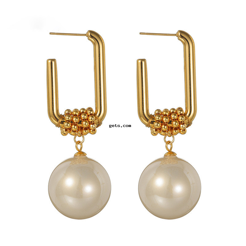 Boucle d'oreille goutte inox, Acier inoxydable 304, avec perle de plastique, Placage, bijoux de mode & pour femme, plus de couleurs à choisir, Vendu par paire