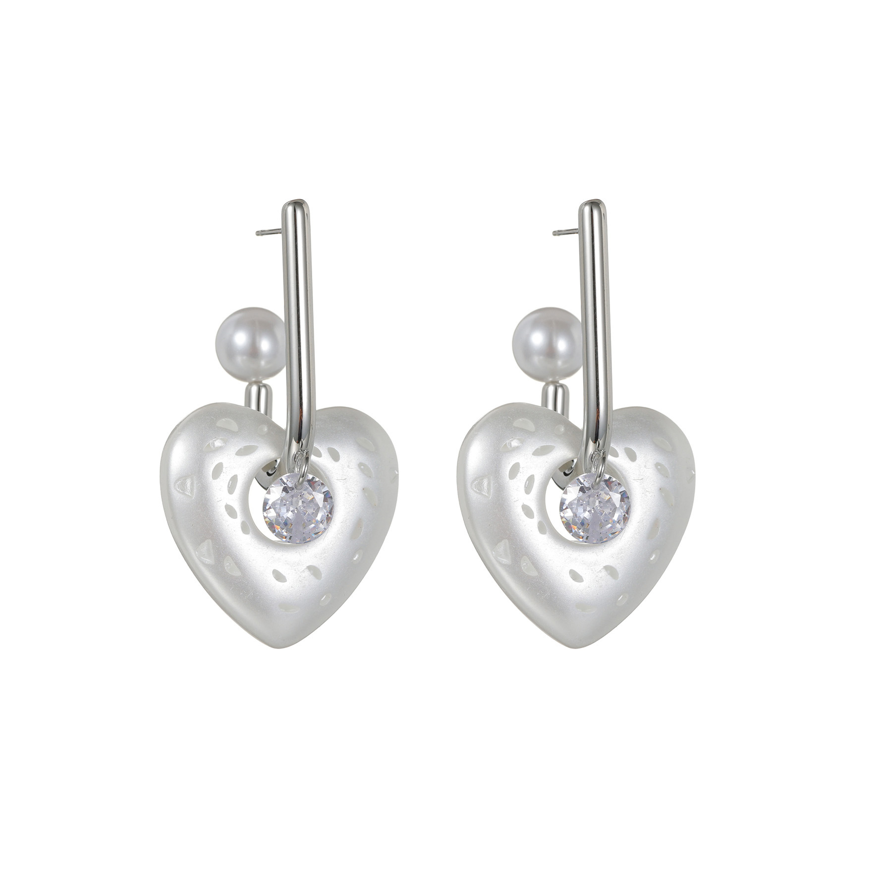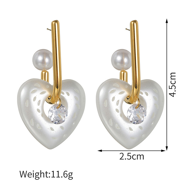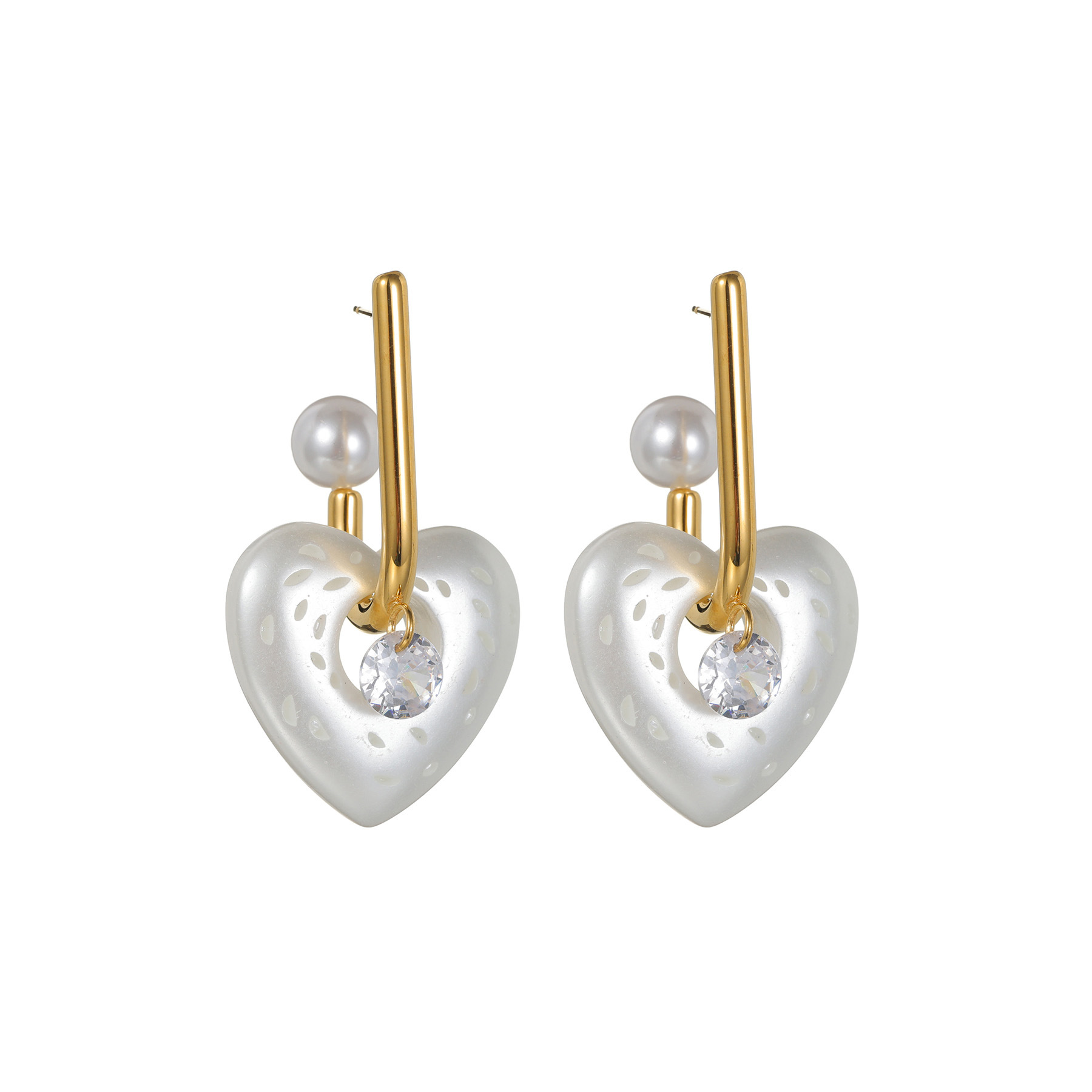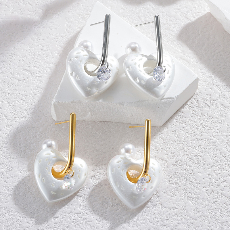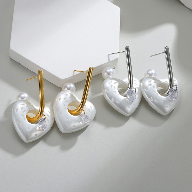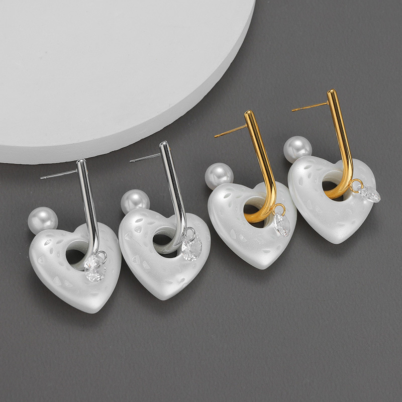 Boucle d'oreille goutte inox, Acier inoxydable 304, avec verre & perle de plastique, coeur, Placage, bijoux de mode & pour femme & creux, plus de couleurs à choisir, Vendu par paire