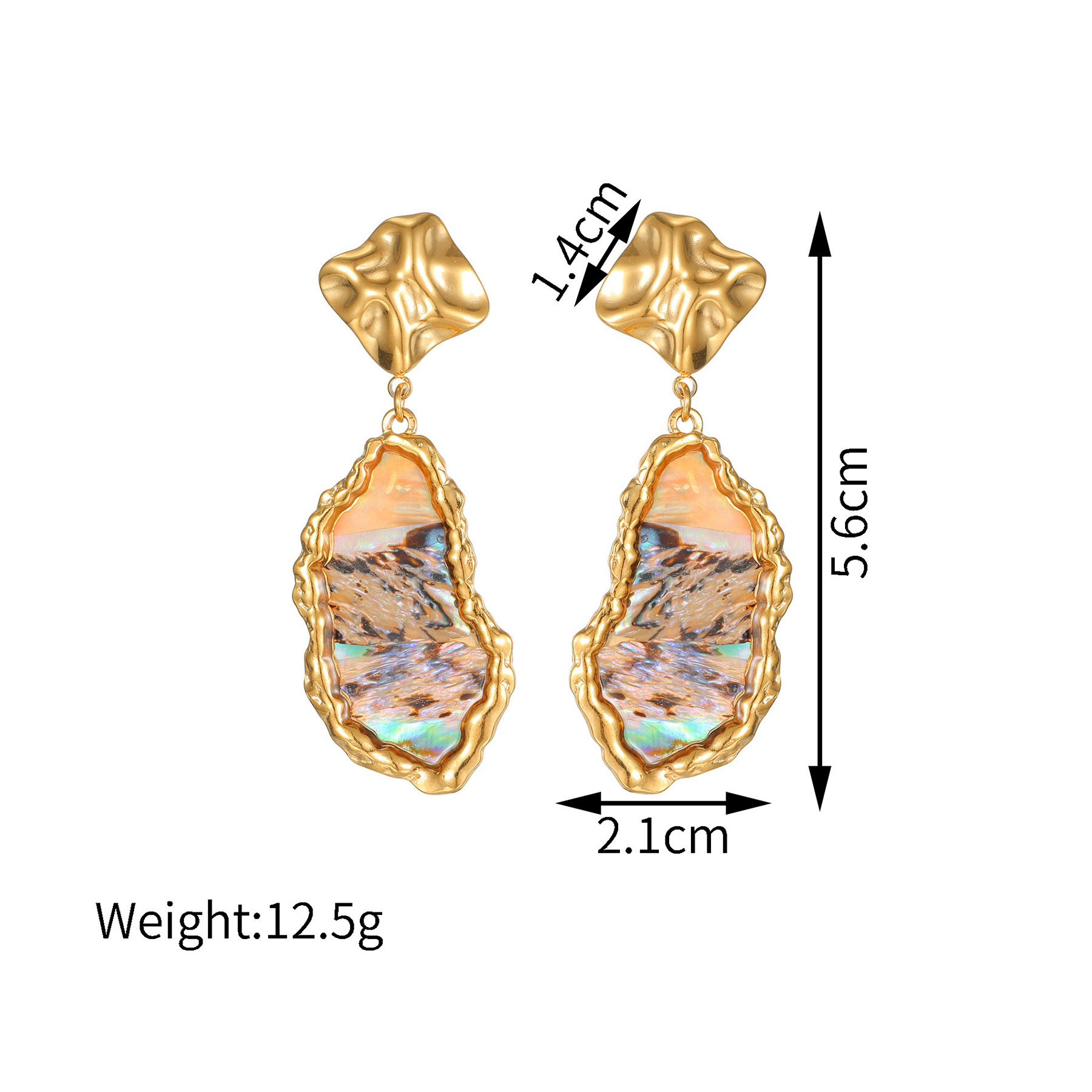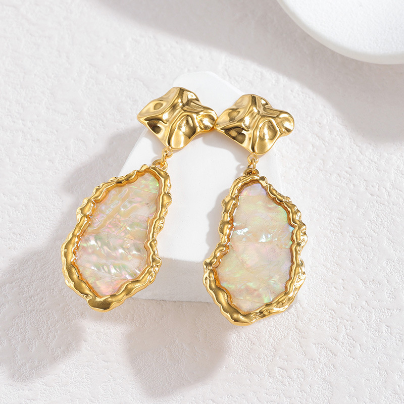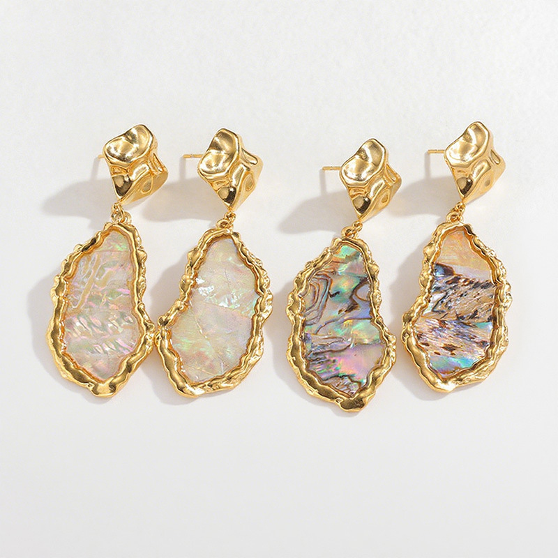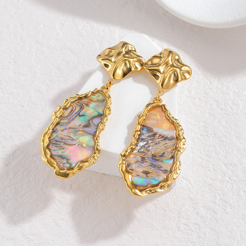 Boucle d'oreille goutte inox, Acier inoxydable 304, avec coquille d'ormeau, Placage, bijoux de mode & différents matériaux pour le choix & pour femme, doré, Vendu par paire