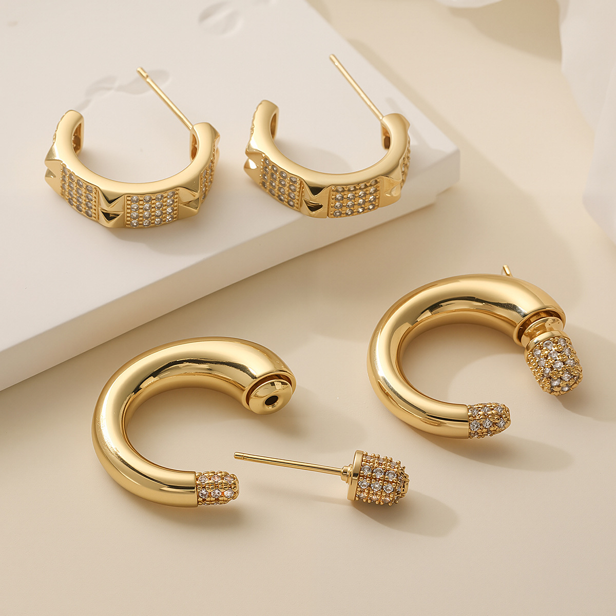 - Boucles d'oreilles en laiton zircon cubique pavent, bijoux de mode & styles différents pour le choix & pavé de micro zircon & pour femme, Vendu par paire