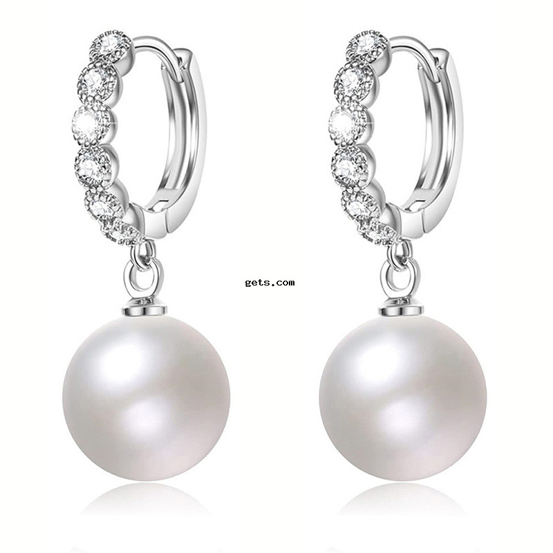 Boucles d'oreilles en laiton zircon cubique pavent, avec perle de plastique, Placage, bijoux de mode & pavé de micro zircon & pour femme, Vendu par paire