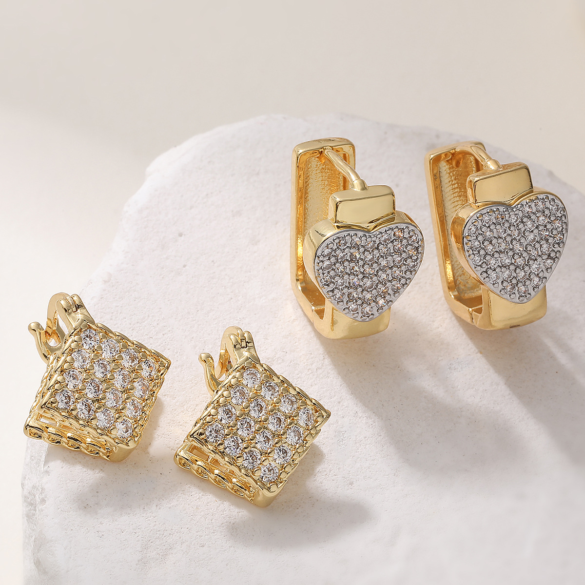 - Boucles d'oreilles en laiton zircon cubique pavent, Placage, normes différentes pour le choix & pavé de micro zircon & pour femme