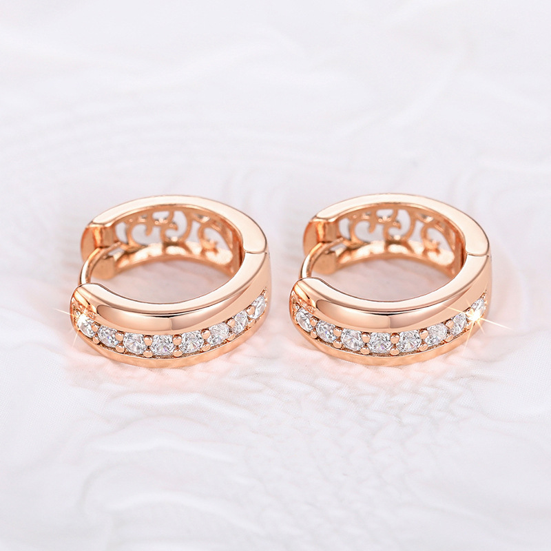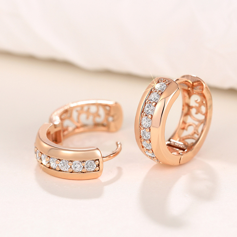 Boucles d'oreilles en laiton zircon cubique pavent, Placage, bijoux de mode & pavé de micro zircon & pour femme, couleur or rose, Vendu par paire