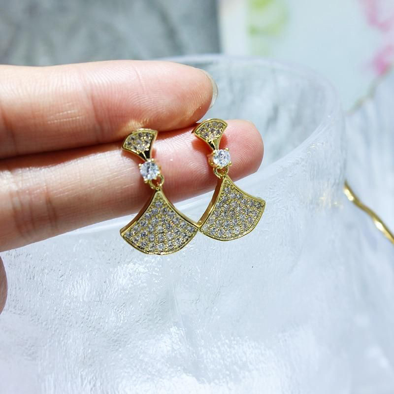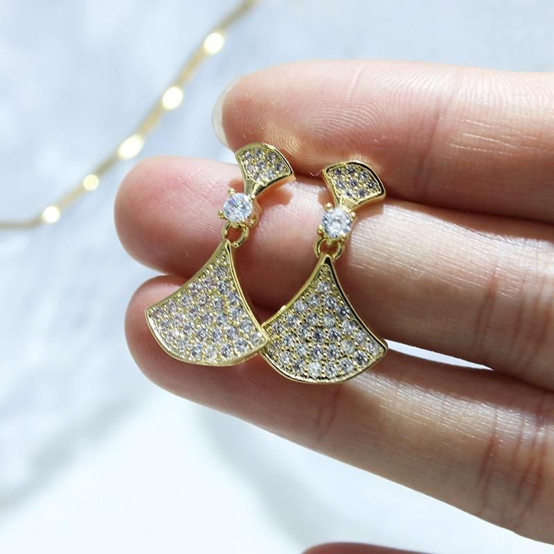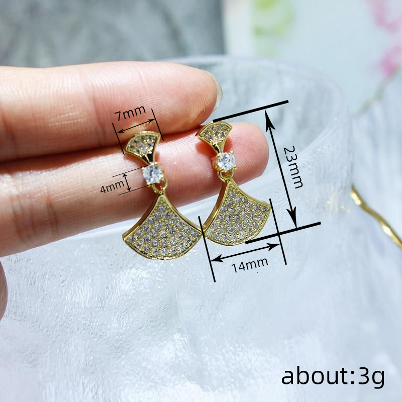 Boucles d'oreilles en laiton zircon cubique pavent, éventail, Placage, bijoux de mode & pavé de micro zircon & pour femme, Vendu par paire