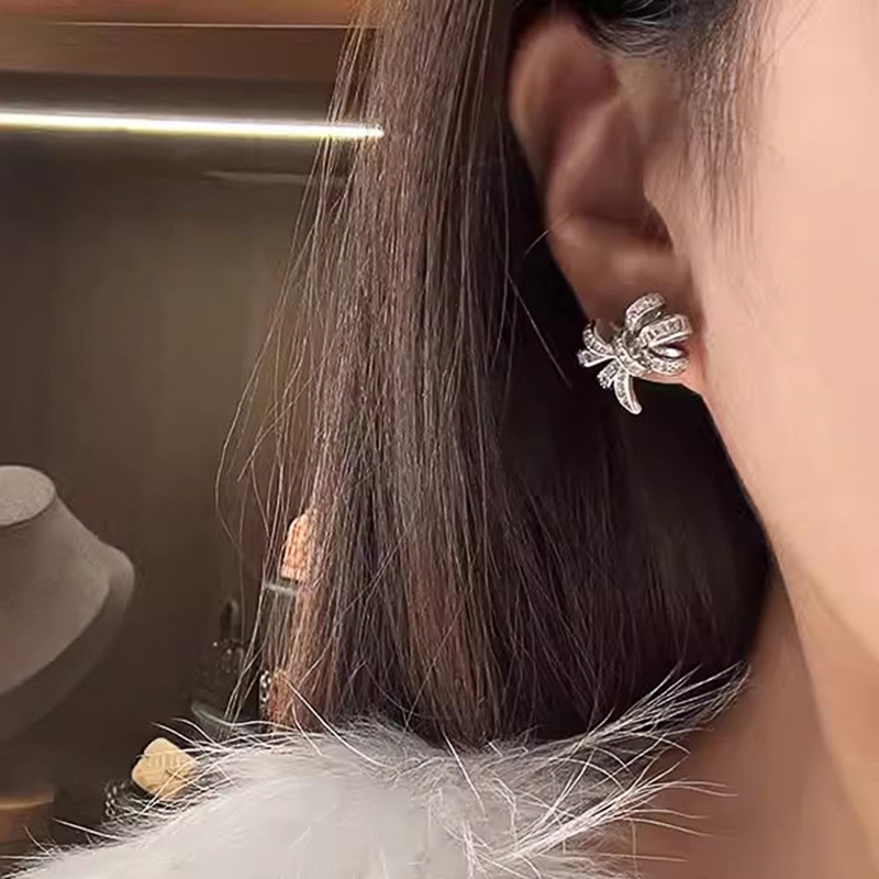 Boucles d'oreilles en laiton zircon cubique pavent, Noeud papillon, Placage, pavé de micro zircon & pour femme & creux, Vendu par paire