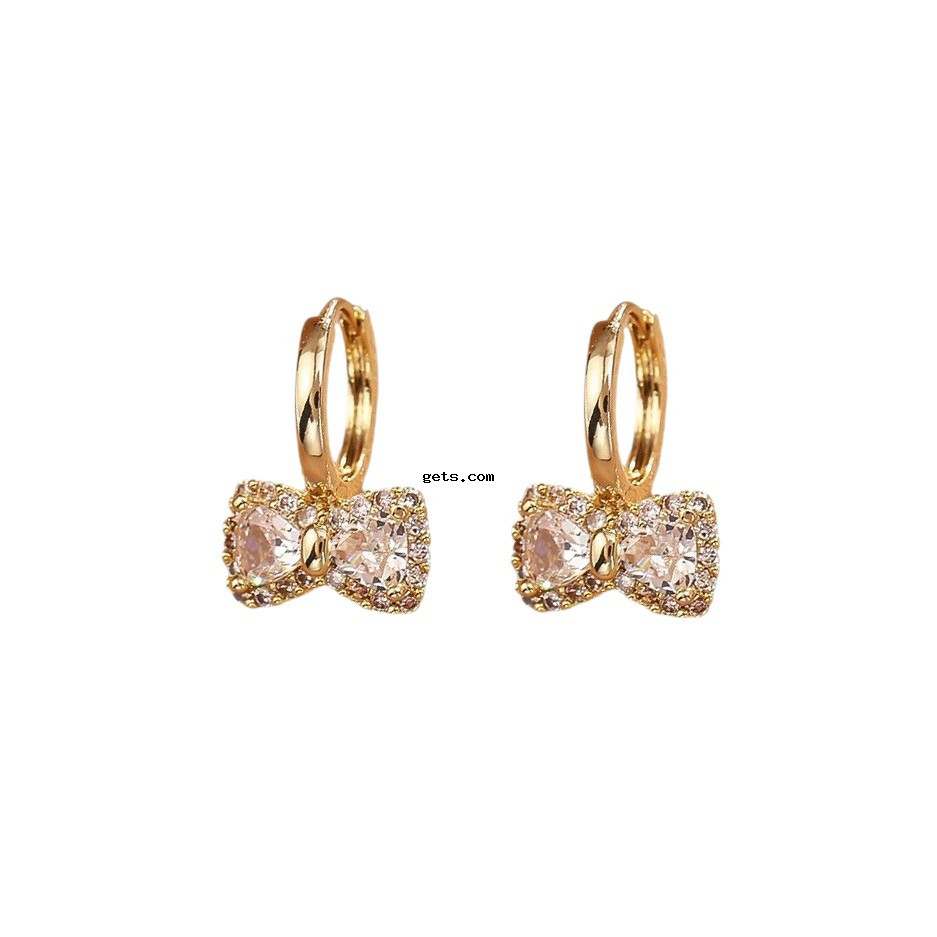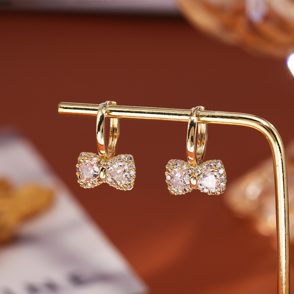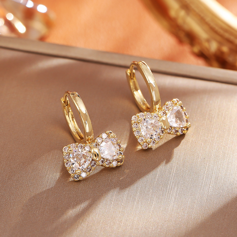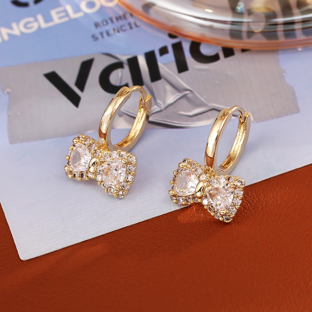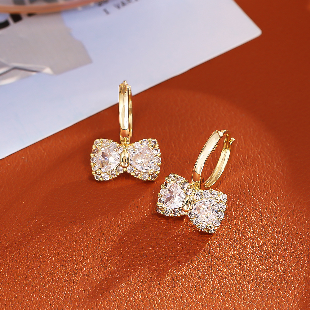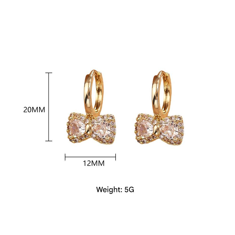Boucles d'oreilles en laiton zircon cubique pavent, Noeud papillon, Plaqué d'or, bijoux de mode & pavé de micro zircon & pour femme, Vendu par paire