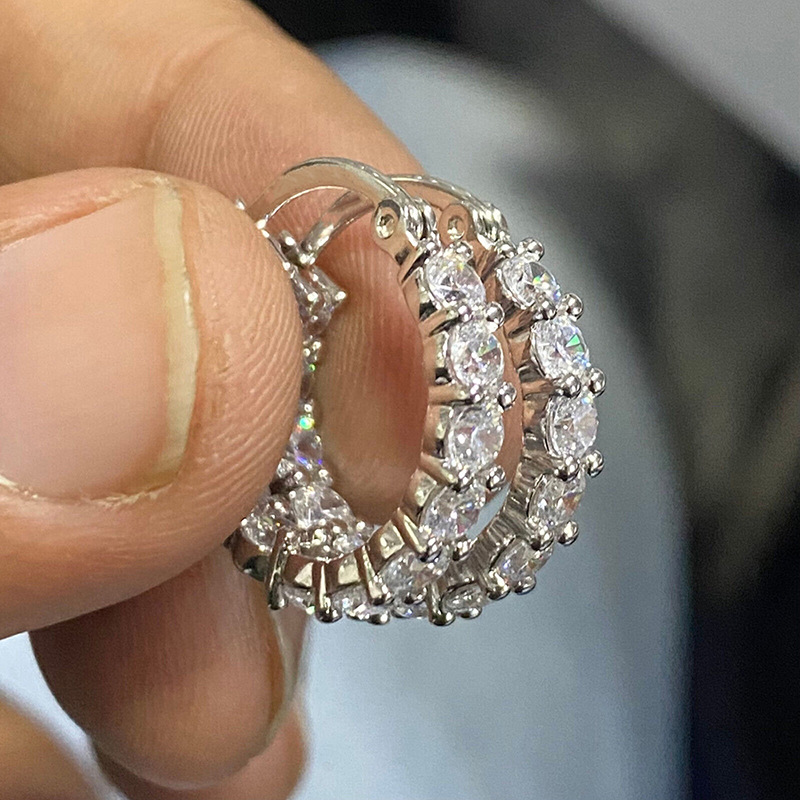 Boucles d'oreilles en laiton zircon cubique pavent, Motif géométrique, Plaqué de platine