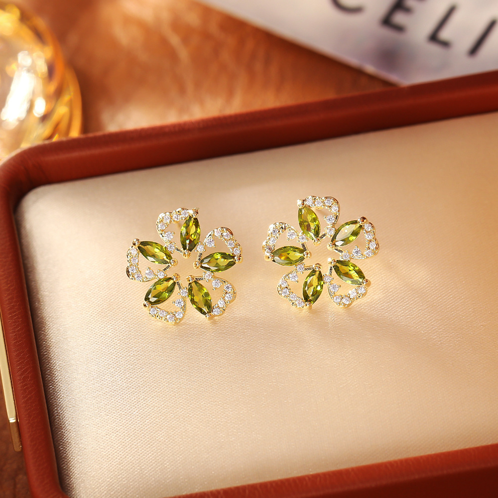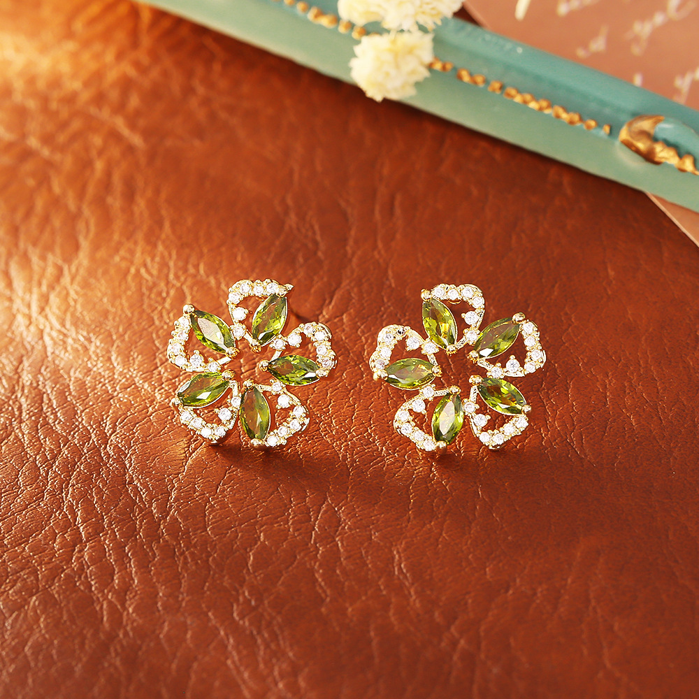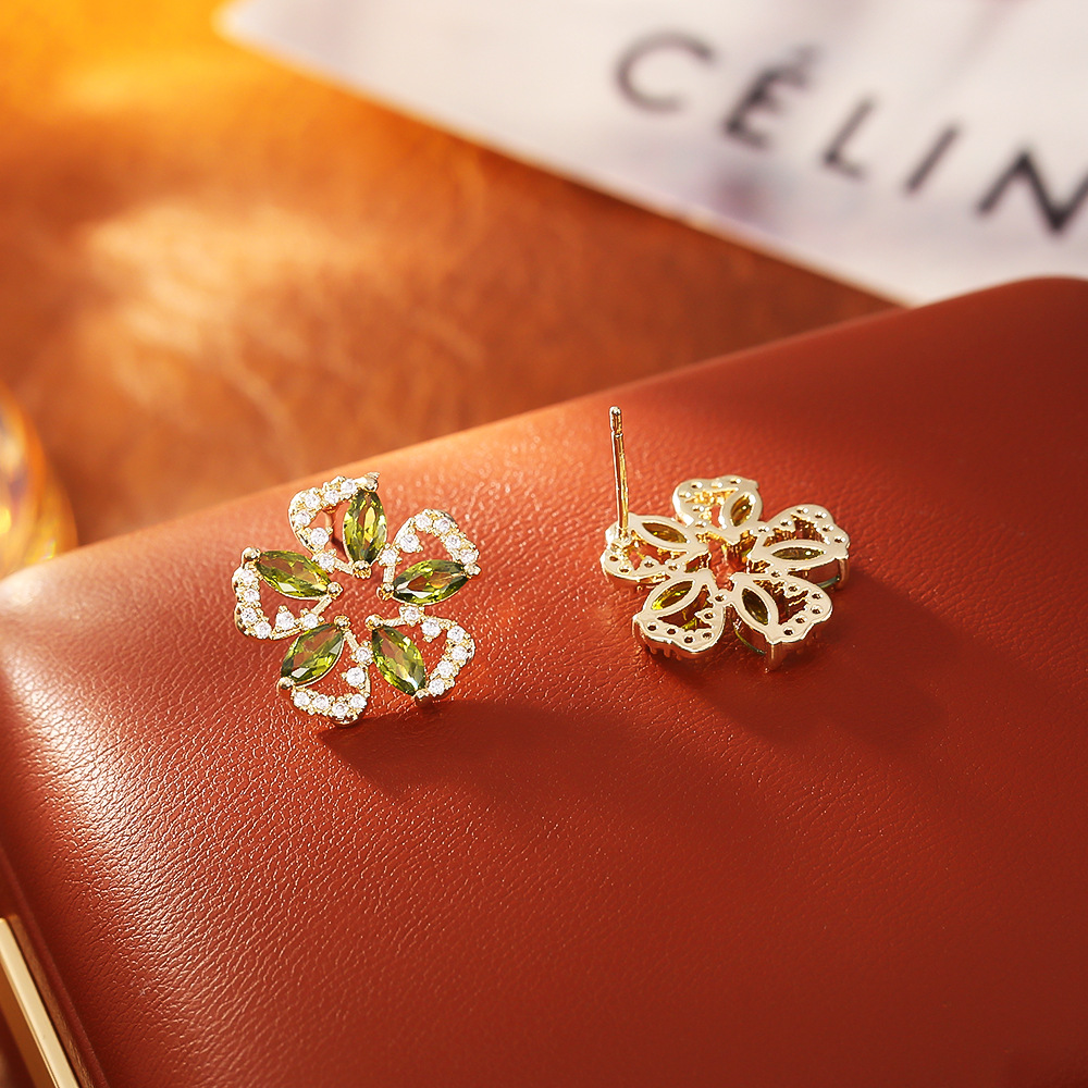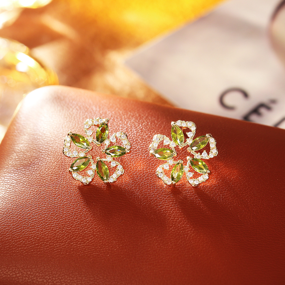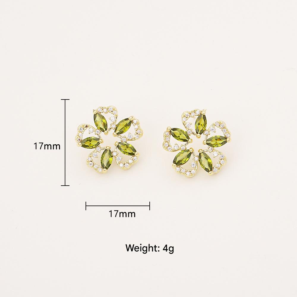 Boucles d'oreilles en laiton zircon cubique pavent, fleur, Plaqué d'or, pavé de micro zircon & pour femme & creux, Vendu par paire