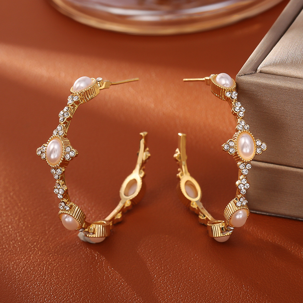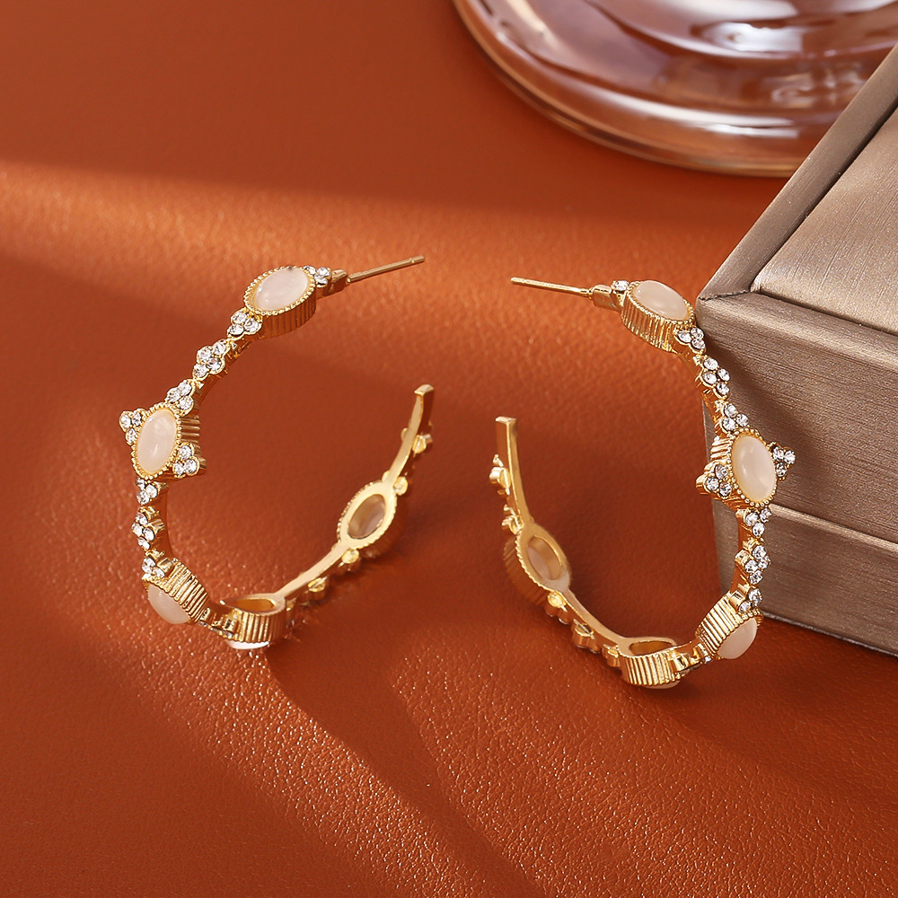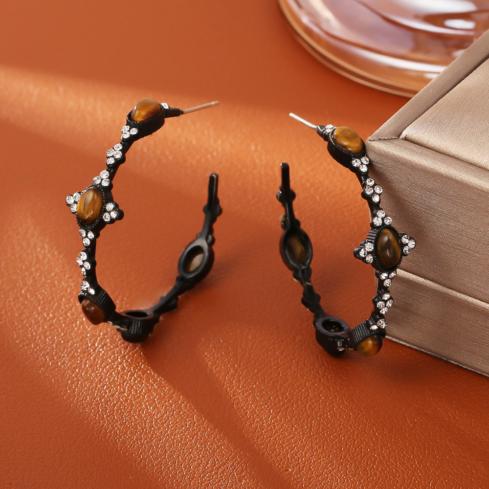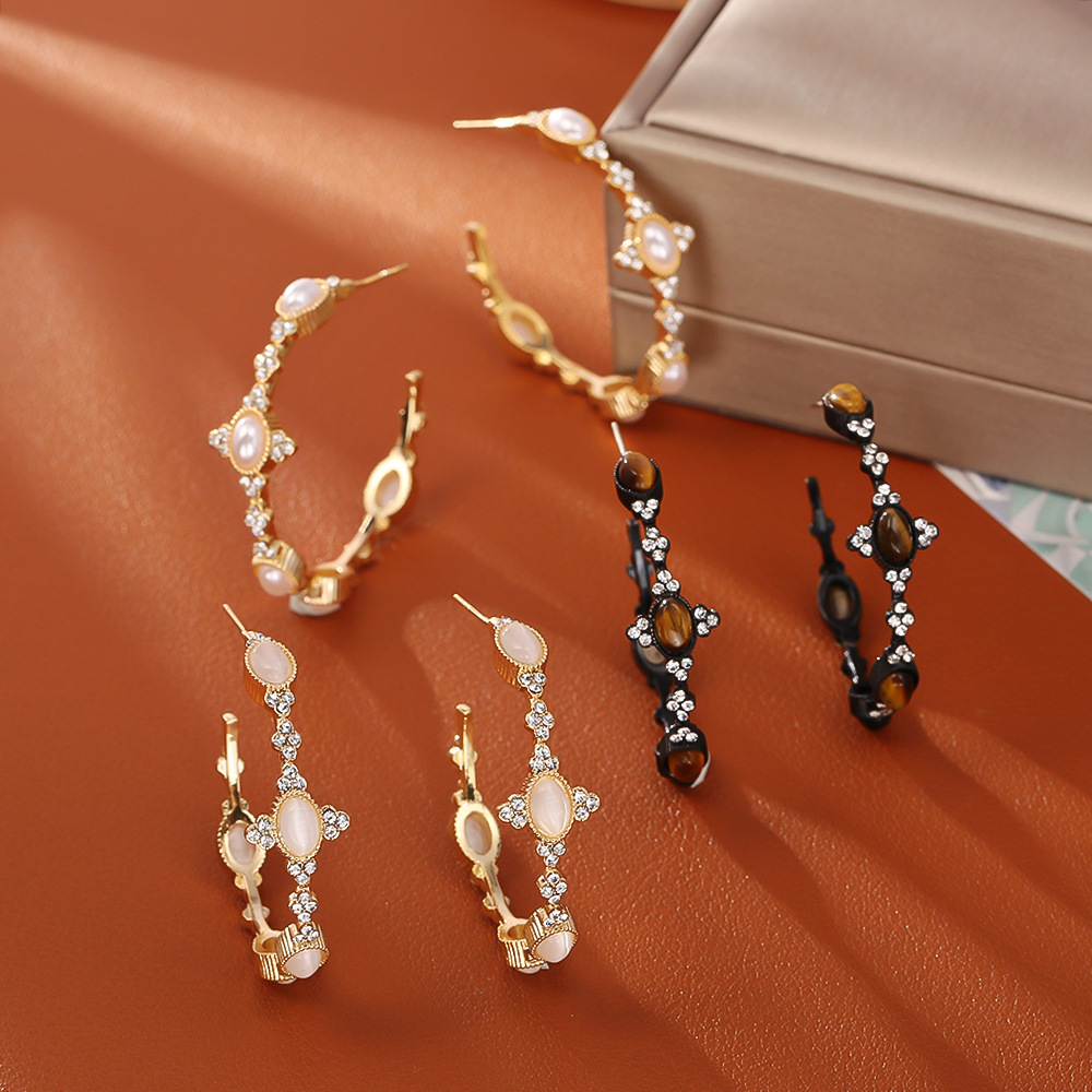 Cat's eye stone large ear ringsTiger's eye stone large ear ringPearl large ear rings