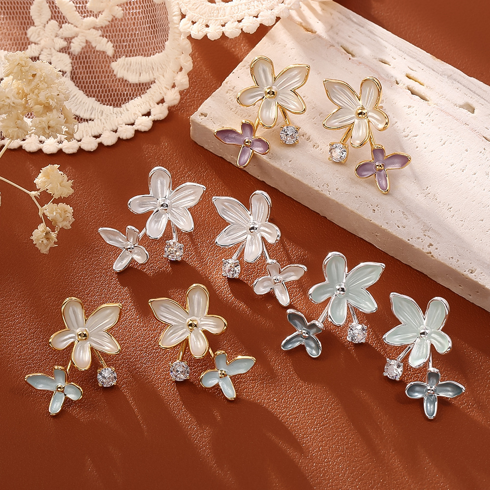 Gold white and purple flower earringsSilver white gray flower earringsSilver white flower earringsGolden white and blue flower earrings
