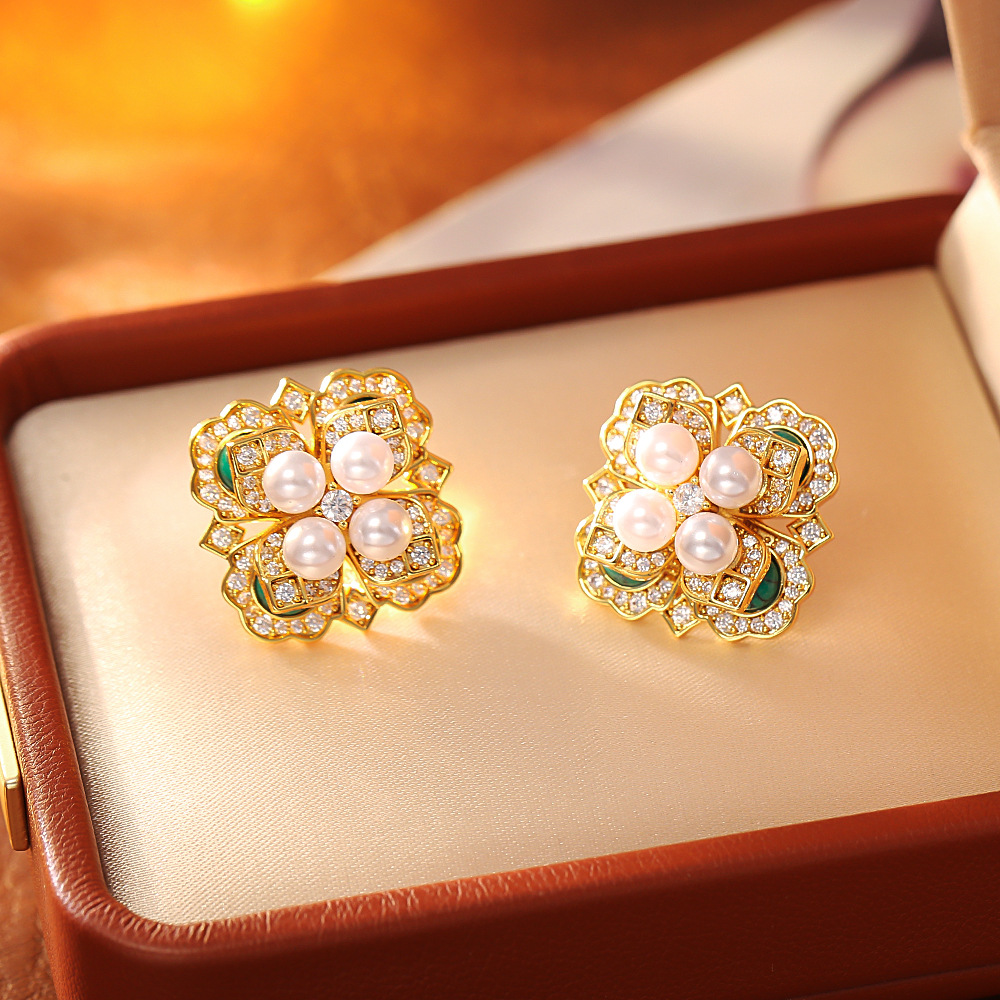 Boucles d'oreilles en laiton zircon cubique pavent, Placage, bijoux de mode & pavé de micro zircon & pour femme