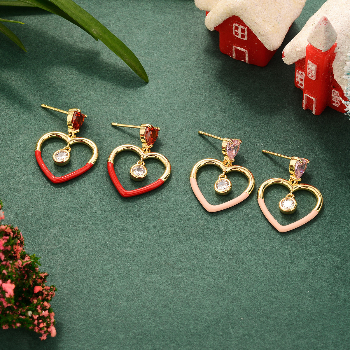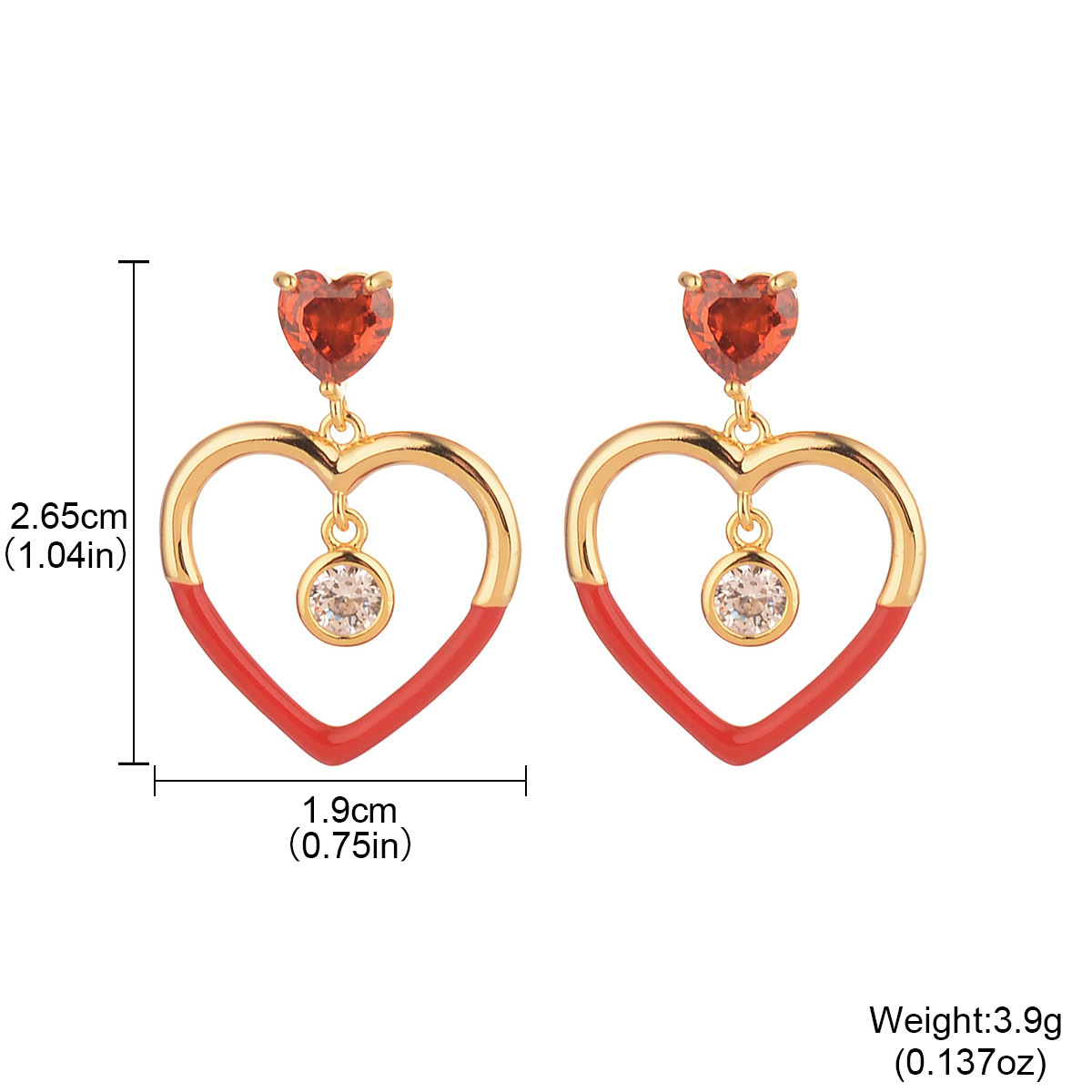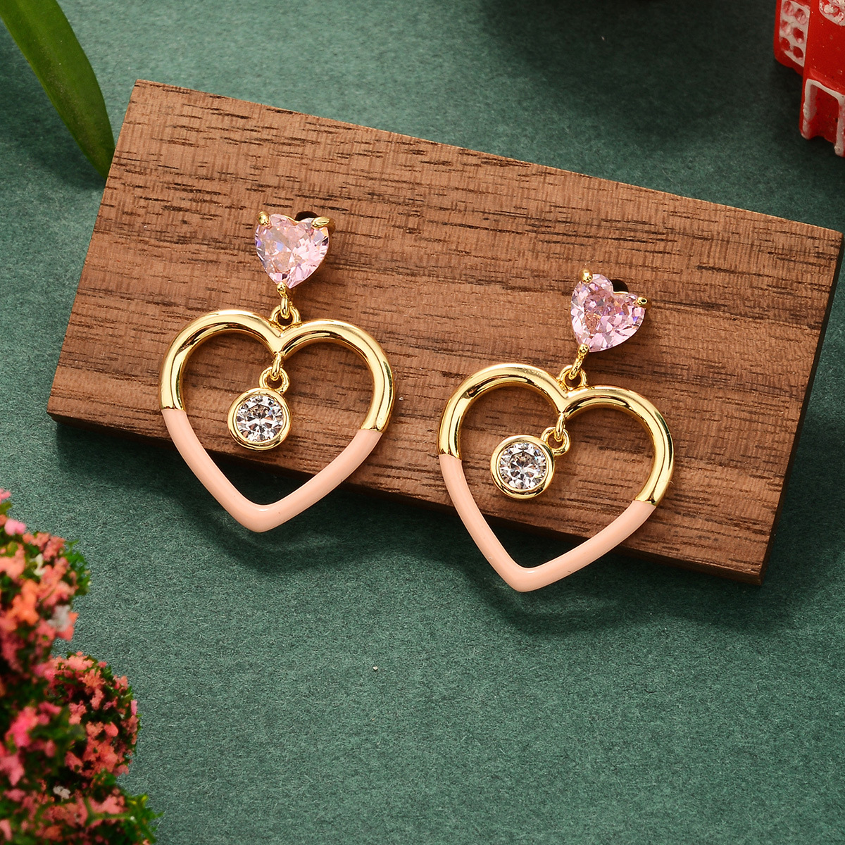 - Boucles d'oreilles en laiton zircon cubique pavent, coeur, Placage de couleur platine