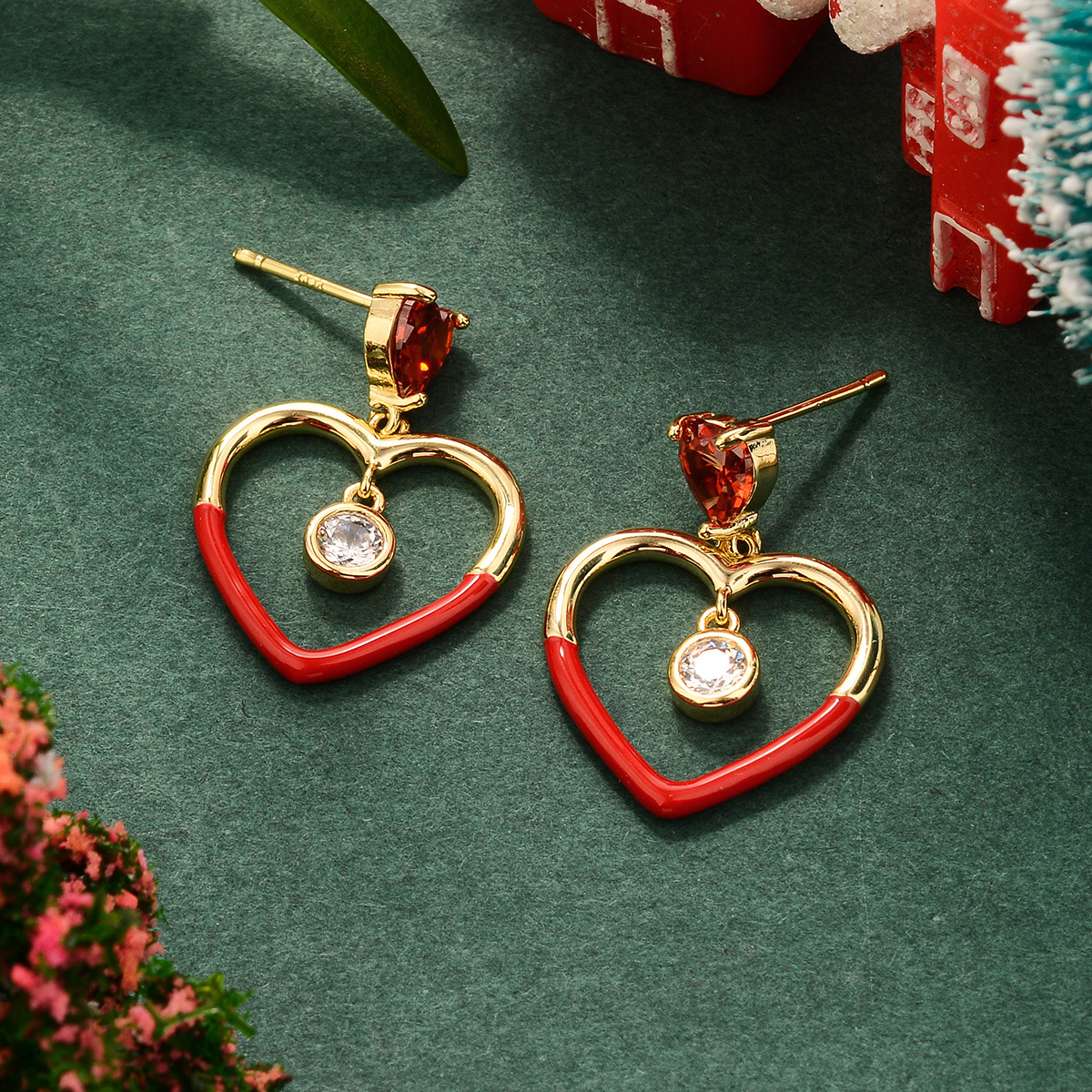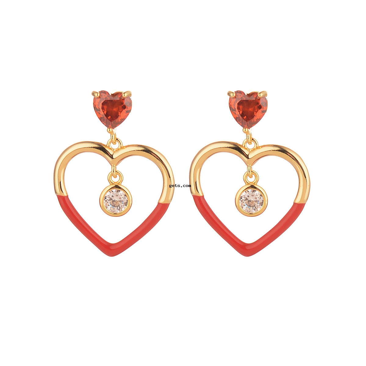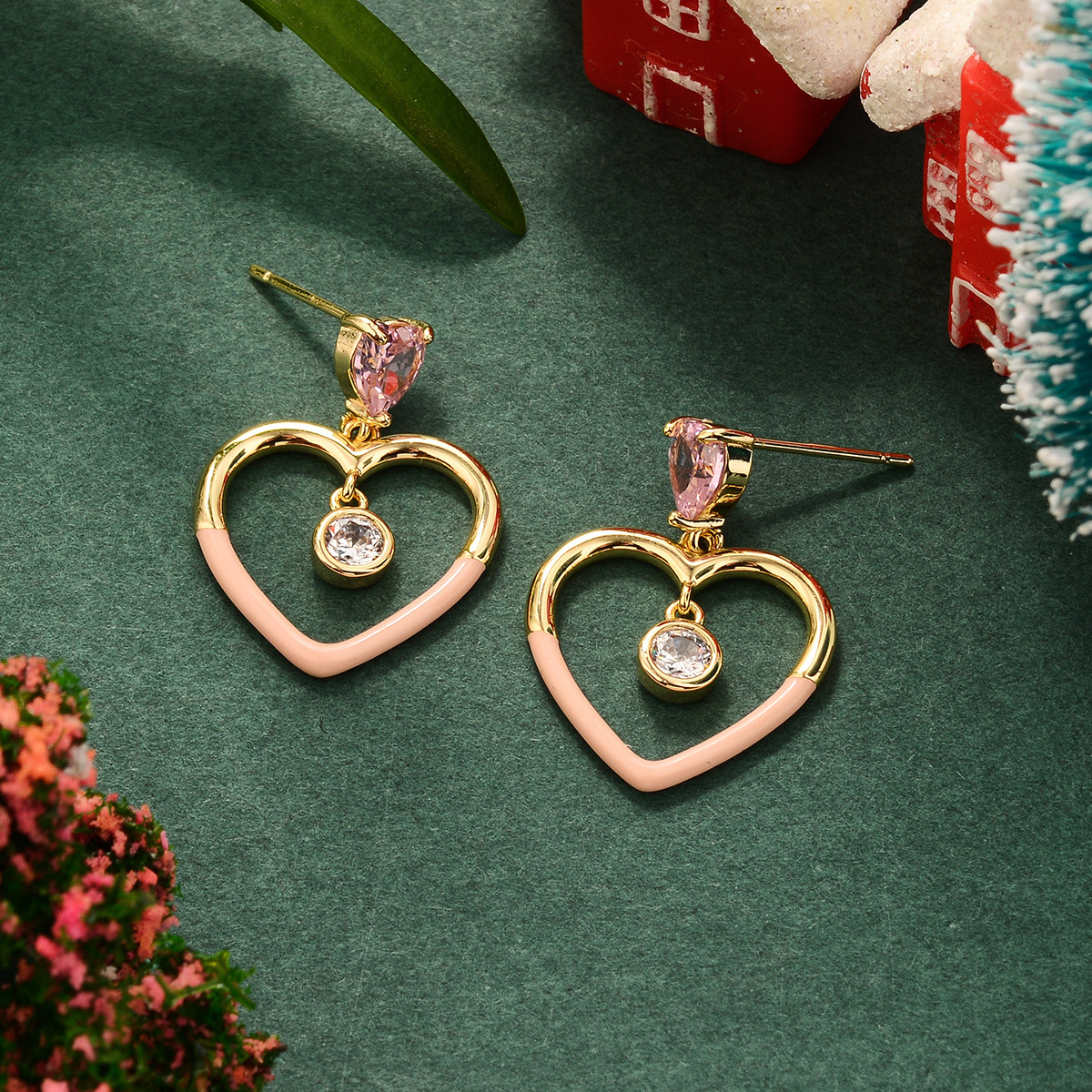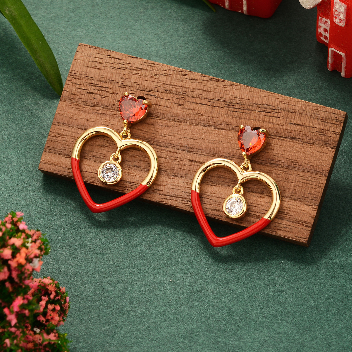 - Boucles d'oreilles en laiton zircon cubique pavent, coeur, Placage de couleur platine