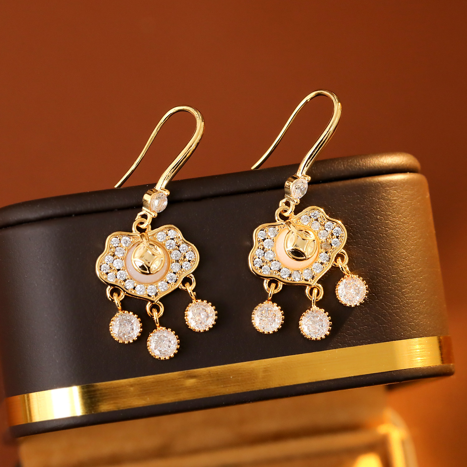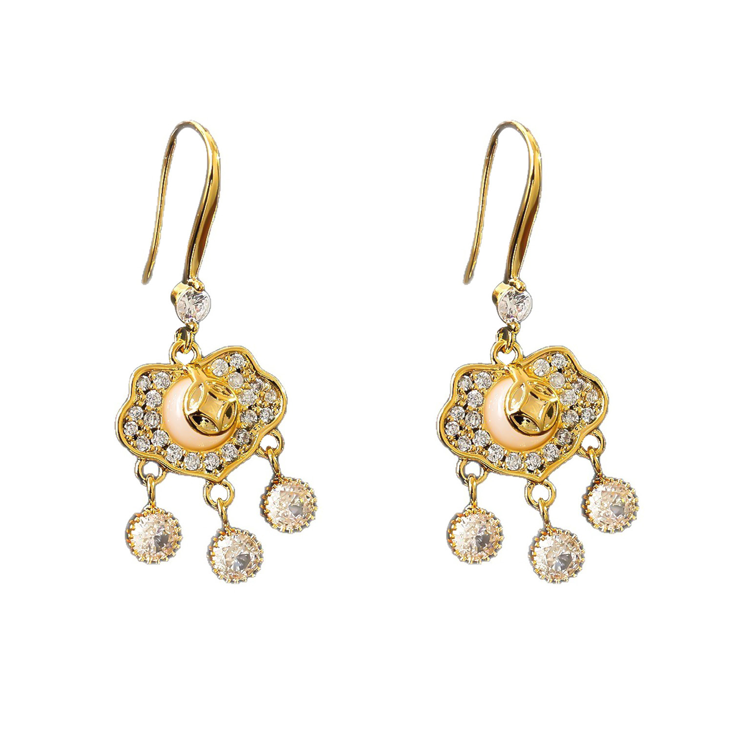 Boucles d'oreilles en laiton zircon cubique pavent, Placage de couleur d'or, pavé de micro zircon & pour femme