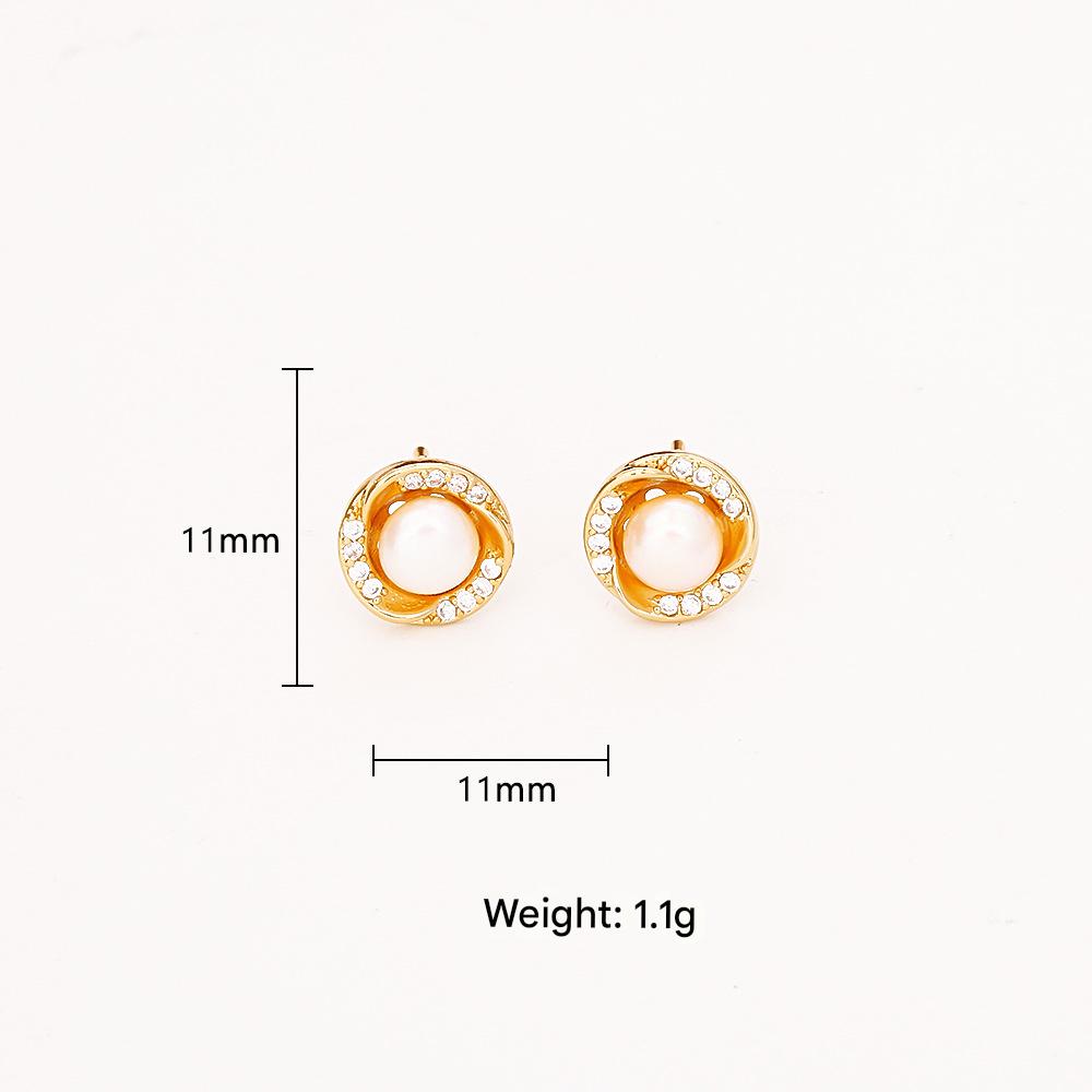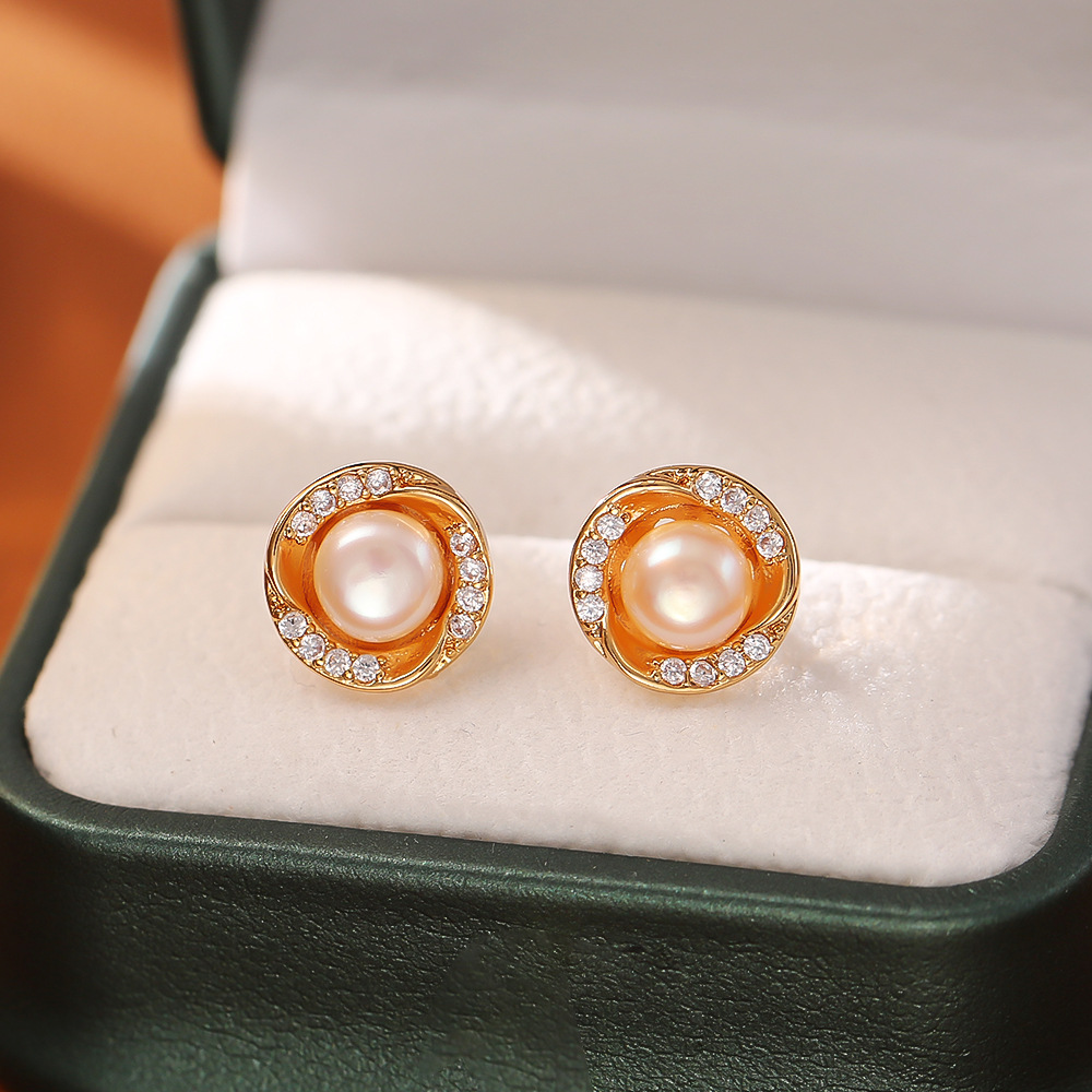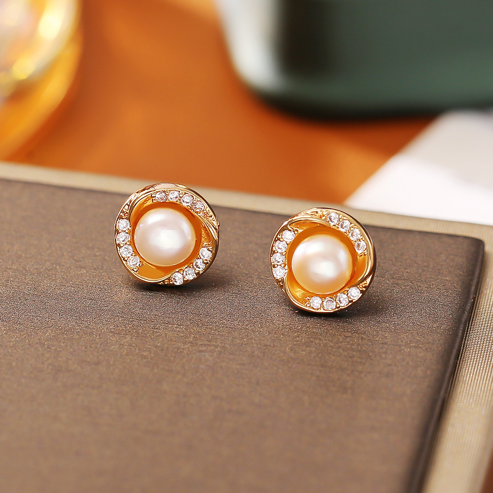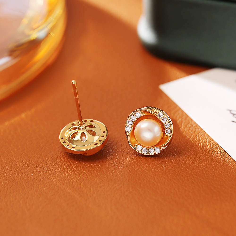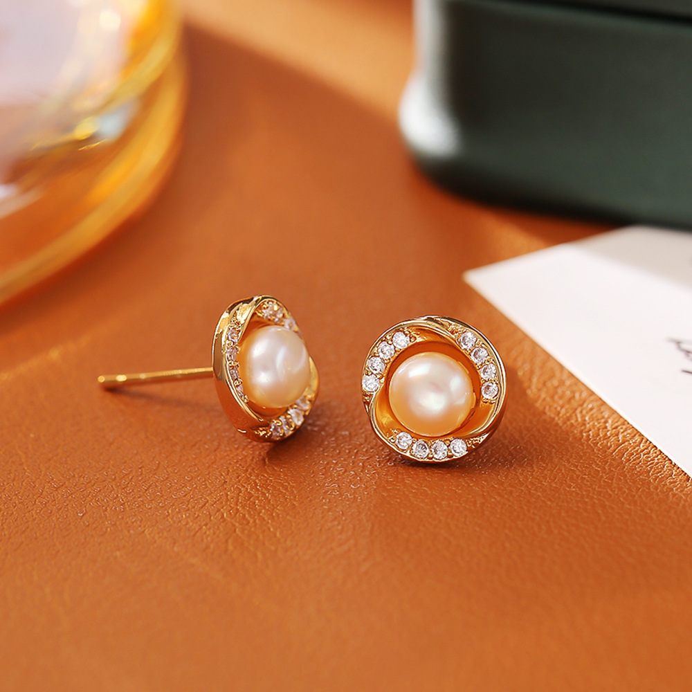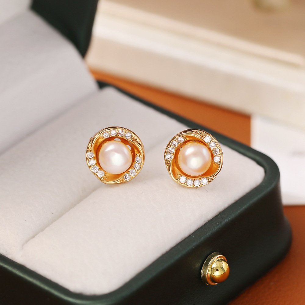 Boucles d'oreilles en laiton zircon cubique pavent, avec perle d'eau douce cultivée, Plaqué d'or, bijoux de mode & pavé de micro zircon & pour femme, Vendu par paire