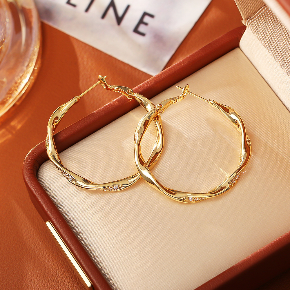 - Boucles d'oreilles en laiton zircon cubique pavent, Placage de couleur d'or, bijoux de mode & normes différentes pour le choix & pavé de micro zircon & pour femme