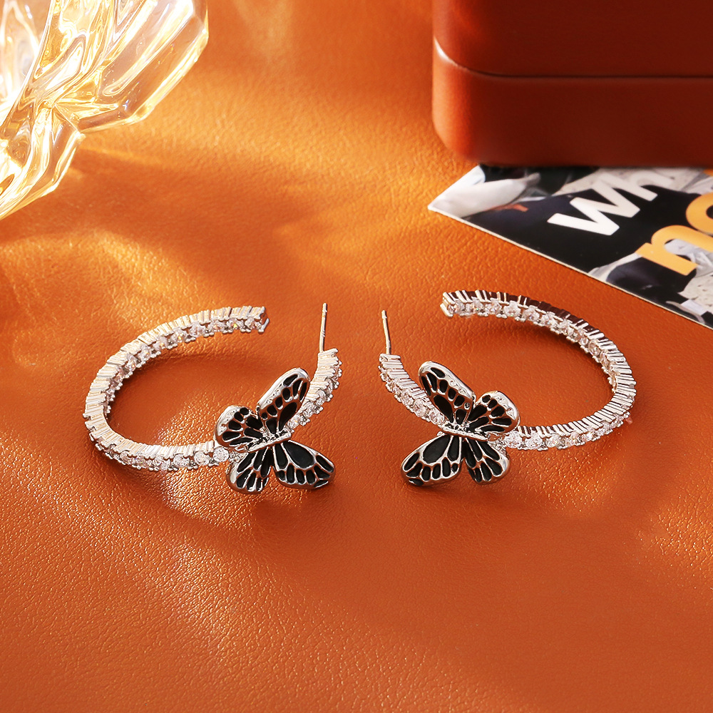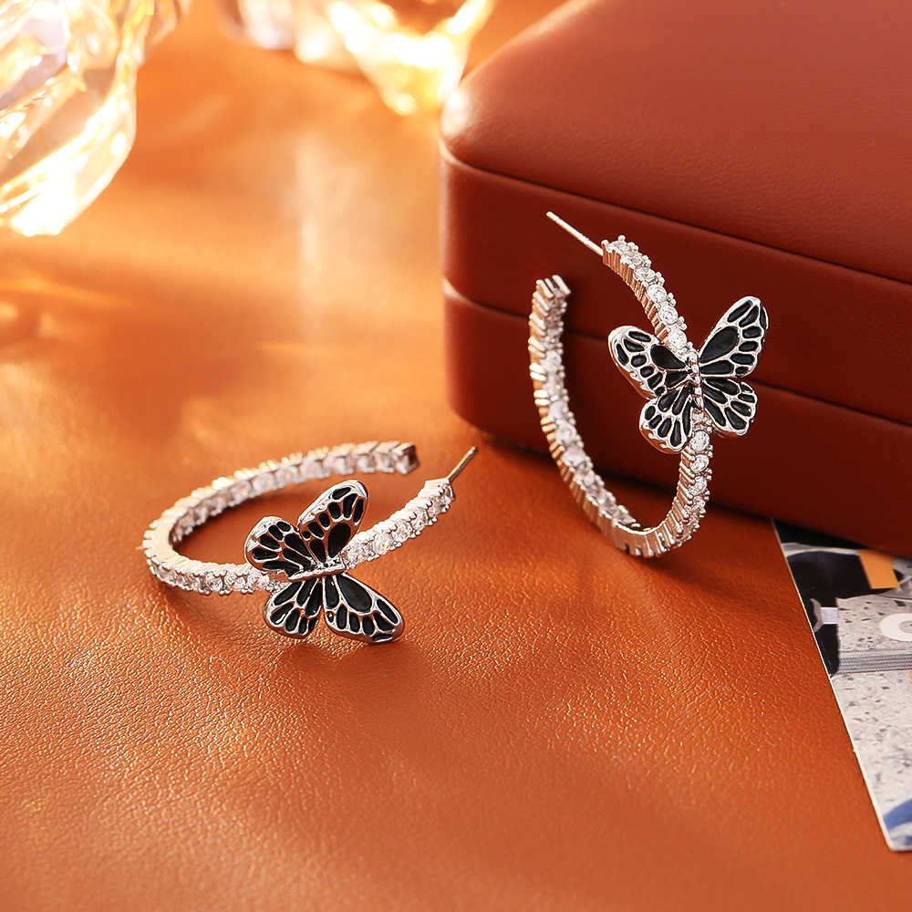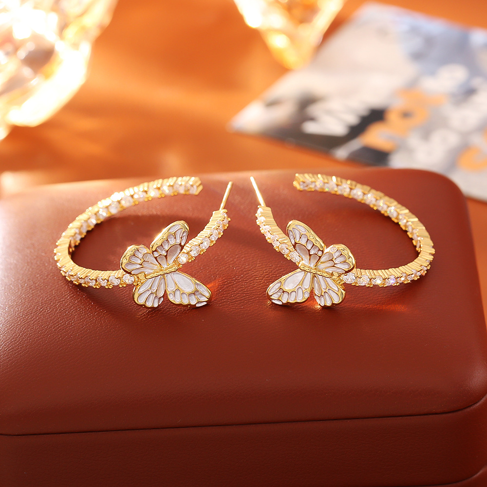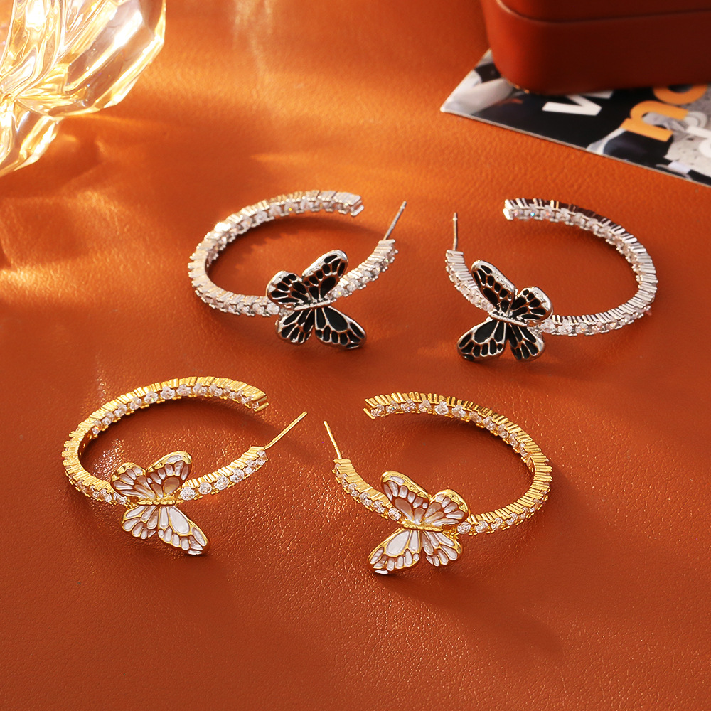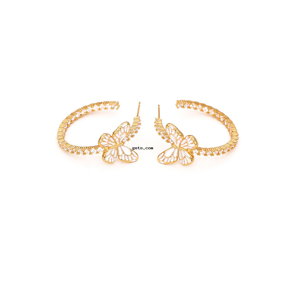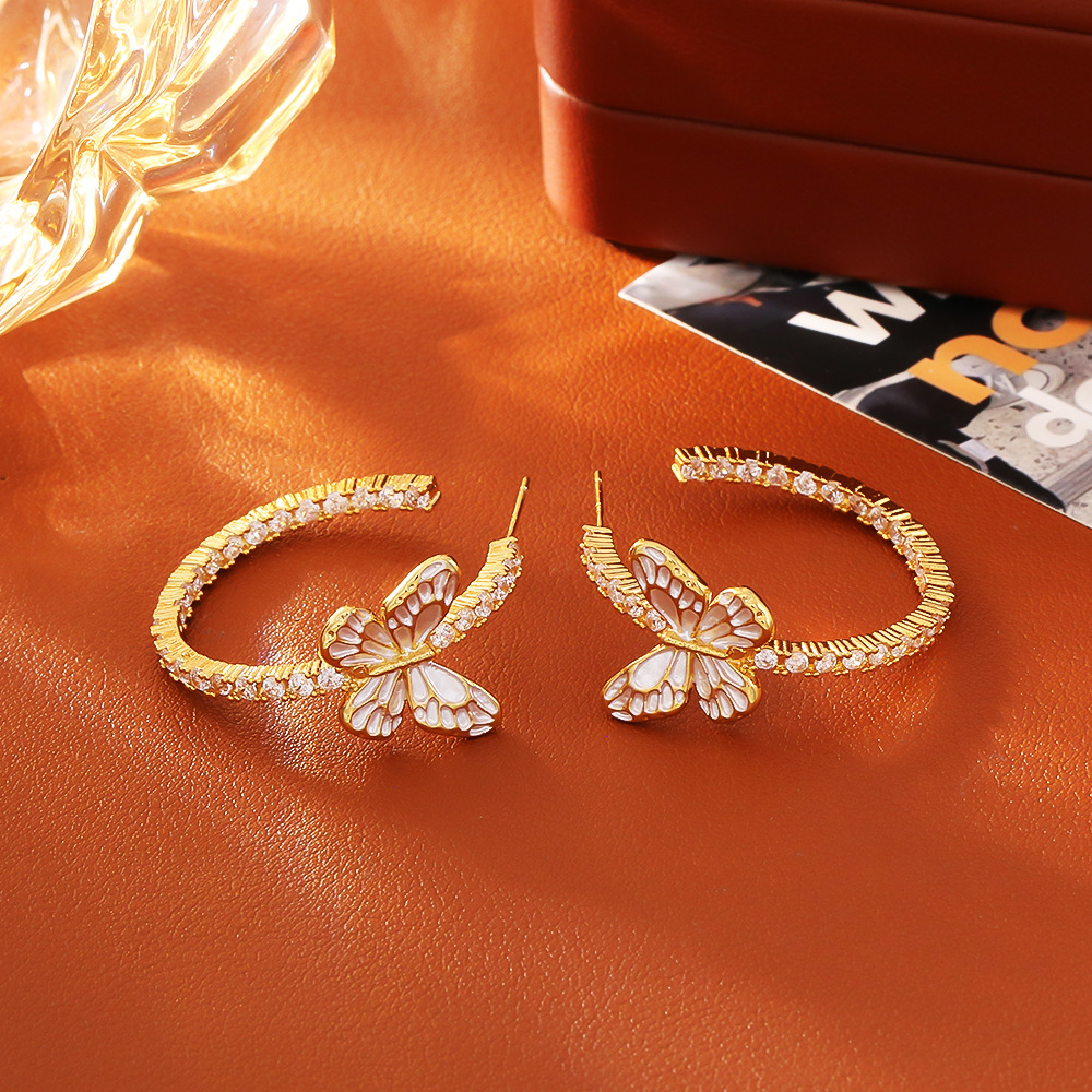 Boucles d'oreilles en laiton zircon cubique pavent, papillon, Placage, pavé de micro zircon & pour femme & émail, plus de couleurs à choisir, Vendu par paire