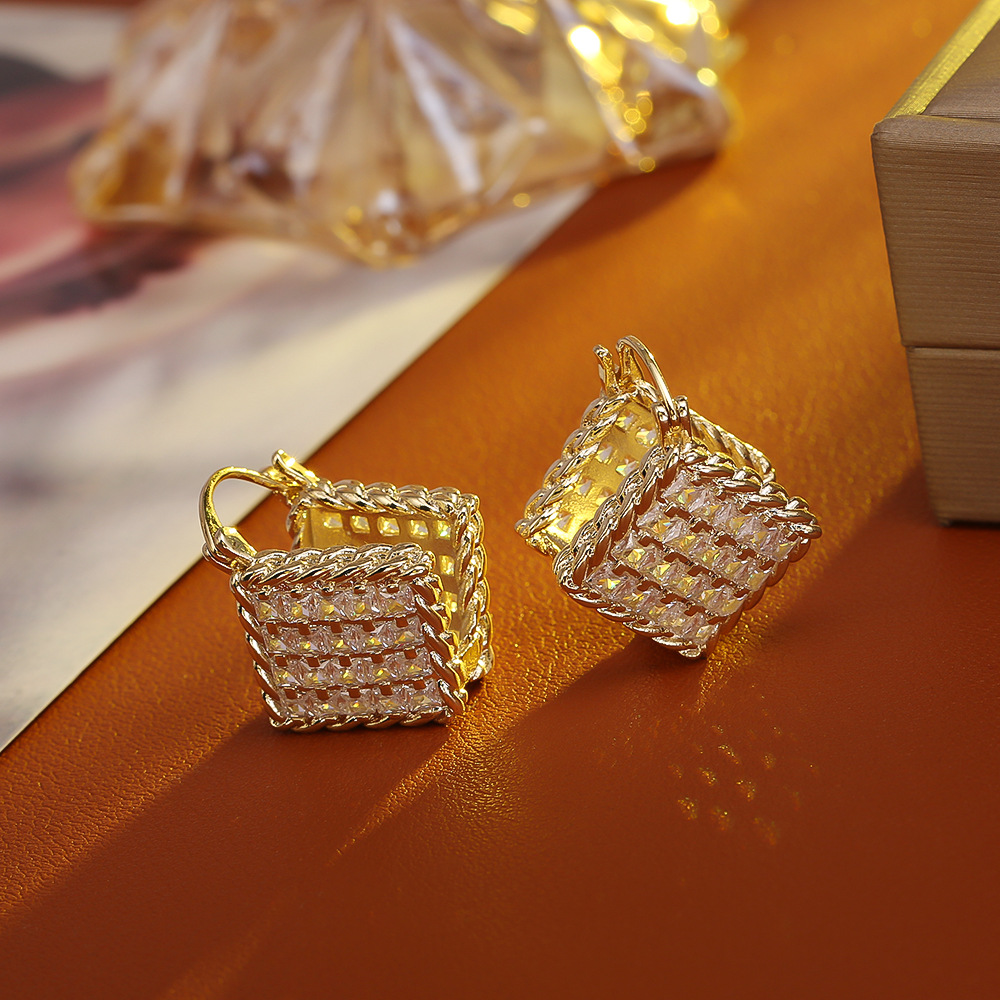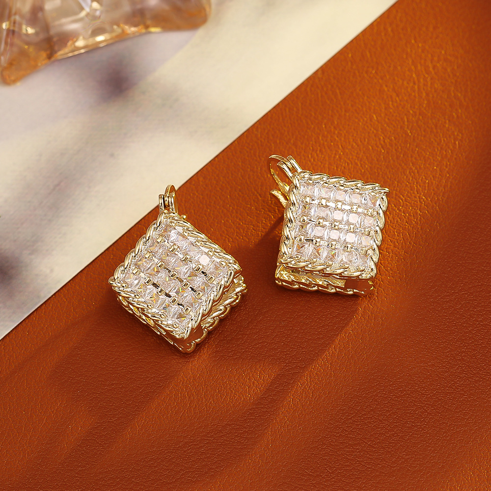 Boucles d'oreilles en laiton zircon cubique pavent, cadre, Plaqué d'or, bijoux de mode & pavé de micro zircon & pour femme, Vendu par paire
