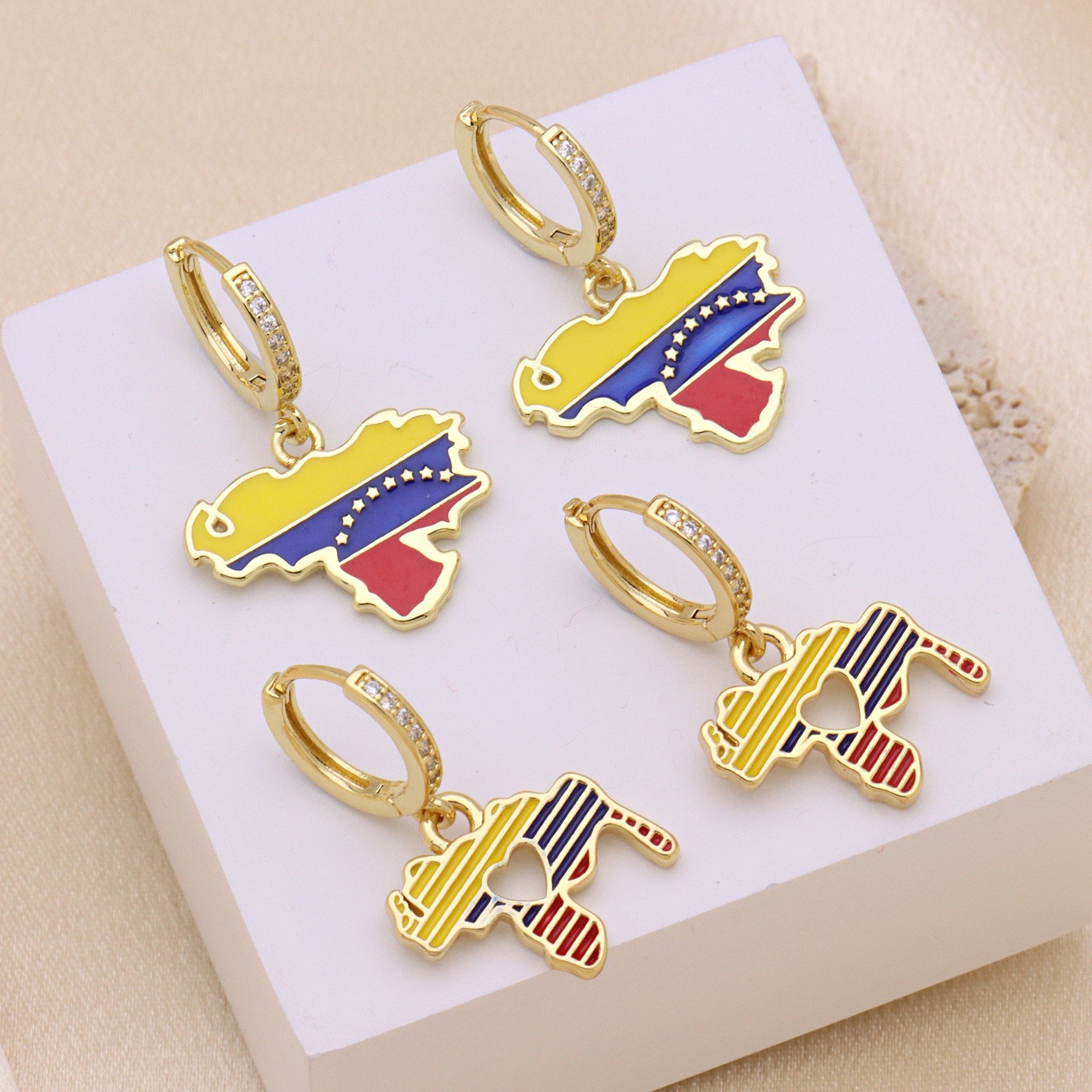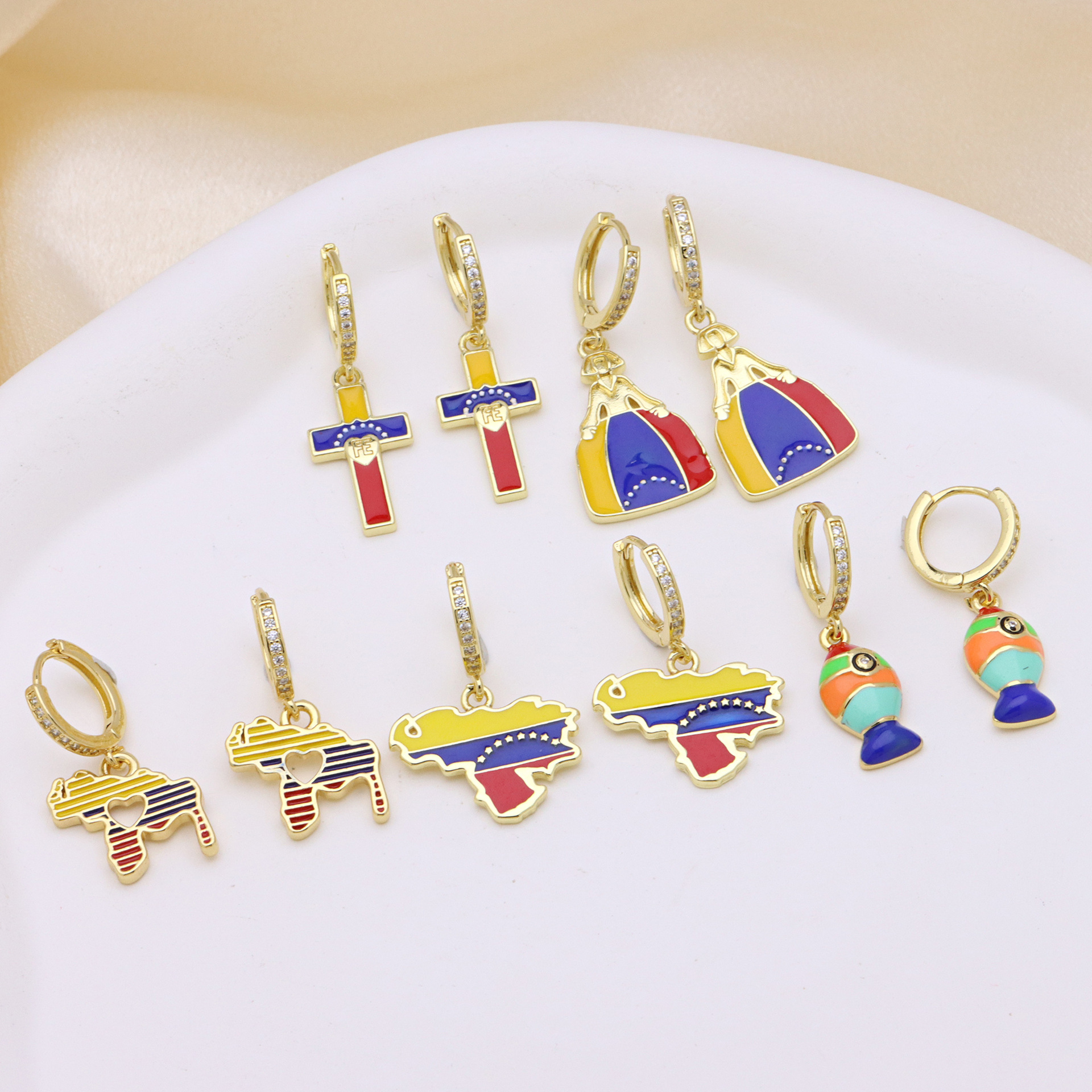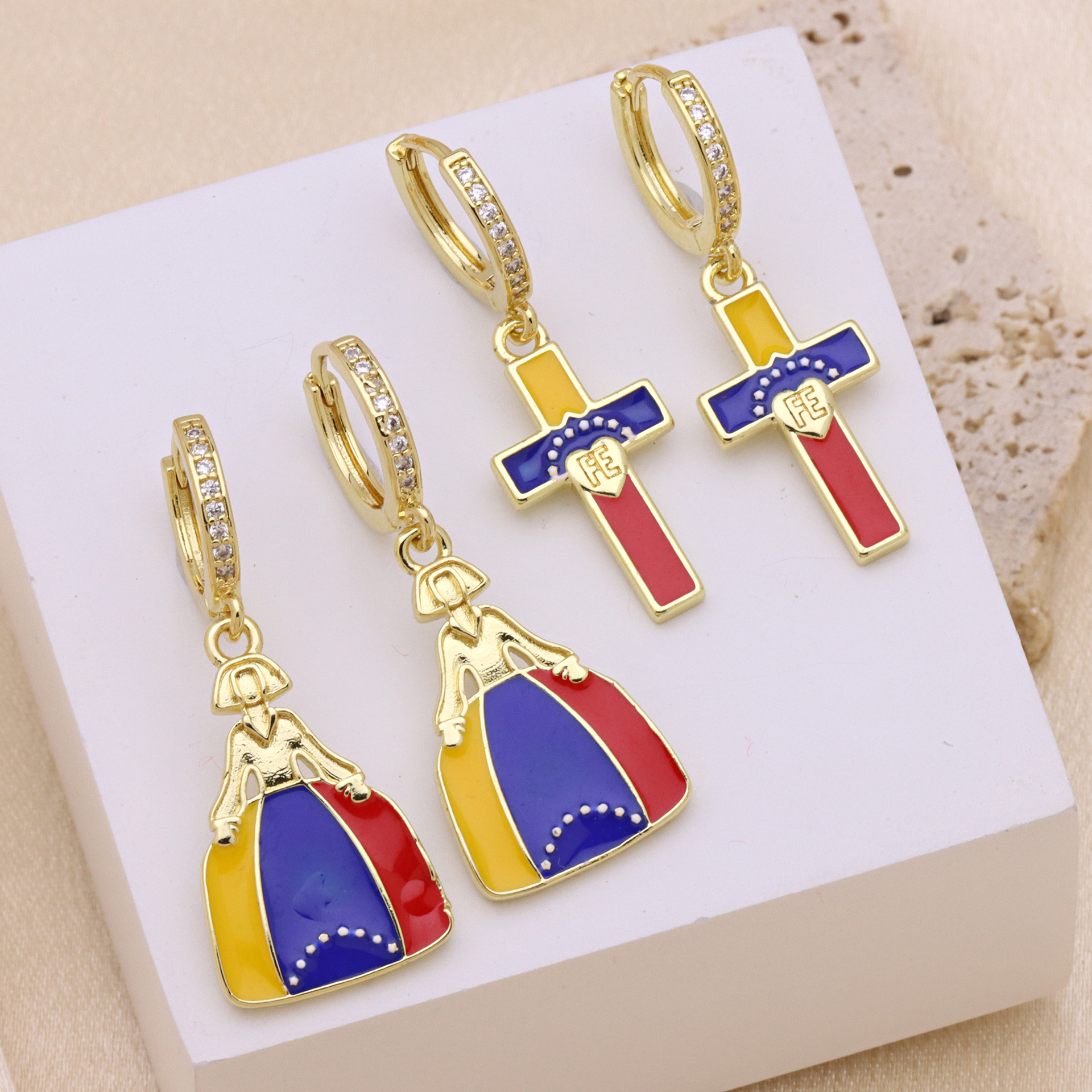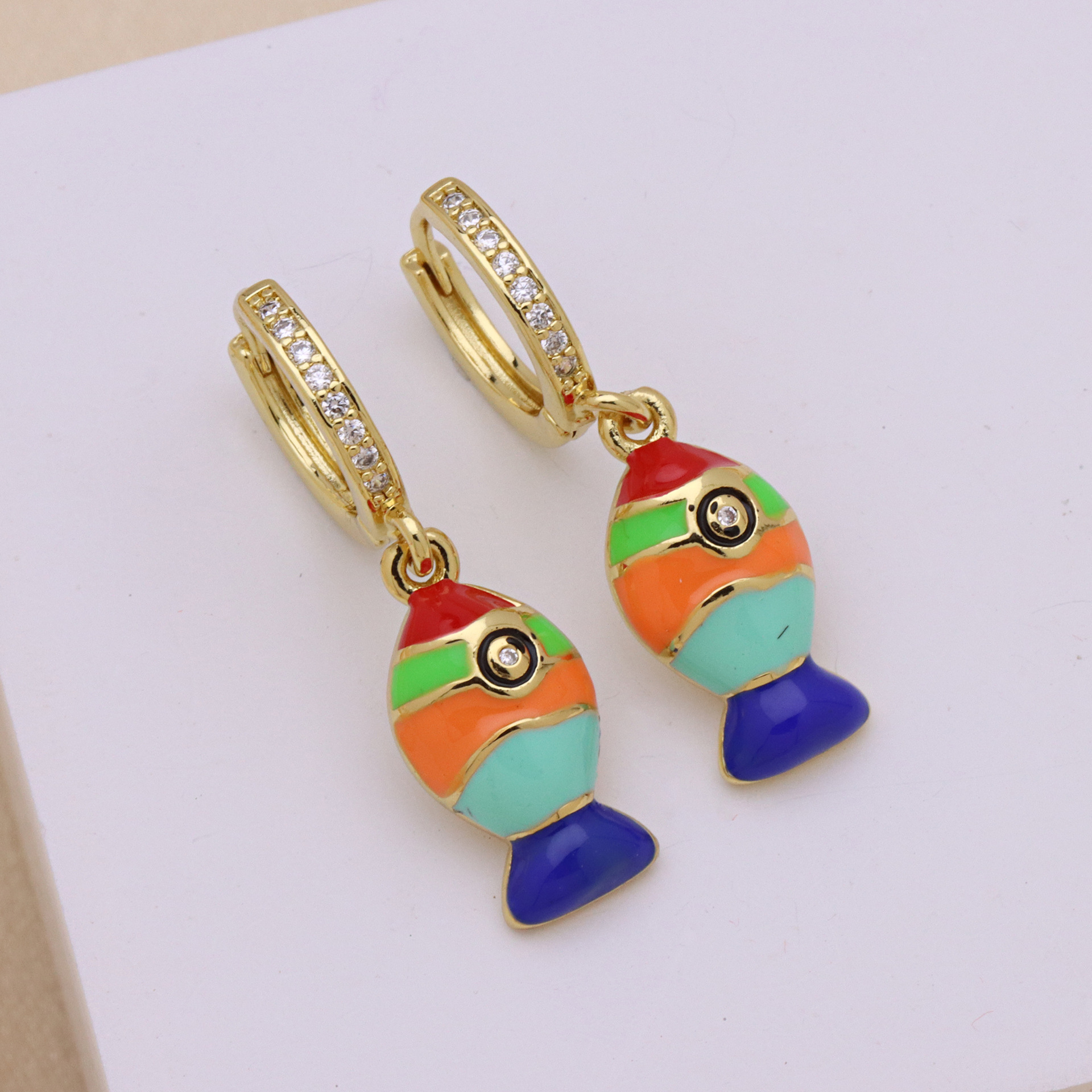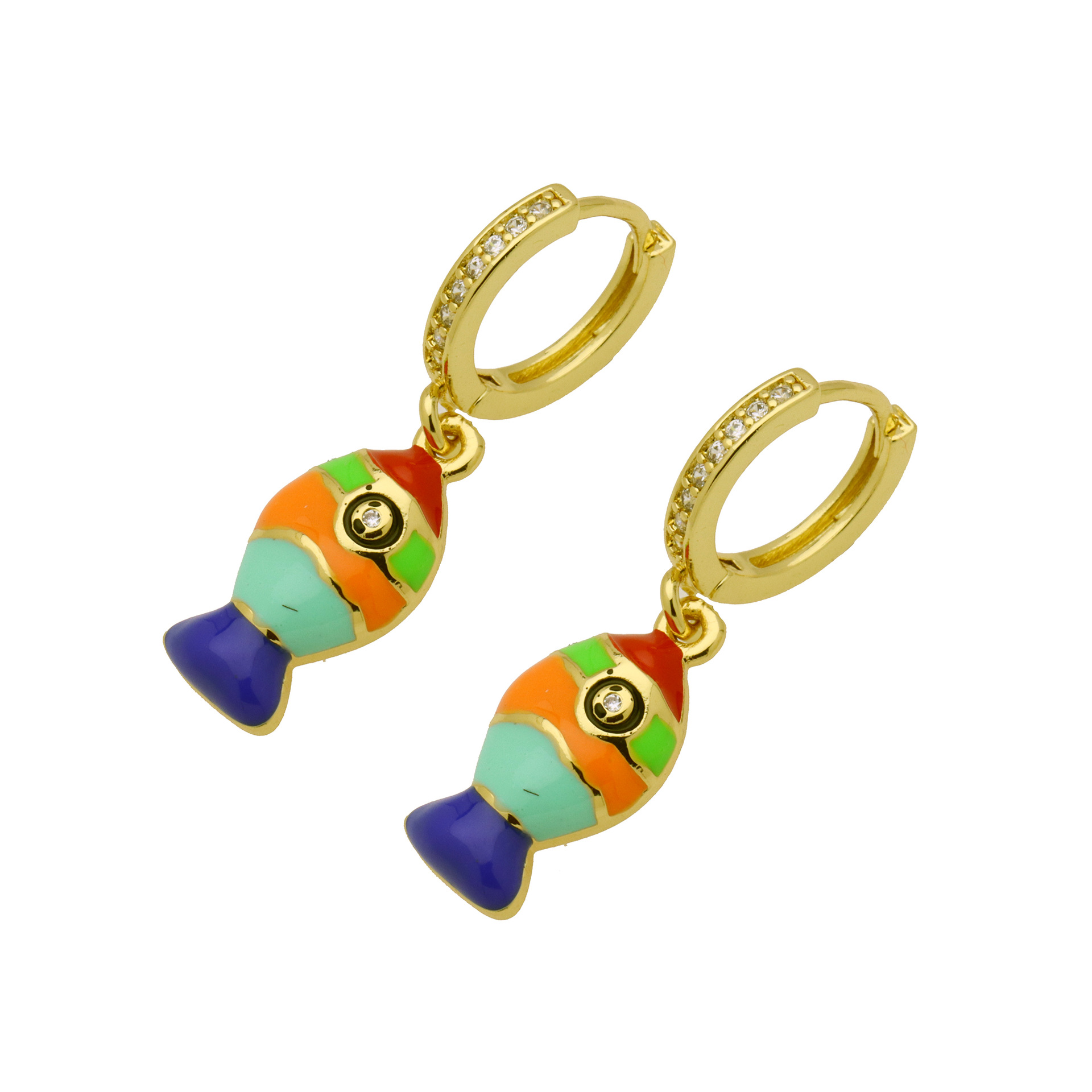 Boucles d'oreilles en laiton zircon cubique pavent, Placage de couleur d'or, styles différents pour le choix & pavé de micro zircon & pour femme & émail, plus de couleurs à choisir, Vendu par paire