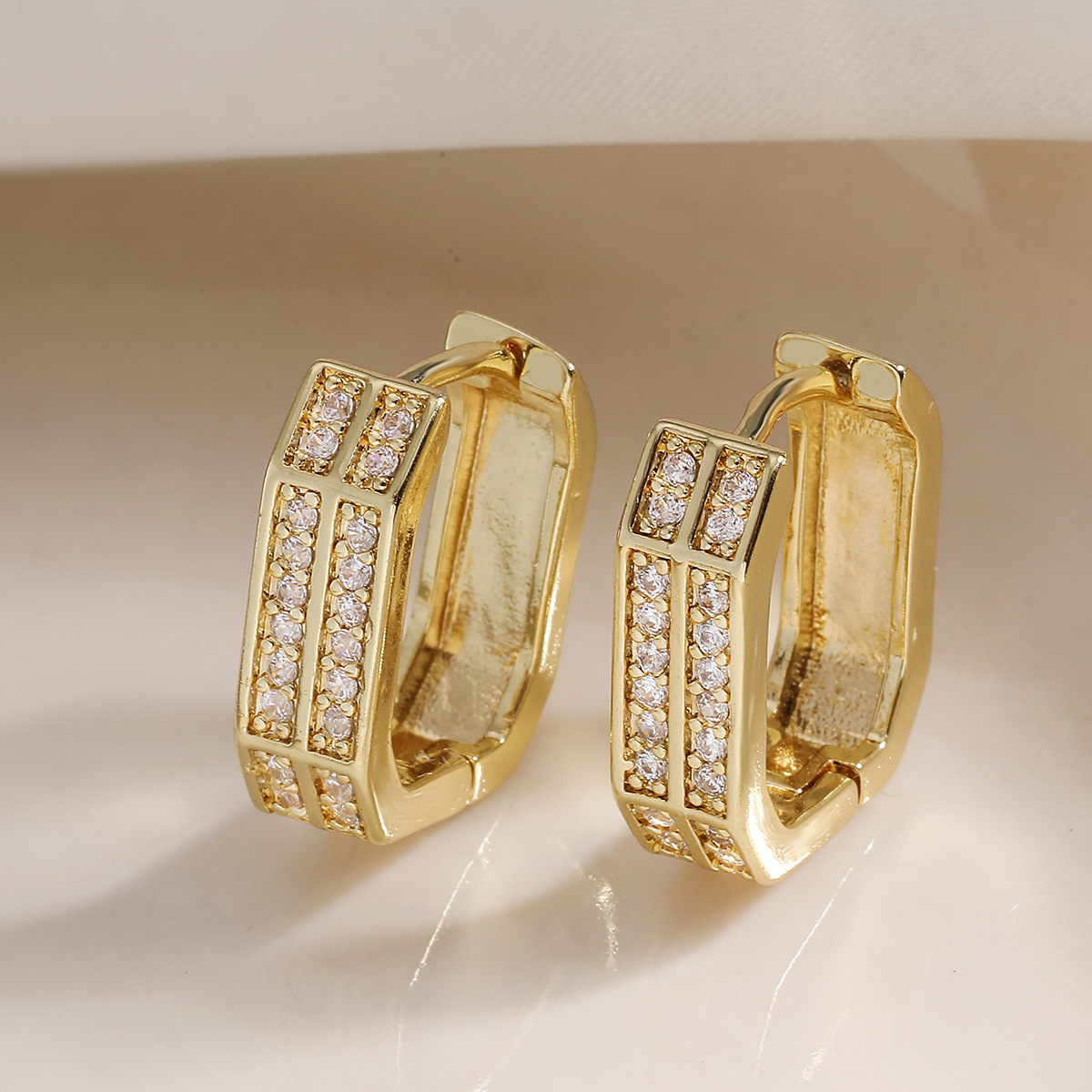 - Boucles d'oreilles en laiton zircon cubique pavent, Placage de couleur d'or, bijoux de mode & pavé de micro zircon & pour femme