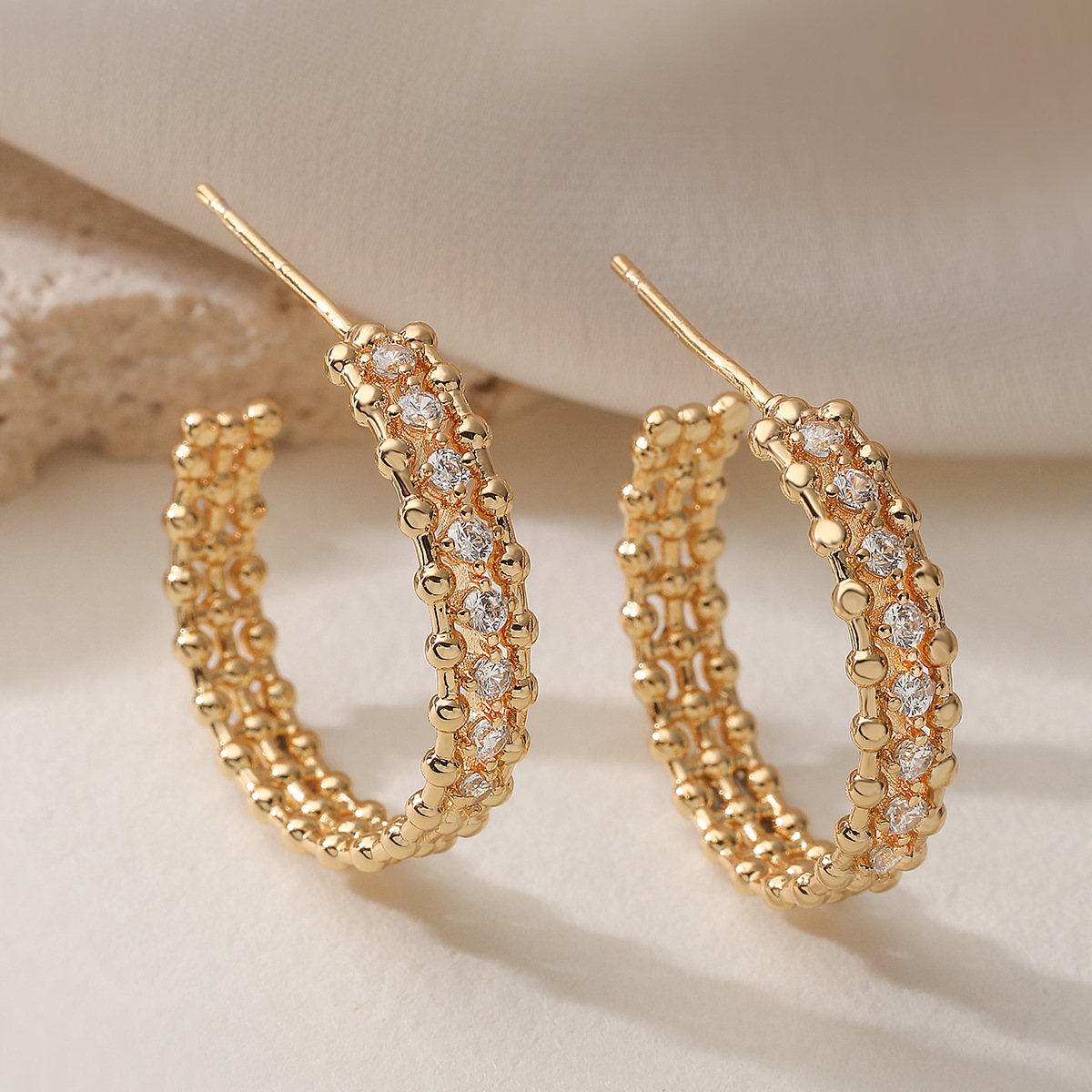 - Boucles d'oreilles en laiton zircon cubique pavent, Placage de couleur d'or, bijoux de mode & pavé de micro zircon & pour femme