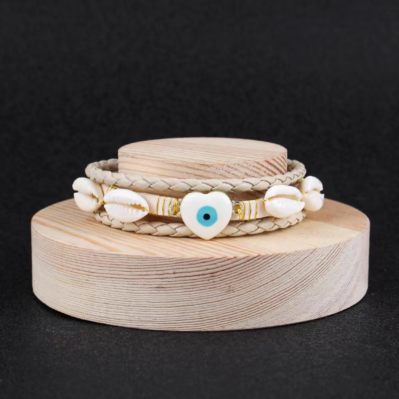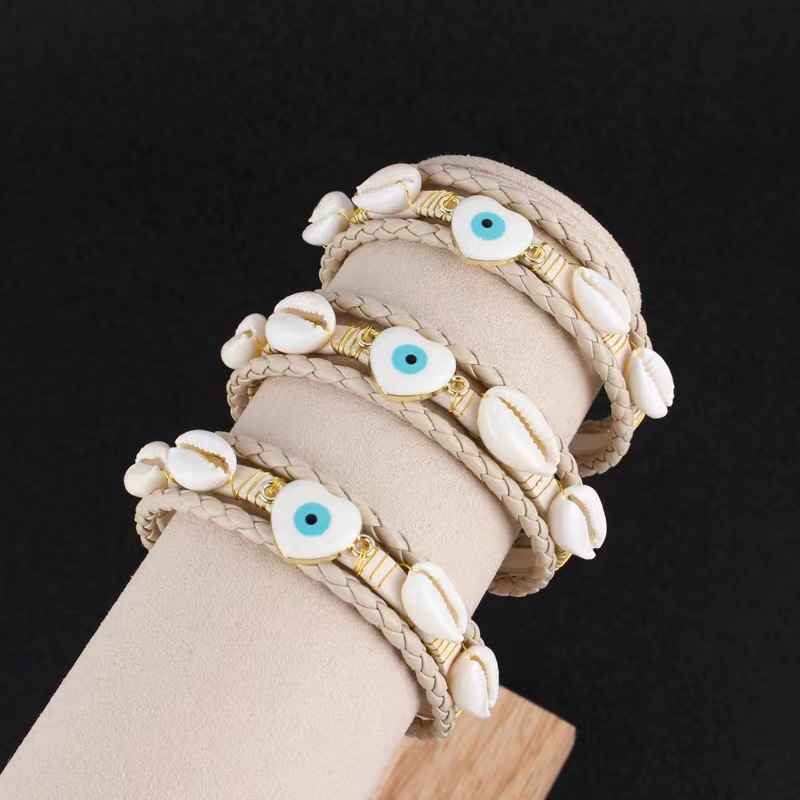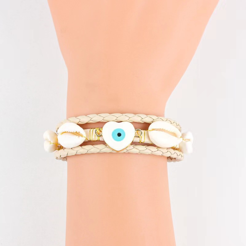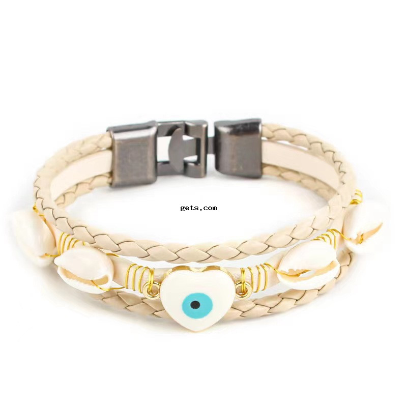 Bracelet Evil Eye bijoux, alliage de zinc, avec cuir PU & coquille & laiton, Placage, bijoux de mode, couleurs mélangées, Vendu par 21 cm brin