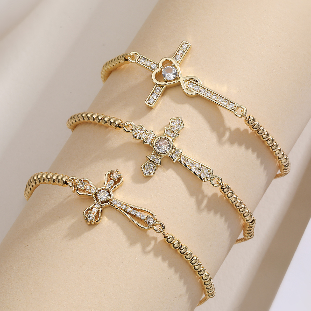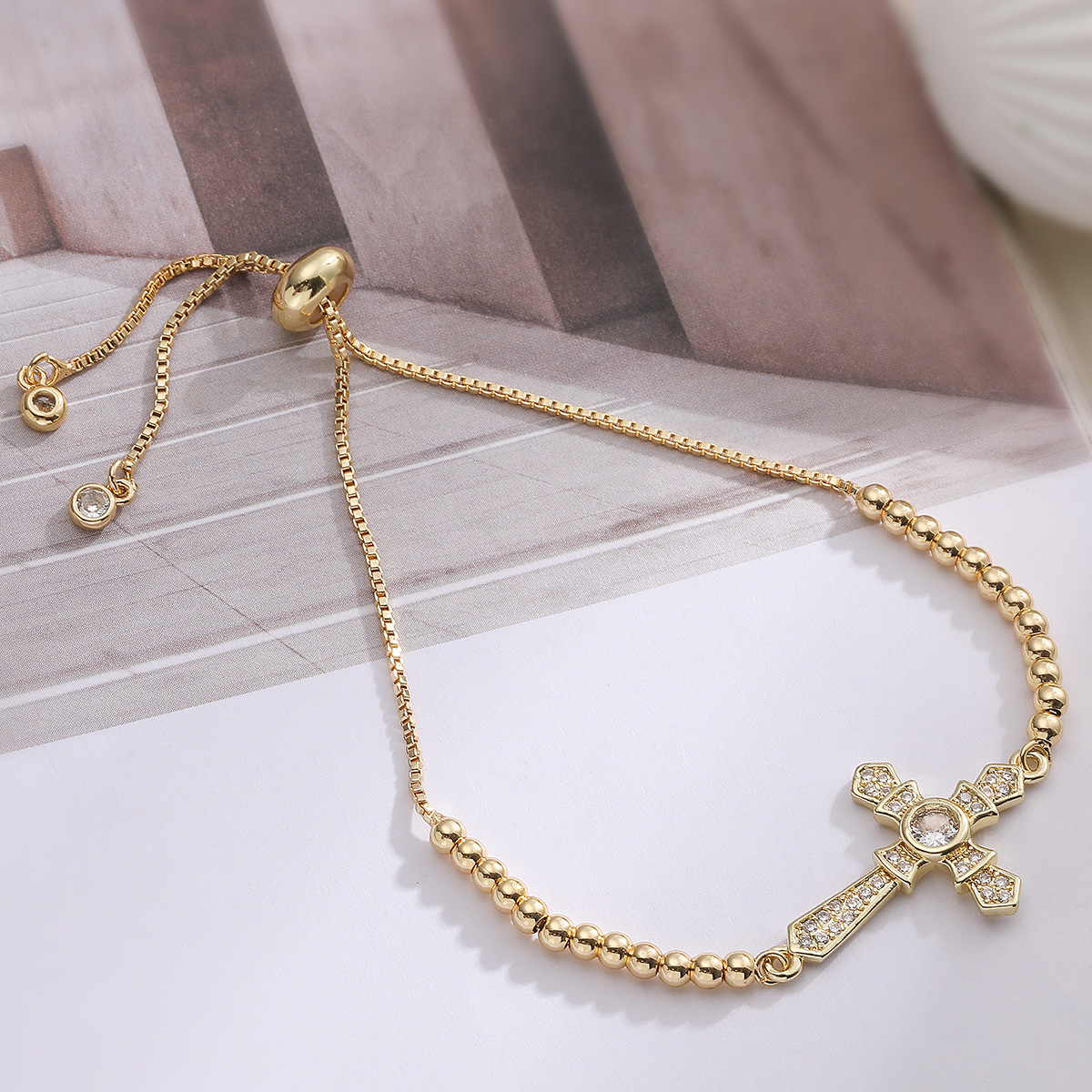 - Bracelet cubique en laiton zircon pavent, Placage de couleur d'or, pavé de micro zircon & pour femme