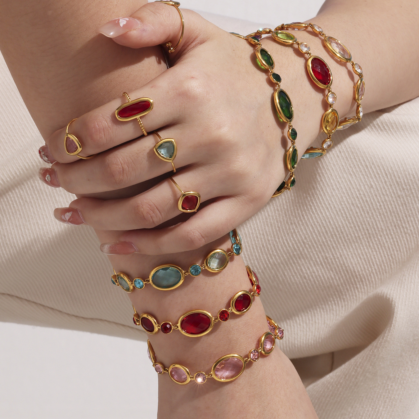 gold white glass stone braceletgold green glass stone braceletgold red glass stone braceletgold blue glass stone braceletgold pink glass stone braceletgold mixed glass stone bracelet