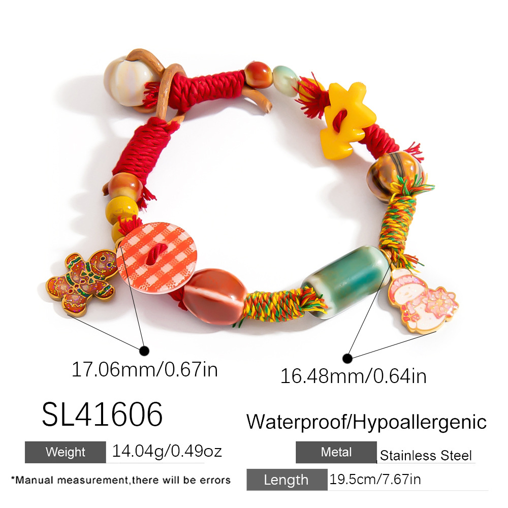 Bracelet en porcelaine, Acier inoxydable 304, avec porcelaine & corde de cire, Placage de couleur d'or, Conception de Noël & émail, plus de couleurs à choisir, Vendu par PC
