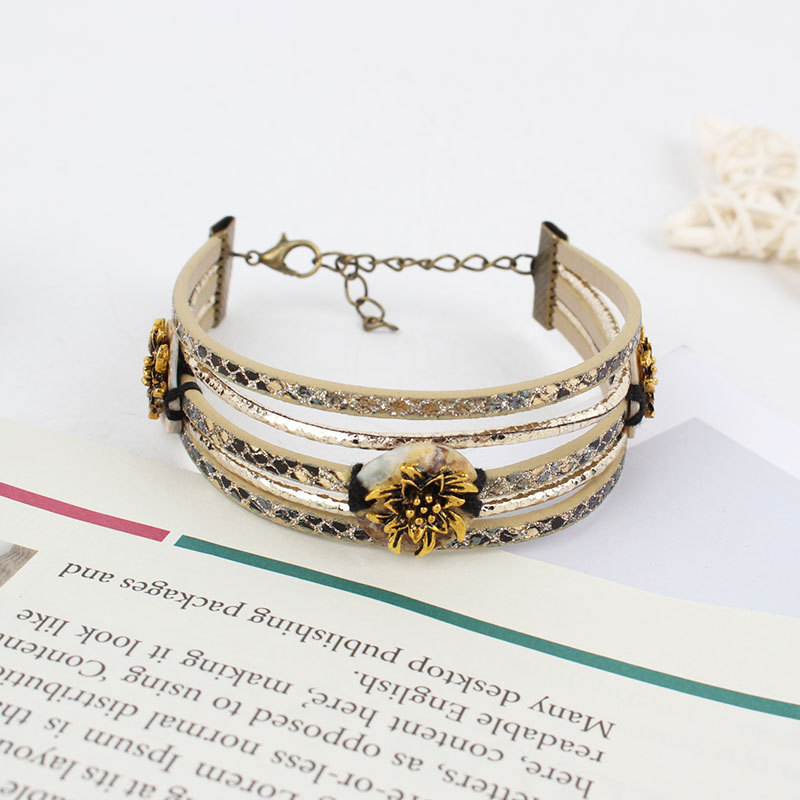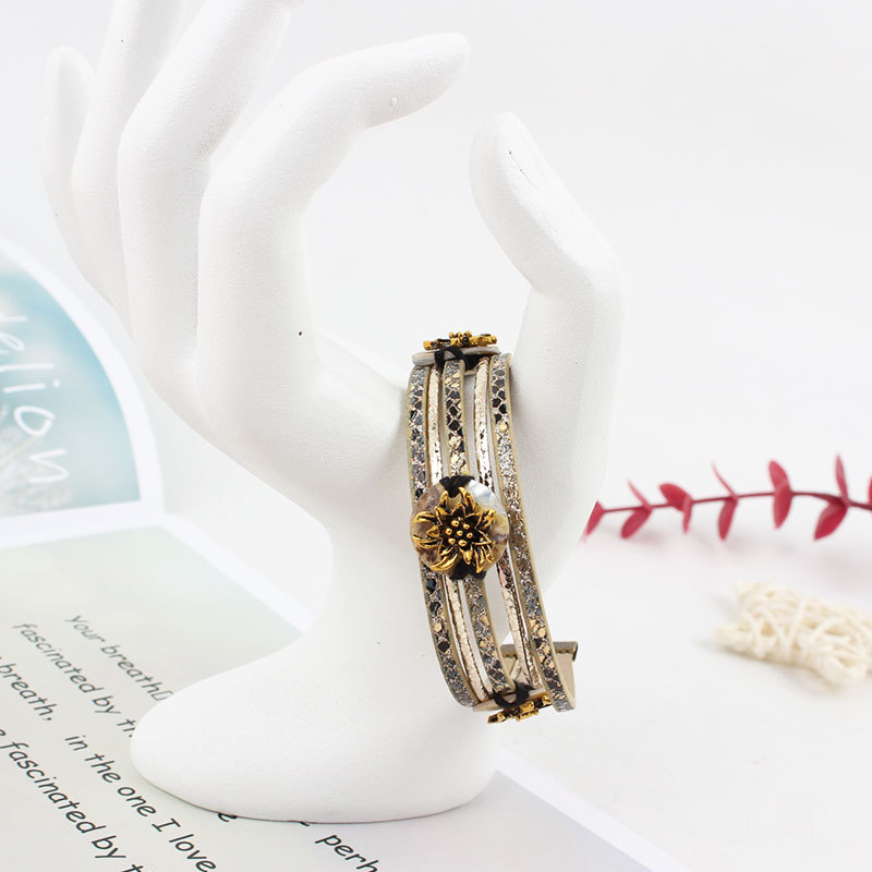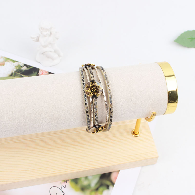 Bracelets cordon PU, alliage de zinc, avec cuir PU & coquille, Placage, bijoux de mode, couleurs mélangées, 14mm, Longueur:23.5 cm, Vendu par PC
