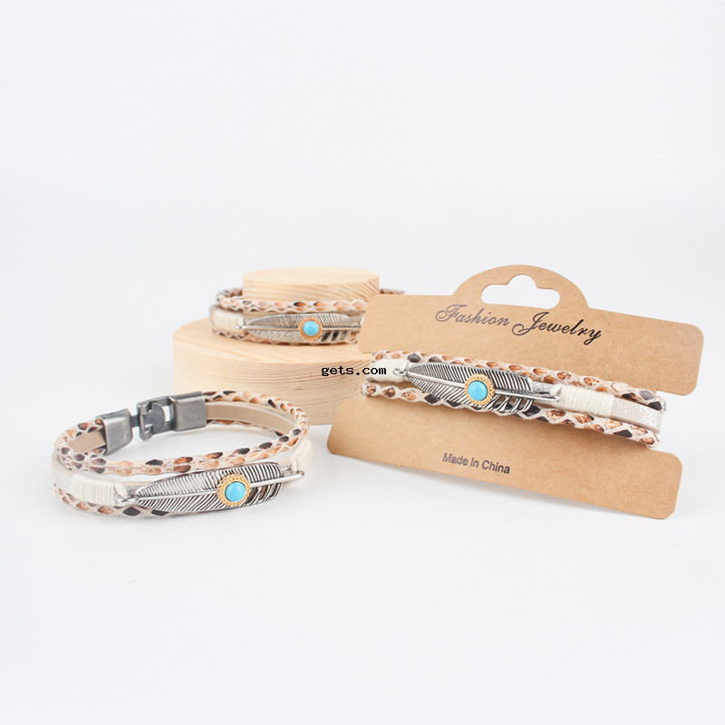 Bracelets cordon PU, alliage de zinc, avec cuir PU, Placage de couleur d'or, bijoux de mode, plus de couleurs à choisir, Vendu par PC